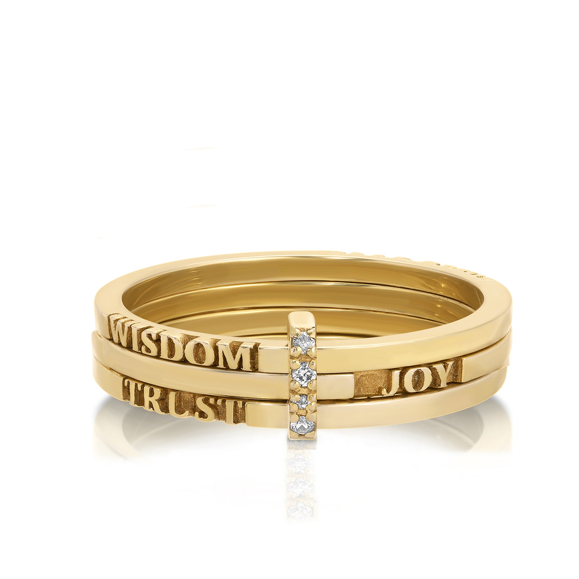Introducing our Customizable 3-Stack gold Rings – a sophisticated and versatile jewelry piece designed to reflect your unique style. Choose from our manifesting words or custom order your own with a name or word. Perfect for creating a unique and meaningful accessory tailored to your style