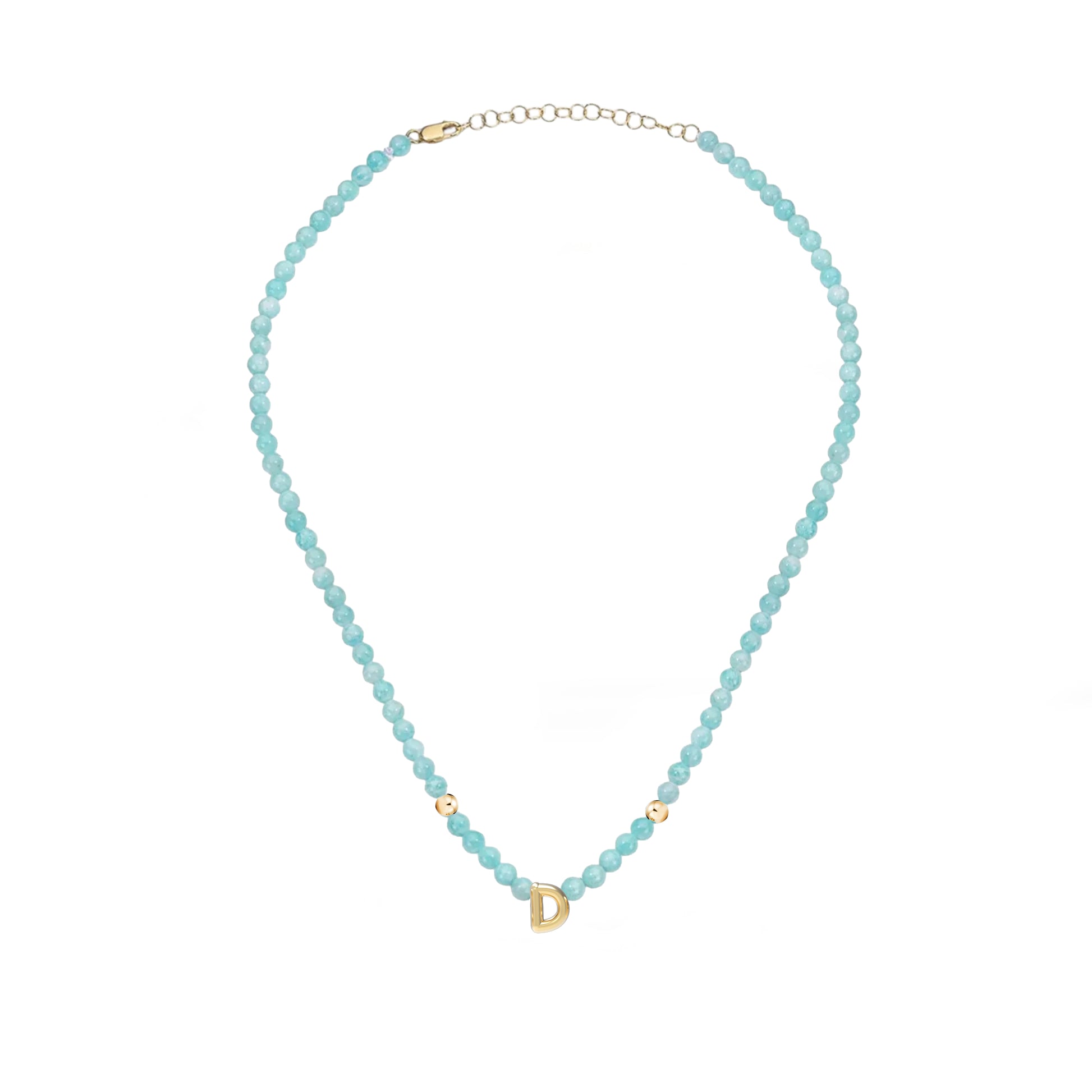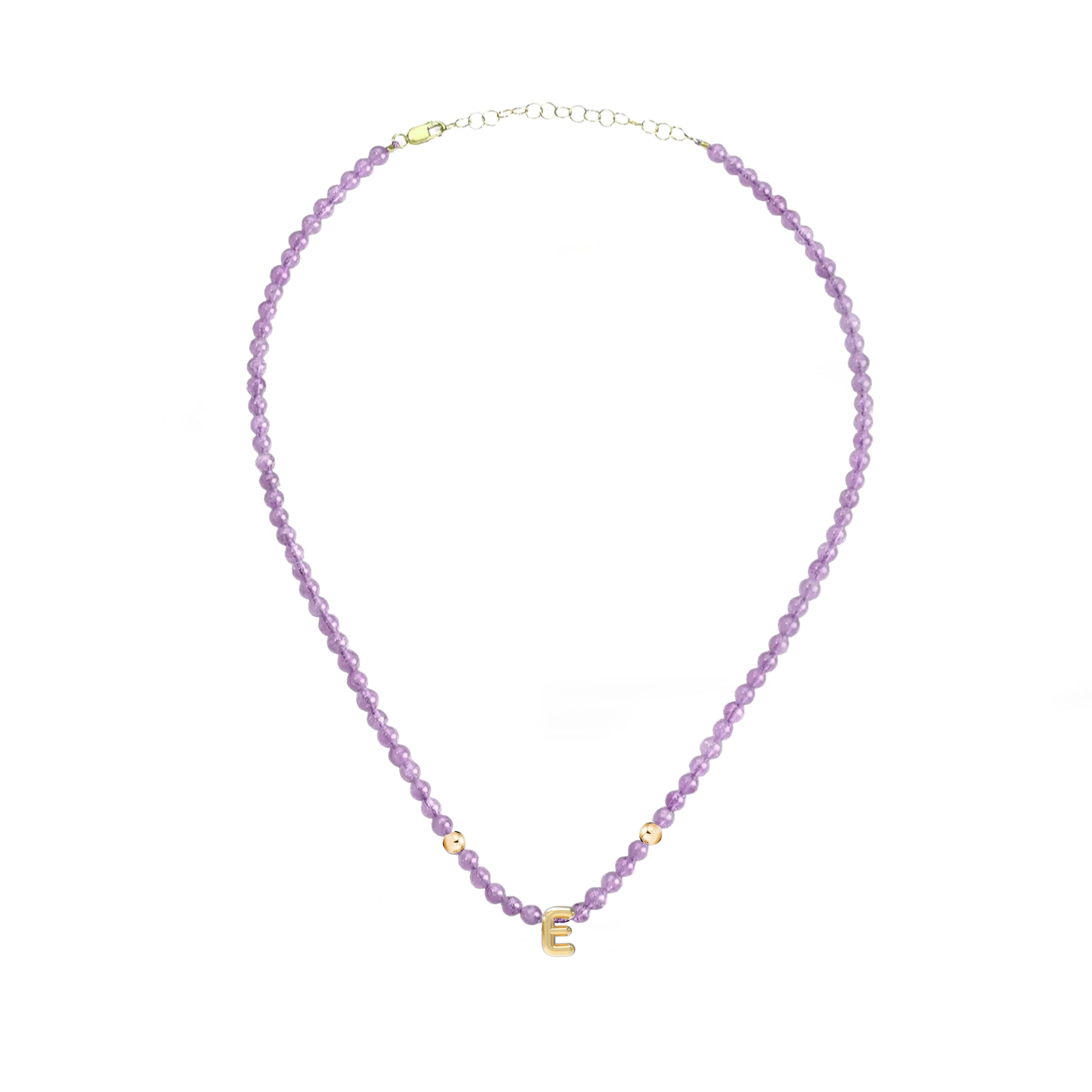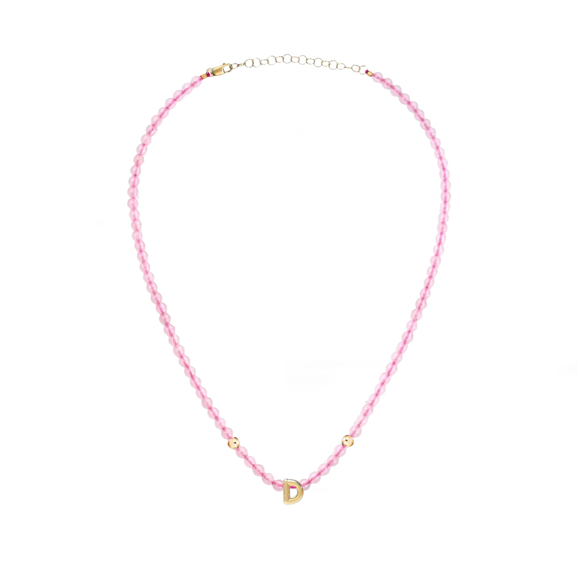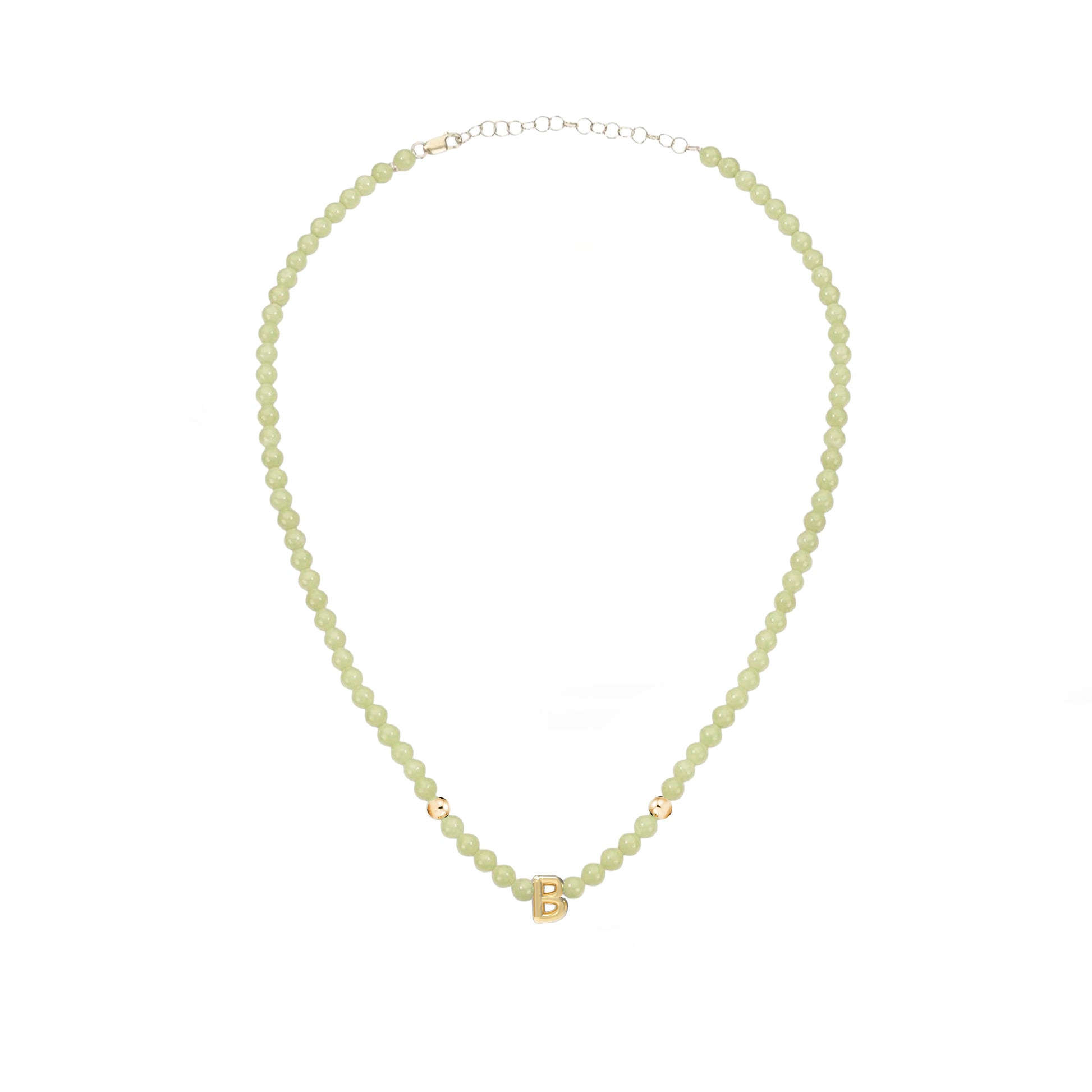 Solid Gold Bubble Letter Gemstone Beaded Necklace