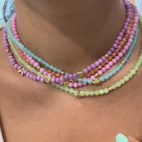 Personalized luxury meets vibrant color in this 14k solid gold bubble letter necklace. Hand-strung with genuine gemstone beads — onyx, turquoise, opal, and amethyst — and finished with a solid gold clasp and rings for lasting quality. Adjustable from 14" to 16" with shortening rings, it’s perfect for layering or wearing solo. A bold, custom piece that’s made to shine.
