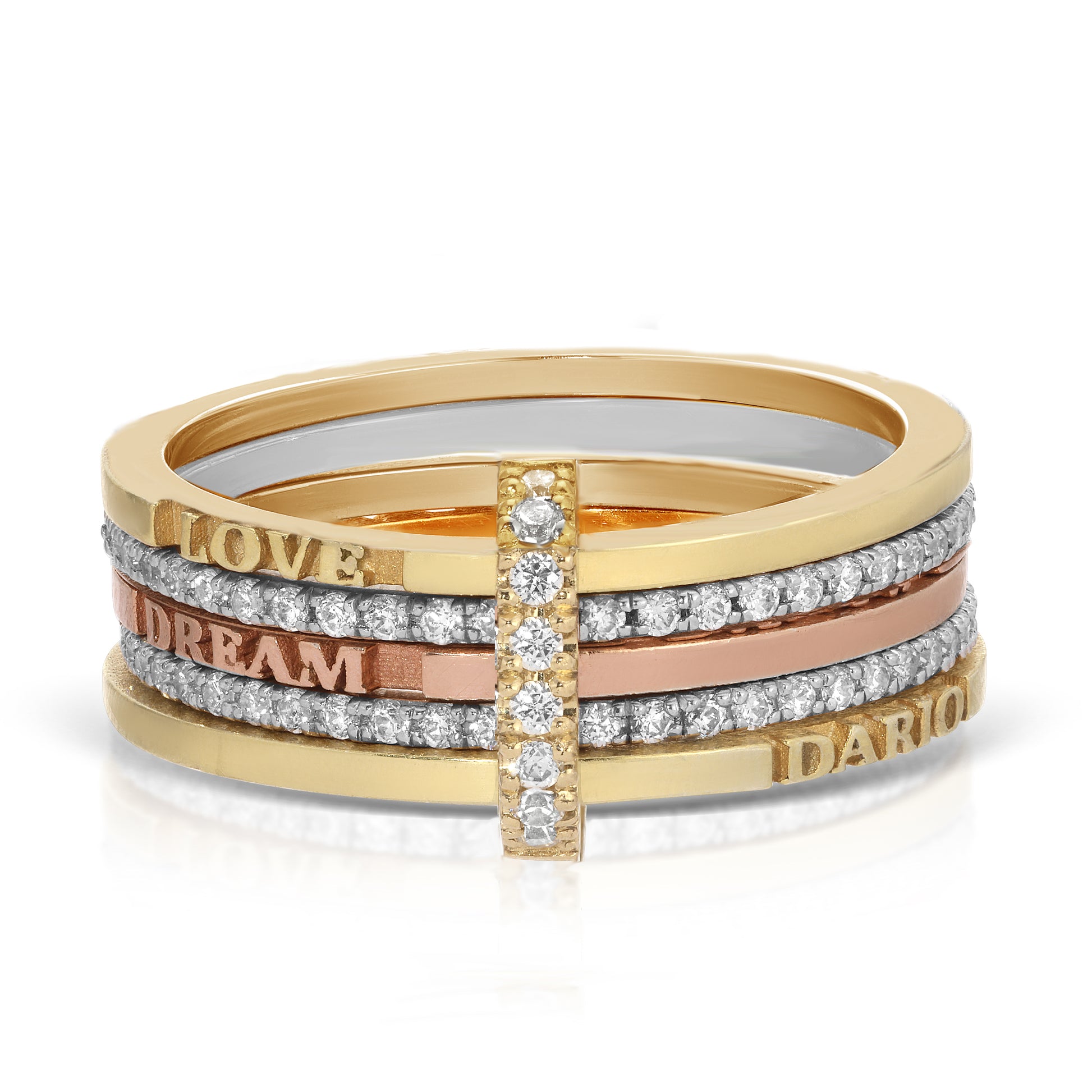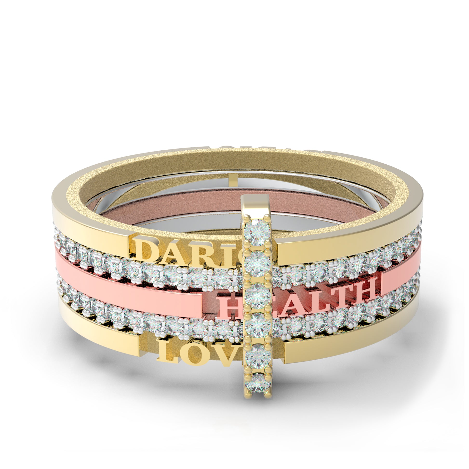 - Removable diamond bar with diamonds to allows you to change the stack or wear rings individually