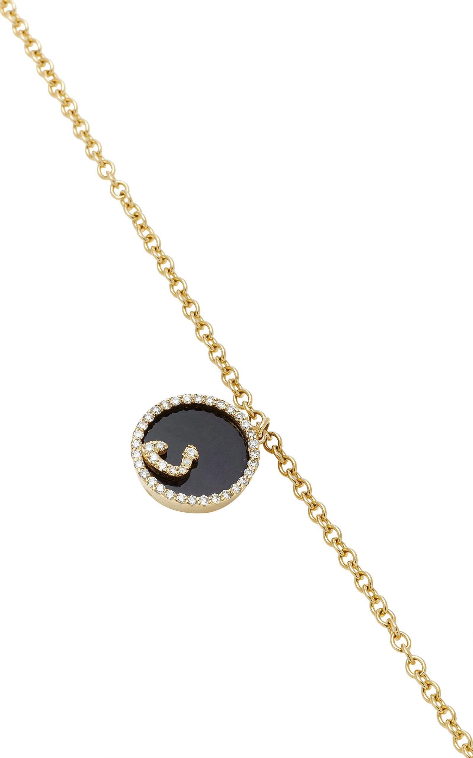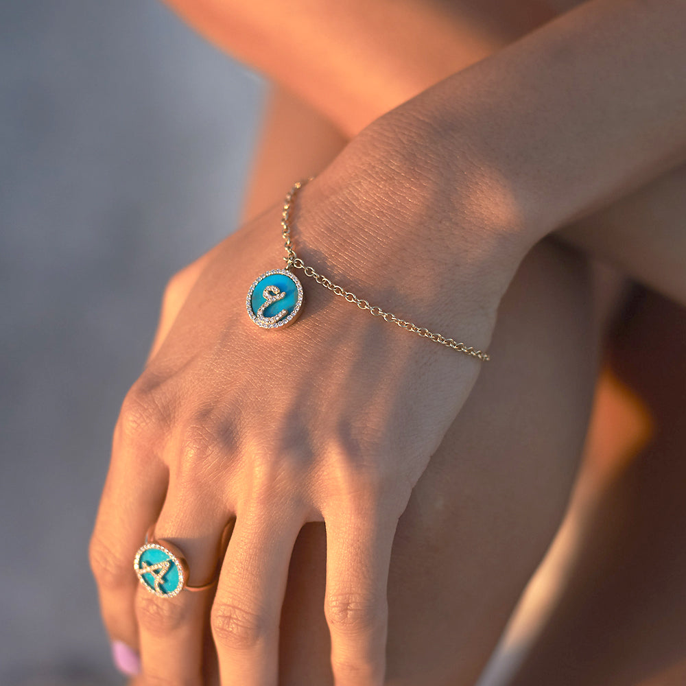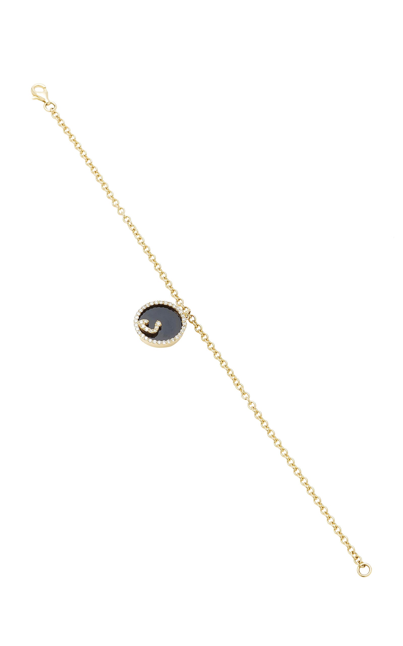 - This beautiful bracelet features a gemstone charm with a diamond Persian or Arabic initial at the center