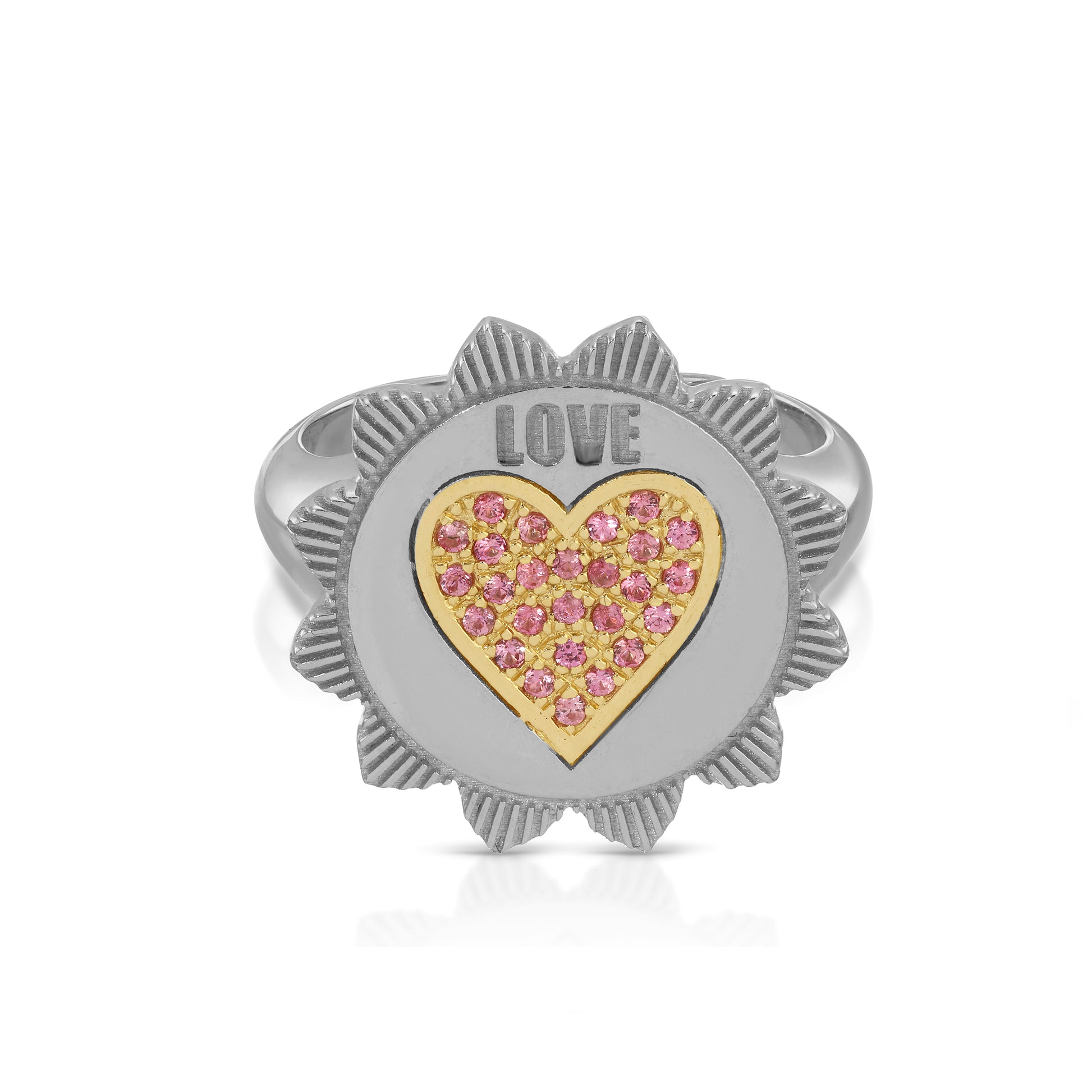 My Heart Signet Ring with Pink Sapphire is a modern heirloom designed for both elegance and meaning. Handcrafted in your choice of 14k or 18k solid gold, this timeless heart-shaped ring is set with a brilliant pink sapphire, a gemstone known for its soft feminine energy and connection to the heart chakra.