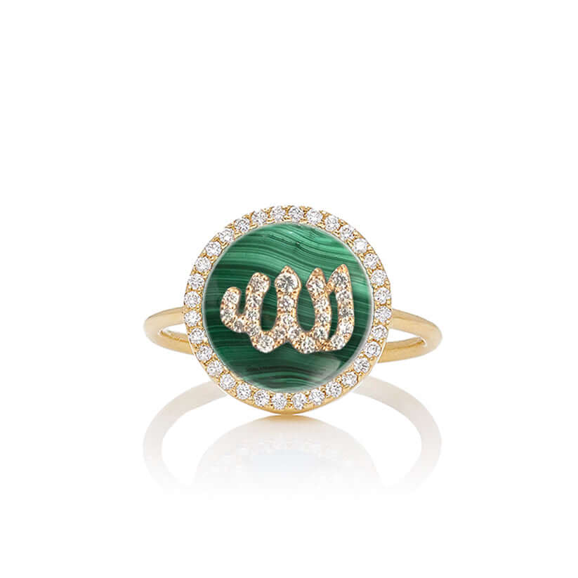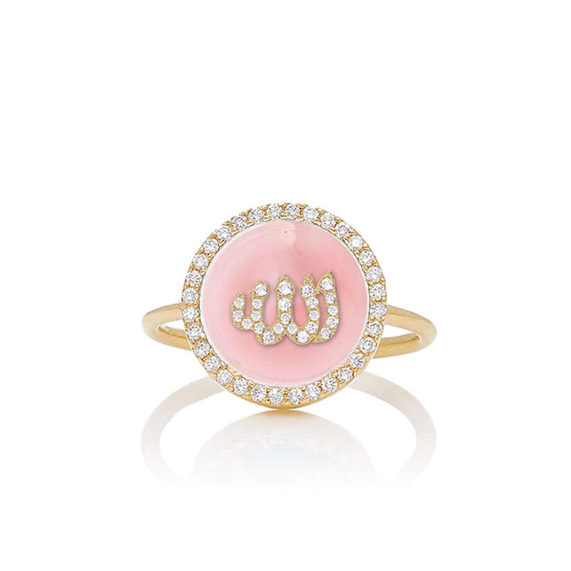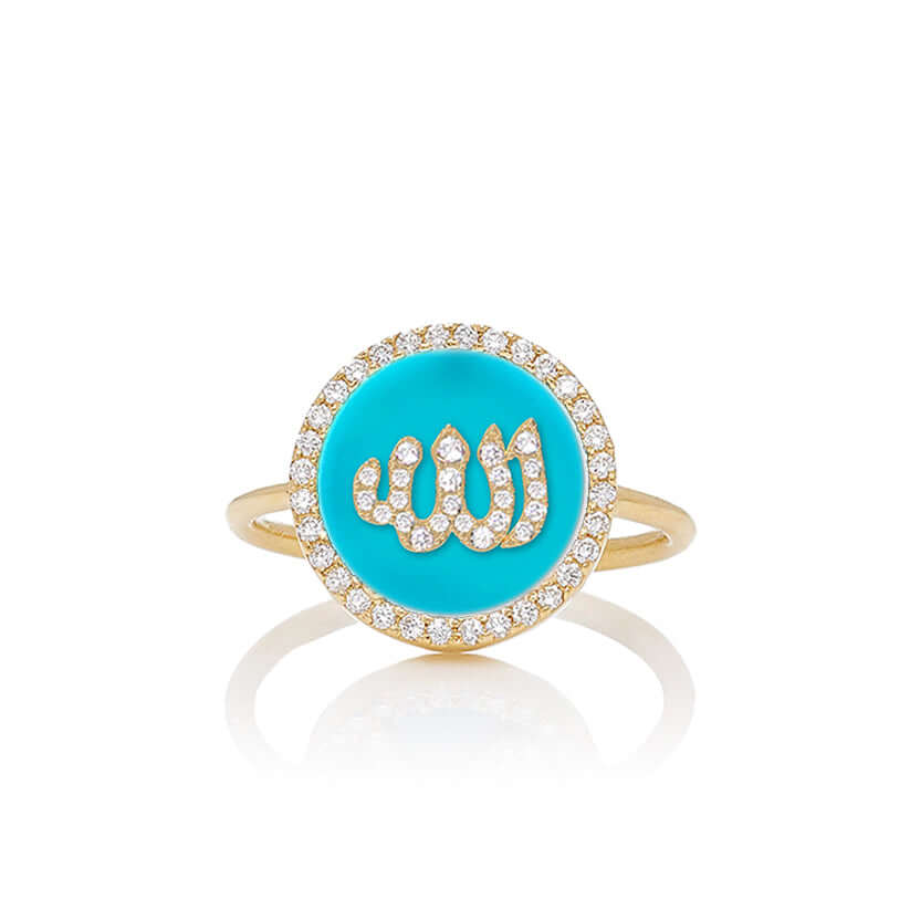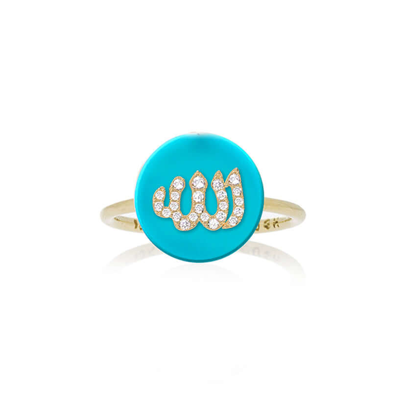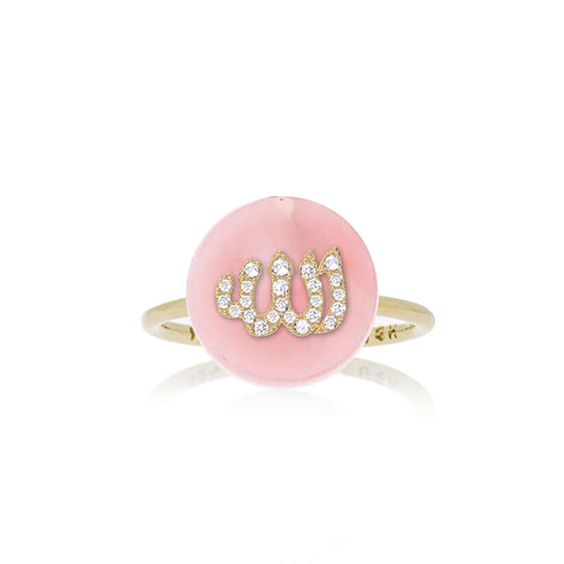 - This beautiful ring features a Turquoise, Onyx, Mother of Pearl, Pink Opal, Labradorite, malachite or Lapis pendant with a diamond Allah symbol in the center