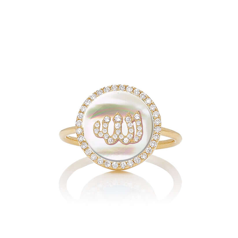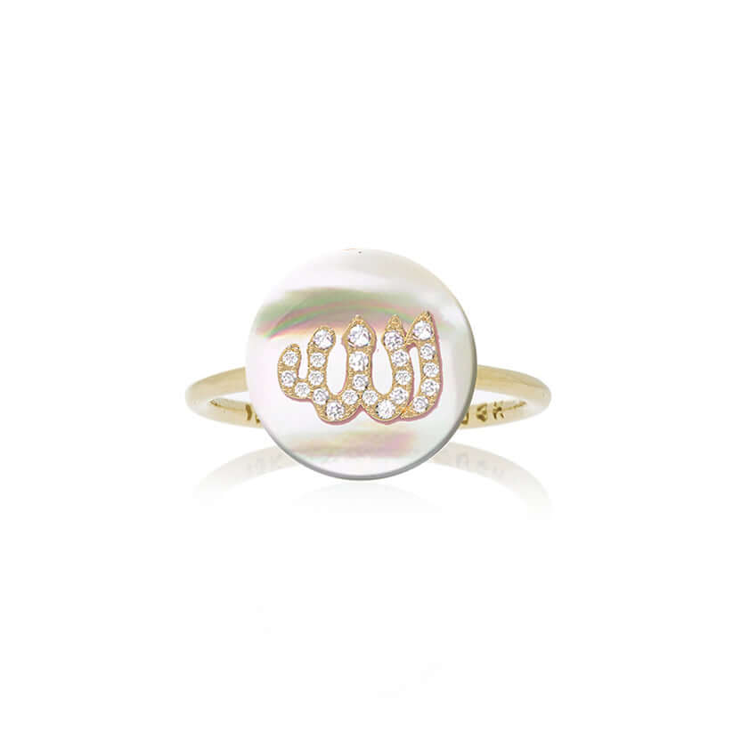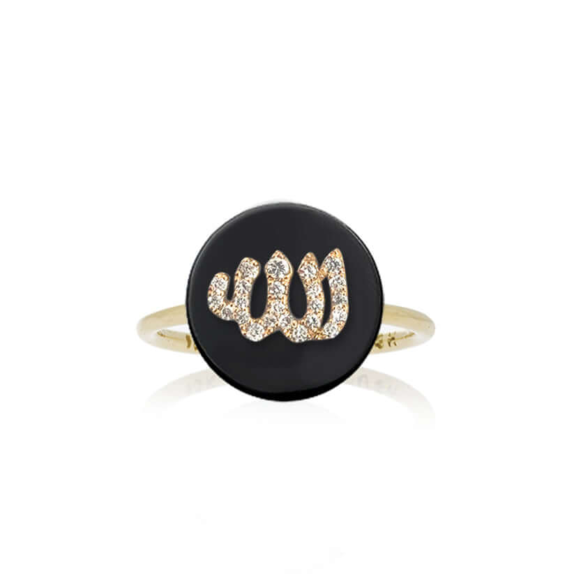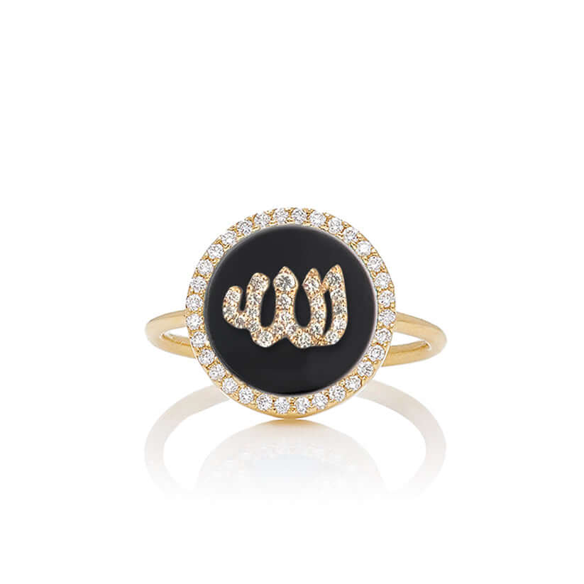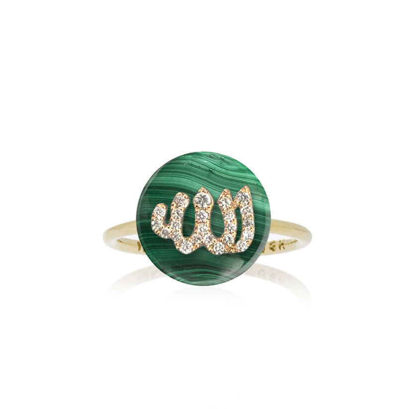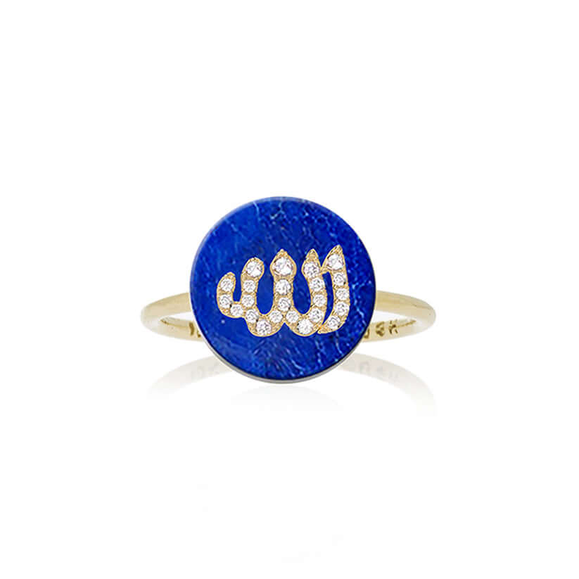 - This beautiful ring features a Turquoise, Onyx, Mother of Pearl, Pink Opal, Labradorite, malachite or Lapis pendant with a diamond Allah symbol in the center