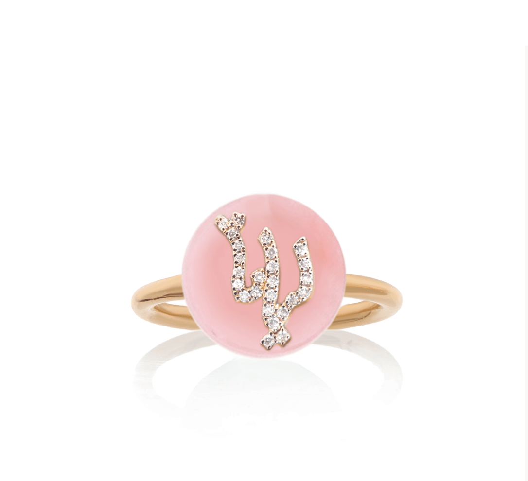 This Beautiful Persian or Arabic name ring writes your name beautifully in special calligraphy with a line of Gold and diamonds on top of a semi-precious natural gemstone. Once we receive your order, we will send you options for your name to choose from. You can write your name in Arabic/Persian or write it for us in English to translate.