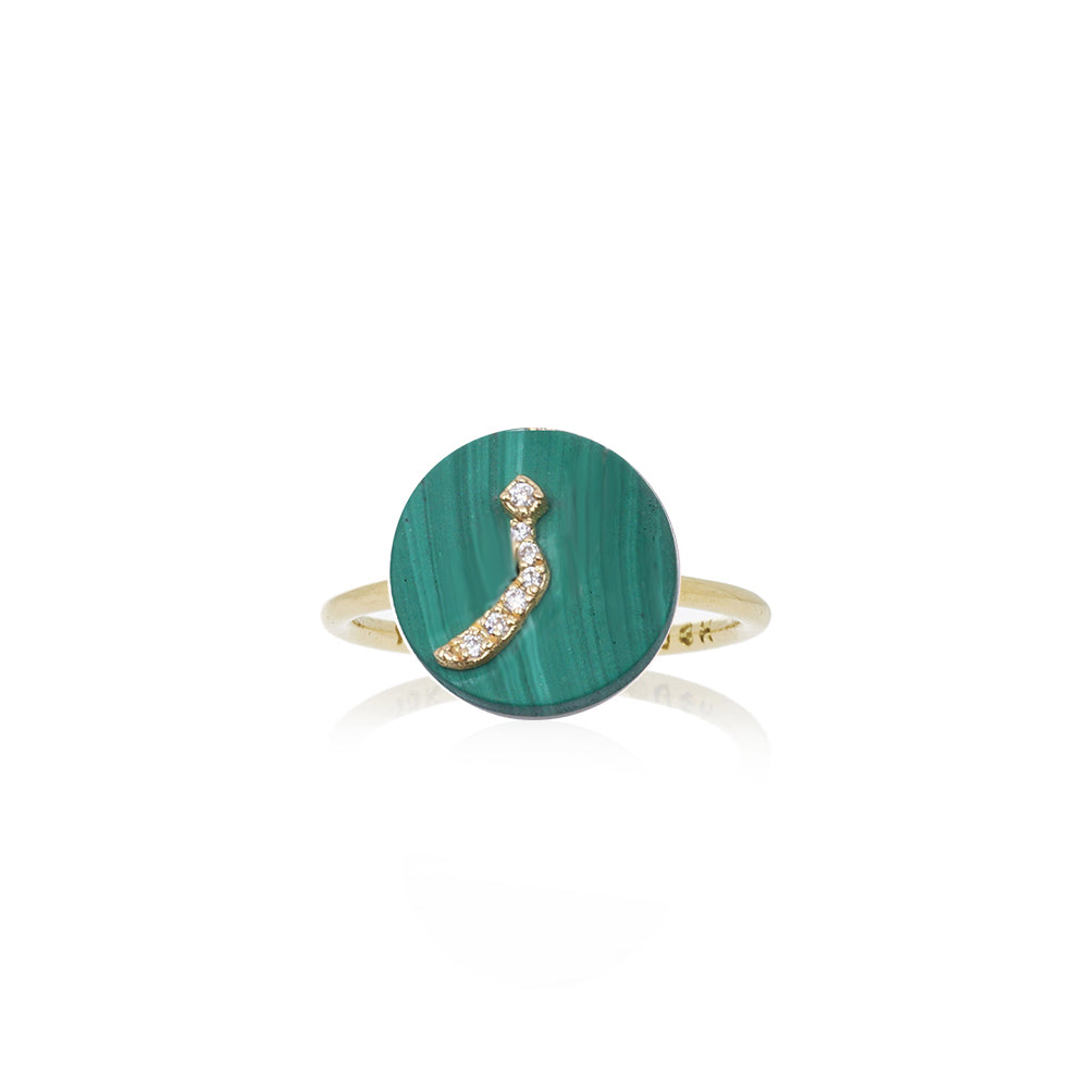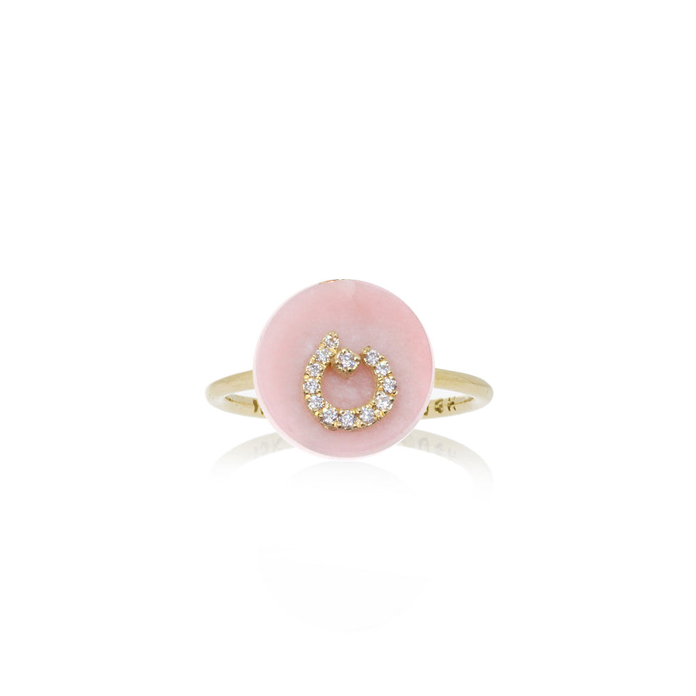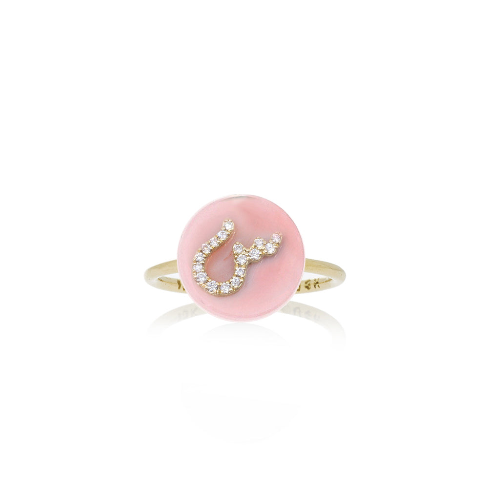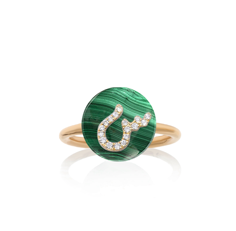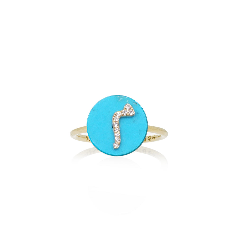 - This beautiful ring features a Turquoise, Onyx, Mother of Pearl, Pink Opal, Labradorite, malachite or Lapis pendant with a diamond Arabic initial in the center