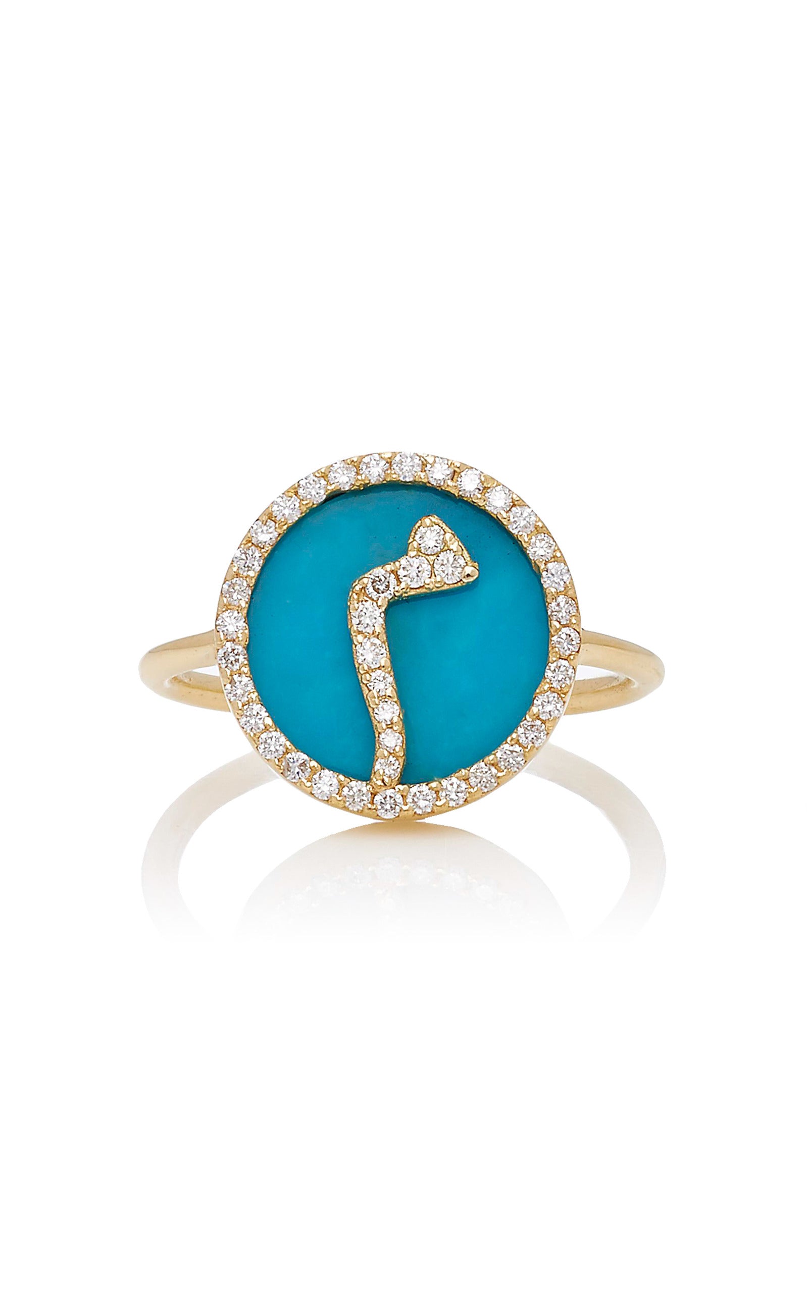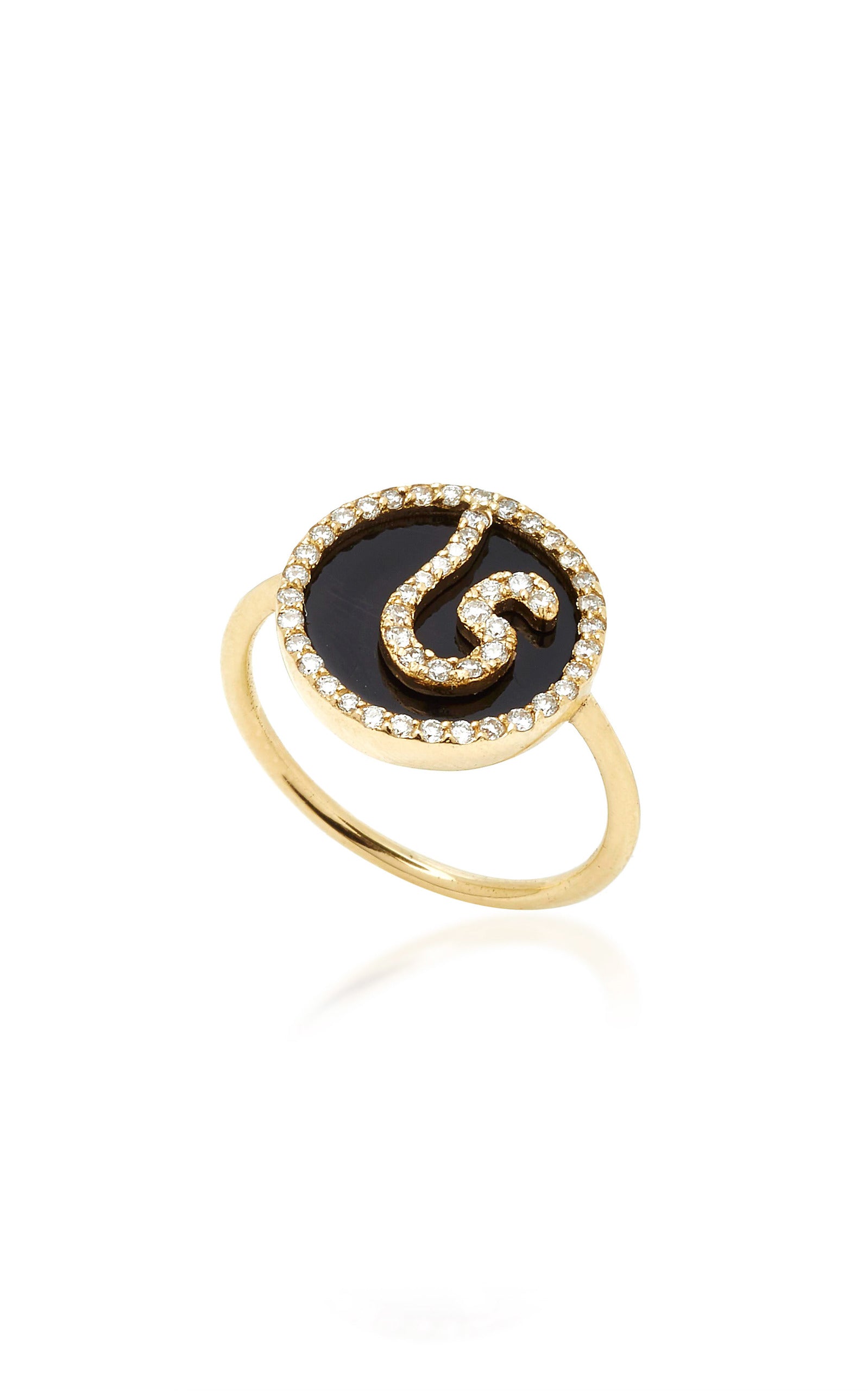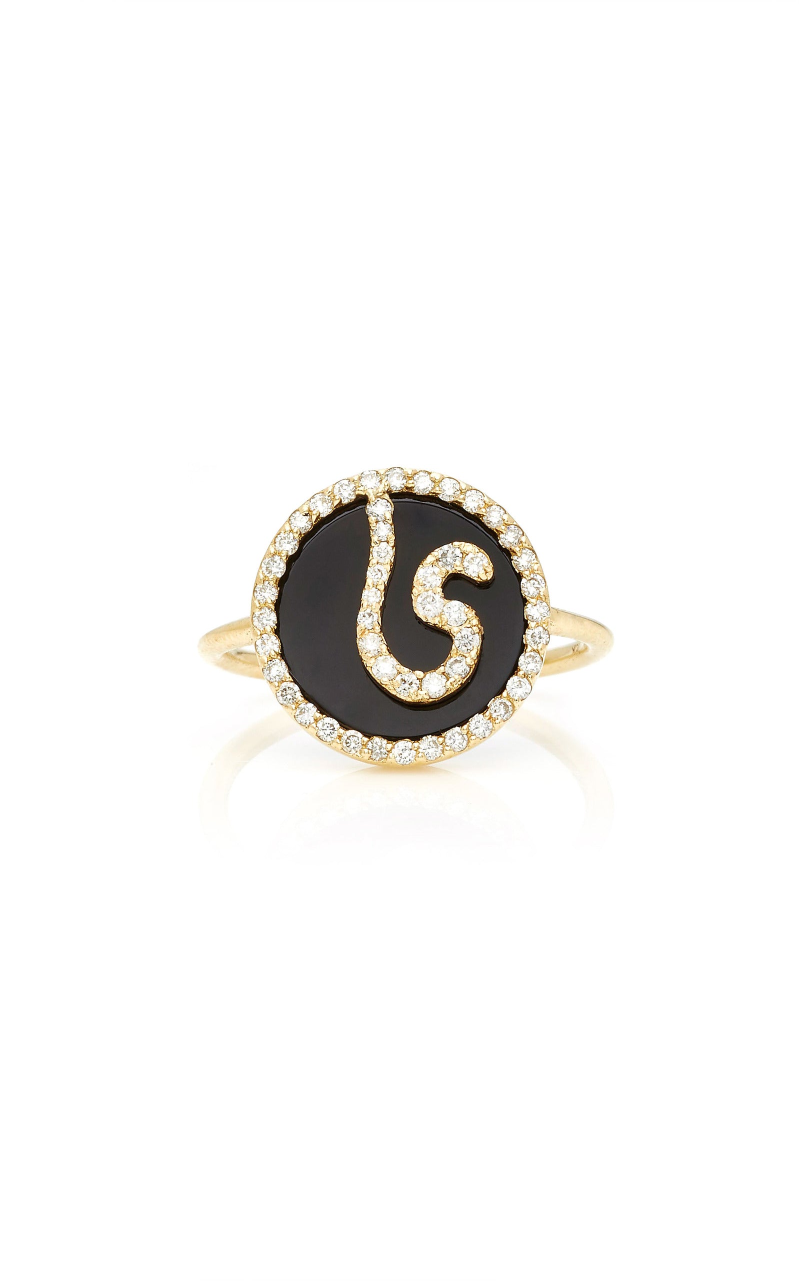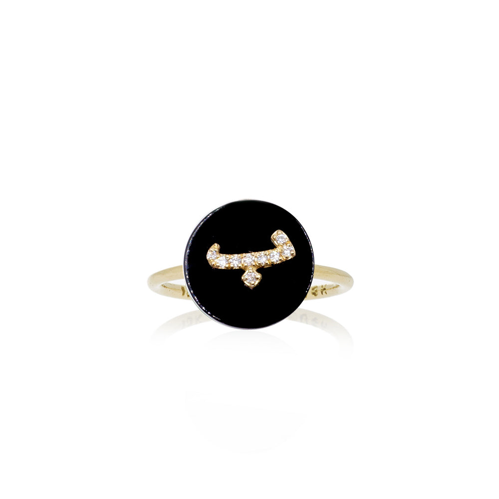 - This beautiful ring features a Turquoise, Onyx, Mother of Pearl, Pink Opal, Labradorite, malachite or Lapis pendant with a diamond Arabic initial in the center