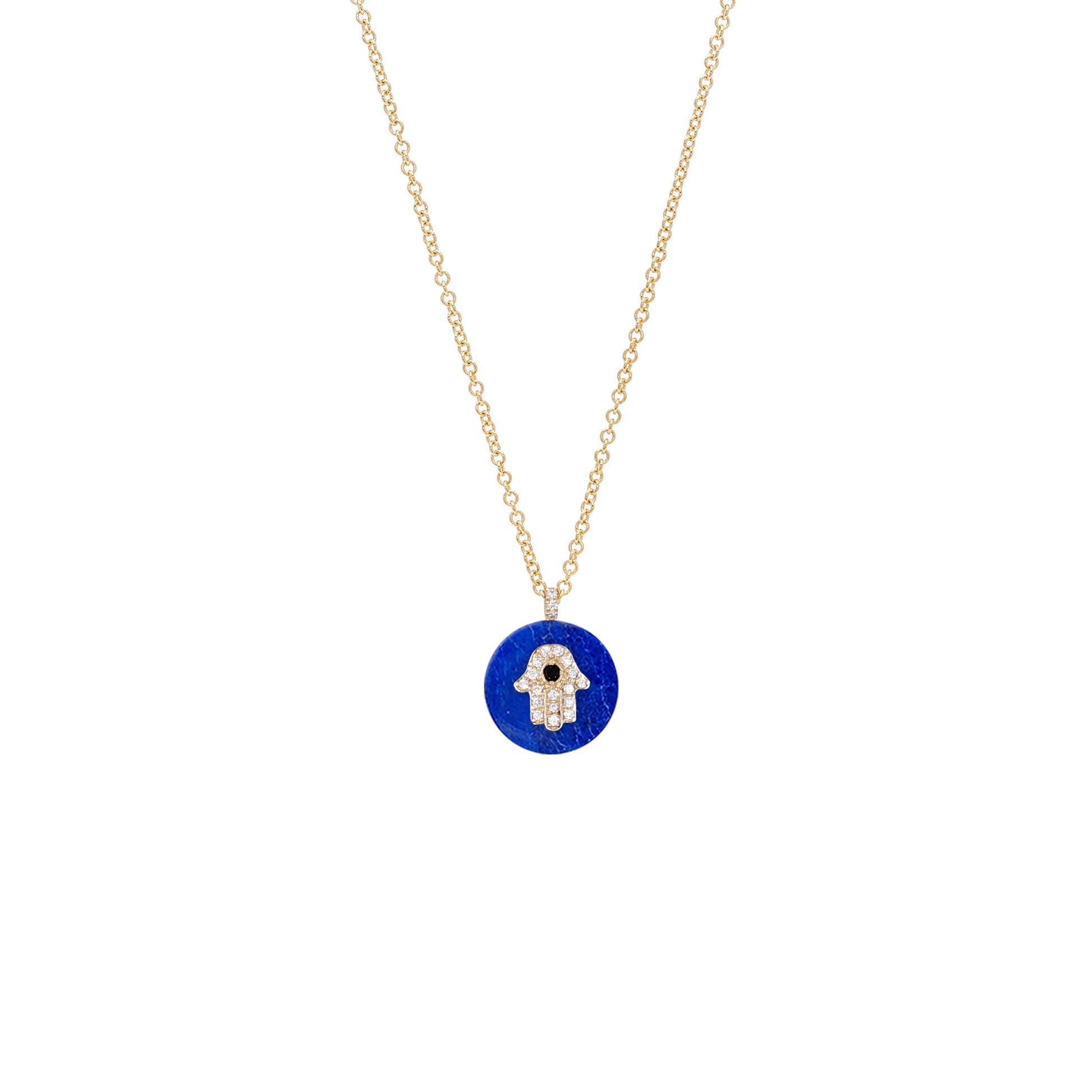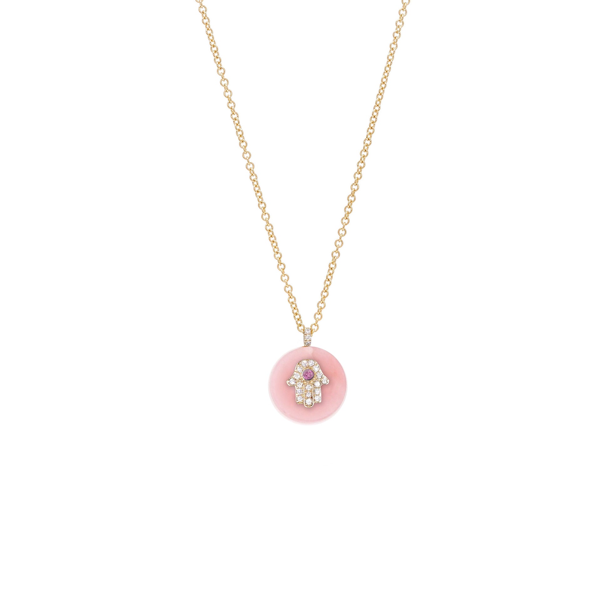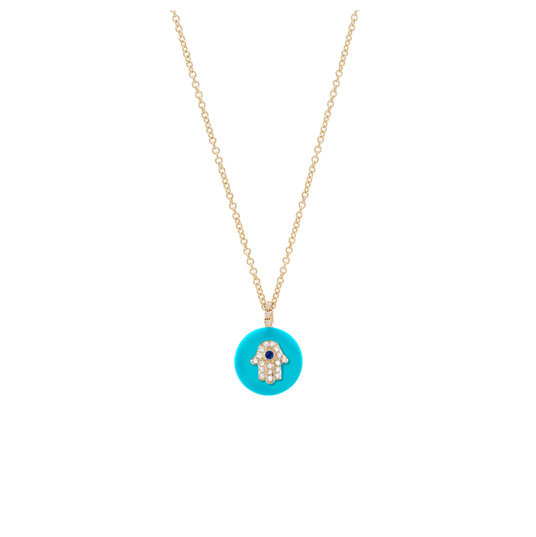 - This beautiful necklace features a Turquoise, Onyx, Mother of Pearl, Pink Opal, Labradorite, malachite or Lapis pendant with a diamond symbol of Hamsa in center