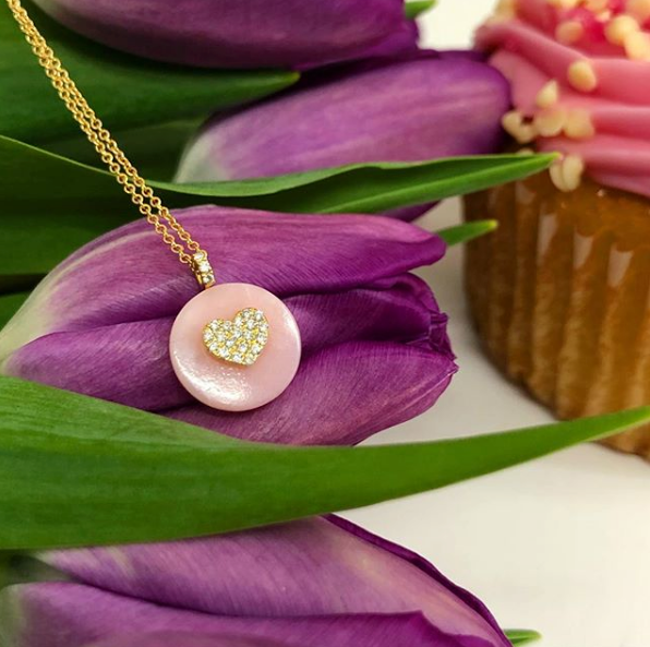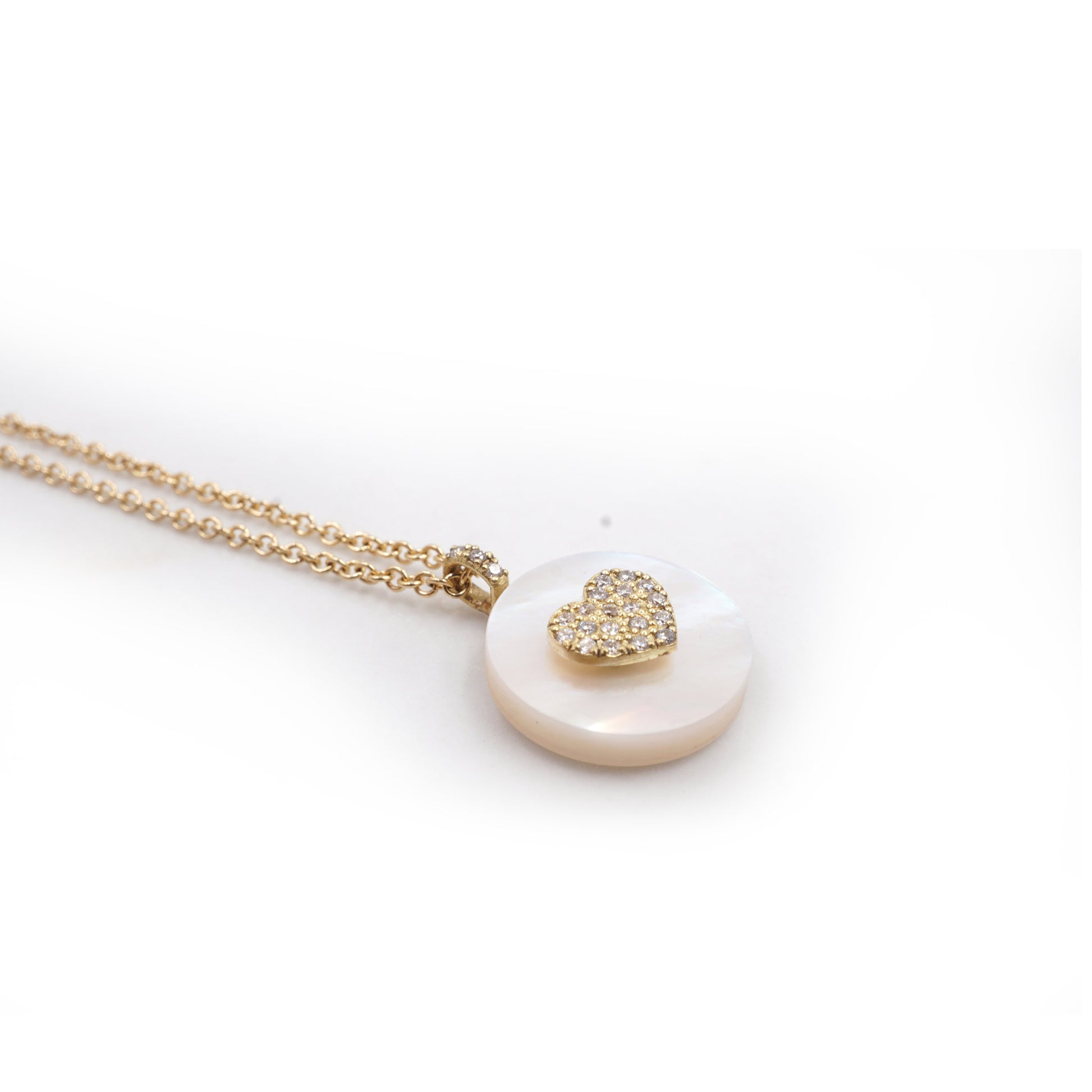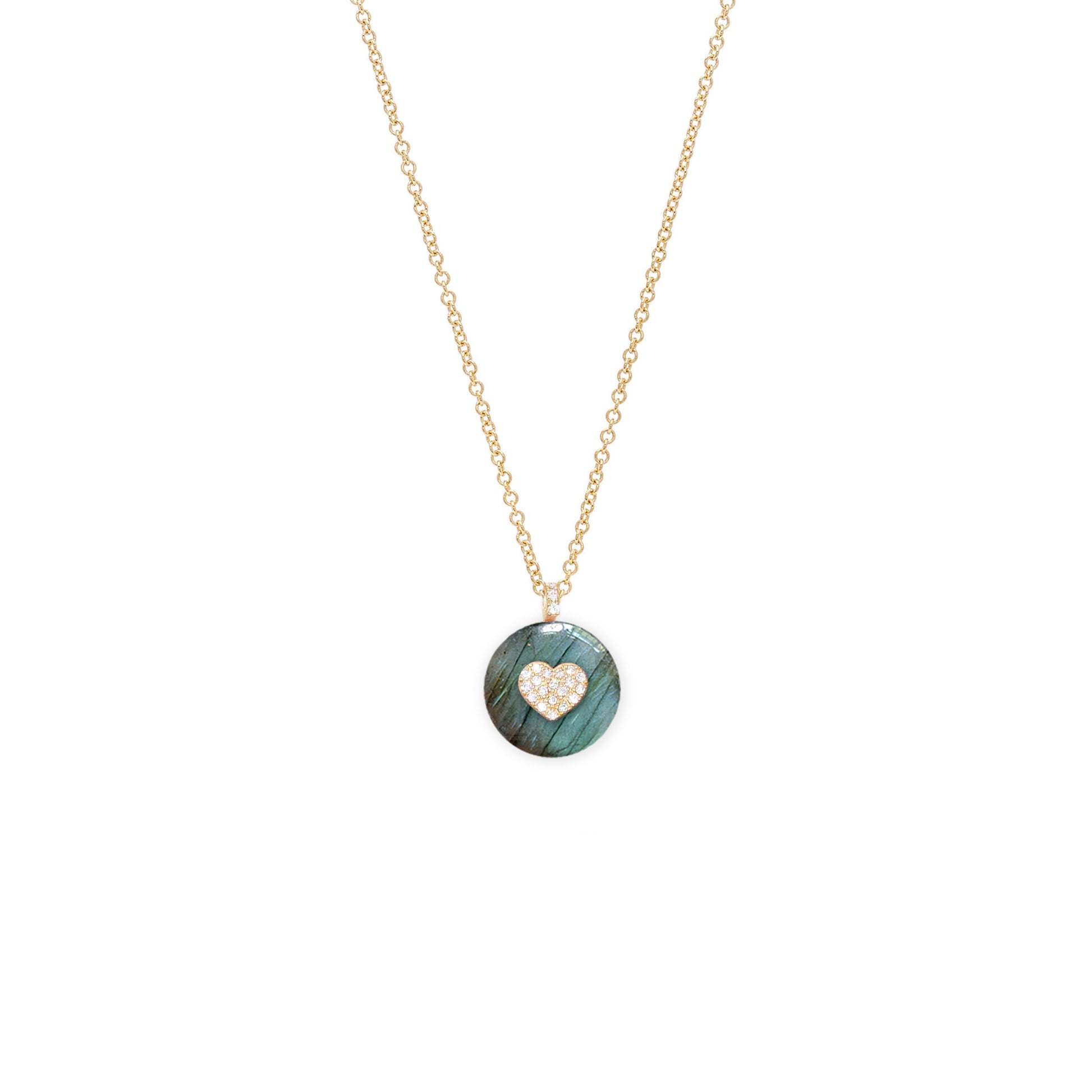 This beautiful heart necklace features a diamond and gold heart on a genuine stone of your choice such as Turquoise, Onyx, Mother of Pearl, Pink Opal, Labradorite, Malachite or Lapis