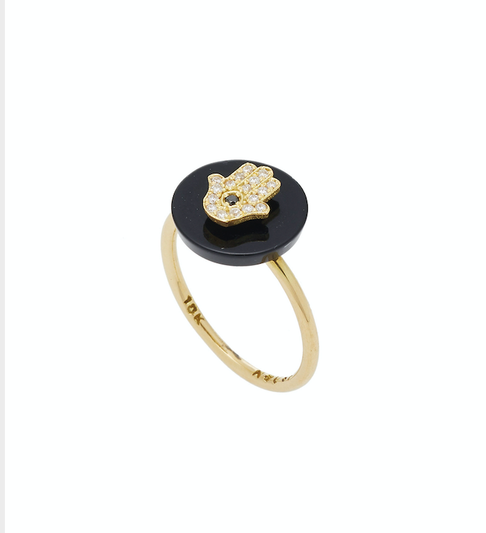 - This beautiful ring features a Turquoise, Onyx, Mother of Pearl, Pink Opal, Labradorite, malachite or Lapis pendant with a diamond Hamsa in the center