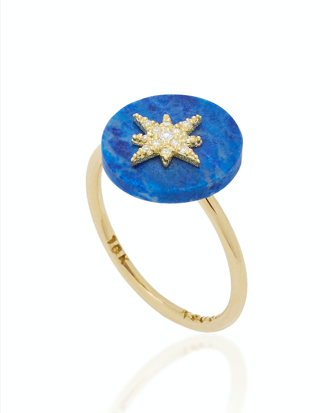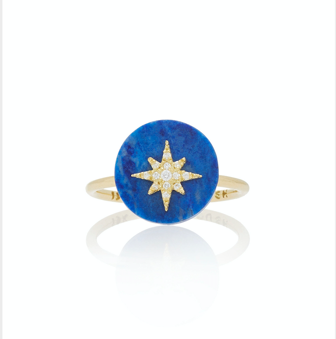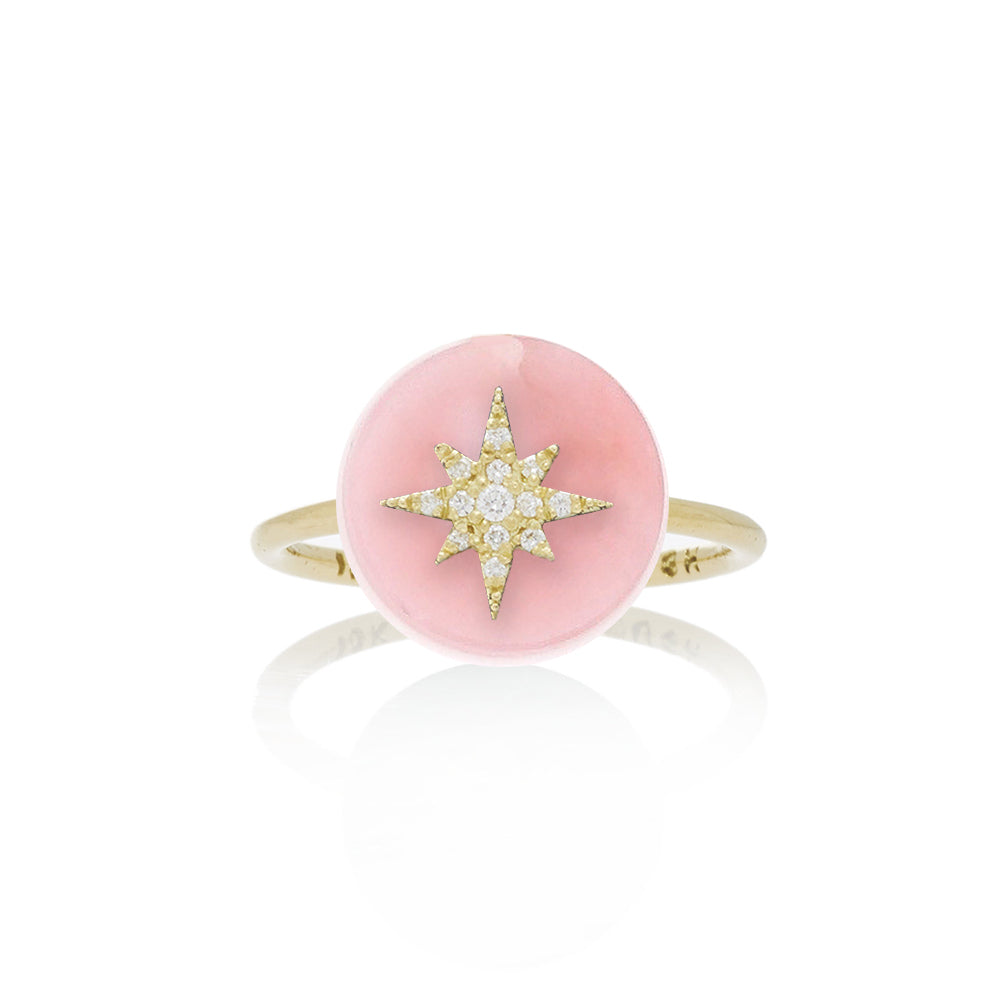 - This beautiful ring features a Turquoise, Onyx, Mother of Pearl, Pink Opal, malachite or Lapis disk with a diamond North star in the center