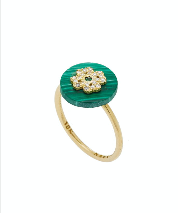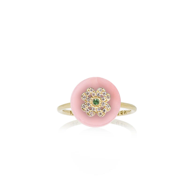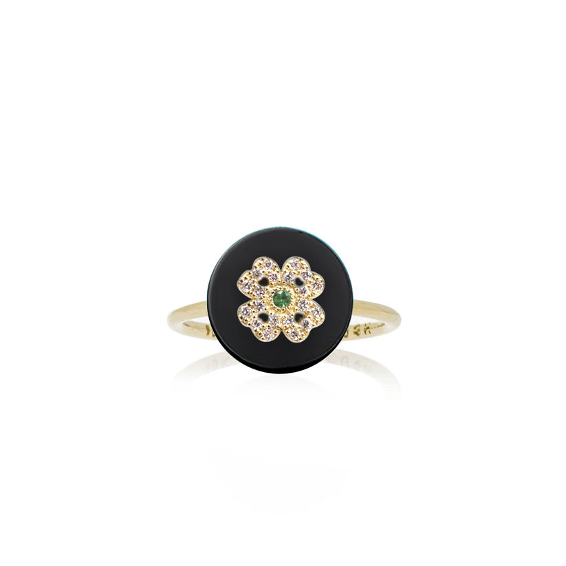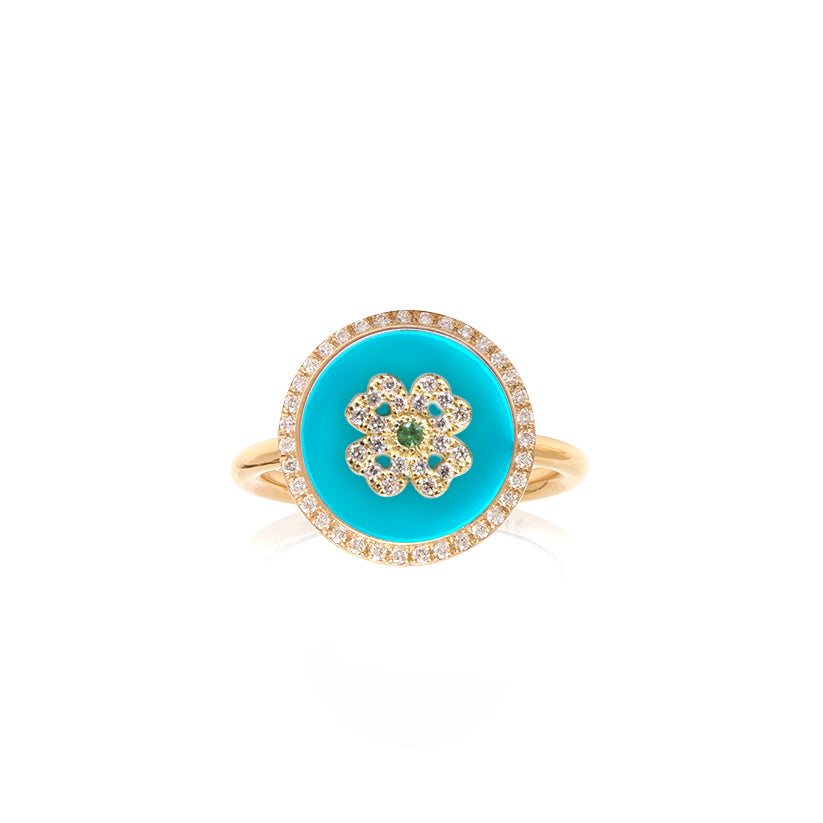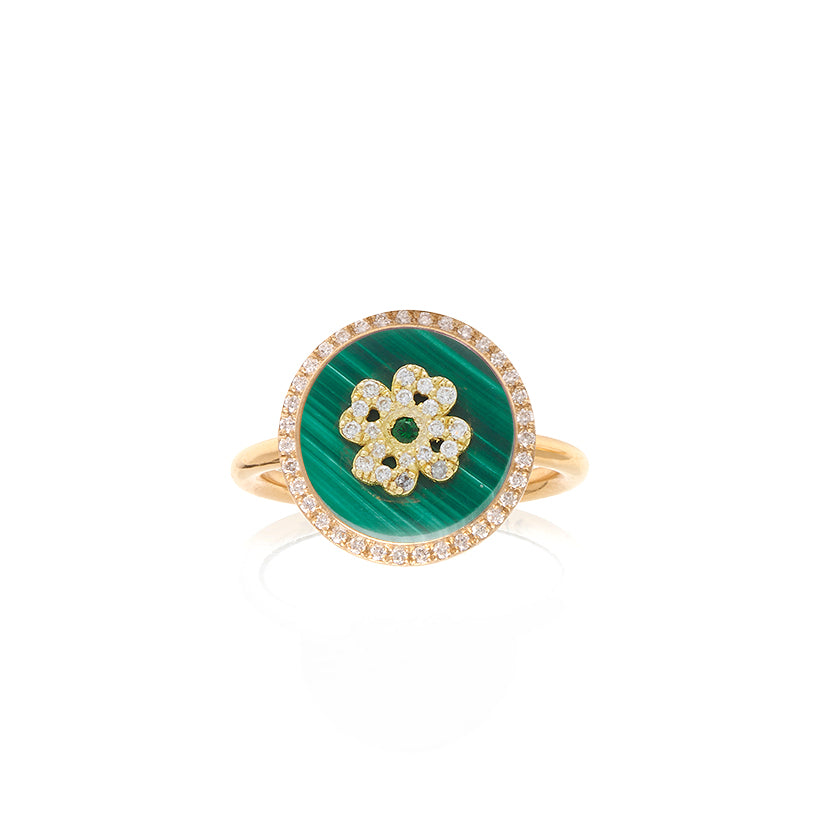- This beautiful ring features a Turquoise, Onyx, Mother of Pearl, Pink Opal, malachite or Lapis pendant with a diamond clover in the center