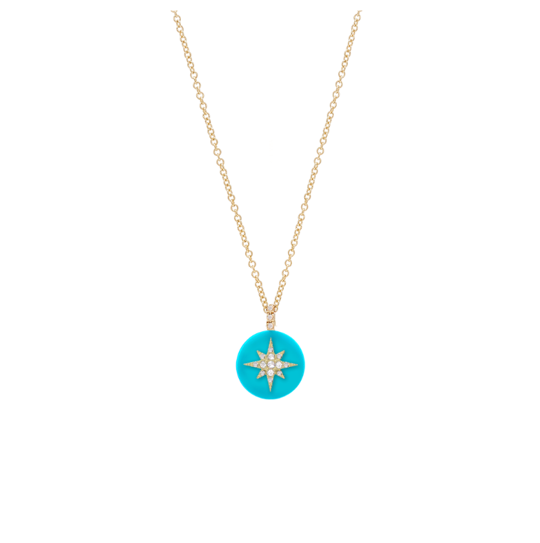 - This beautiful necklace features a Turquoise, Onyx, Mother of Pearl, Pink Opal, Labradorite, malachite or Lapis pendant with a diamond North Star in center