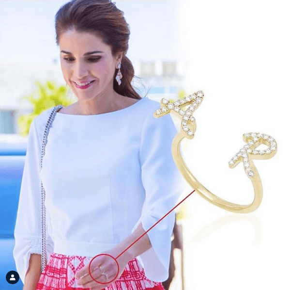 One of our favorite rings of all time (and Her Majesty Queen Rania of Jordan agrees with us as she has been seen wearing this ring with her and her husbands initials). The double initial ring floats above your fingers in a mysterious way and keeps them guessing how. Just like the girl who wears it, this ring is extra special and extra unique. Please refer to the letter chart in the pictures gallery. To order a 3 initial between finger ring, contact our customer service.