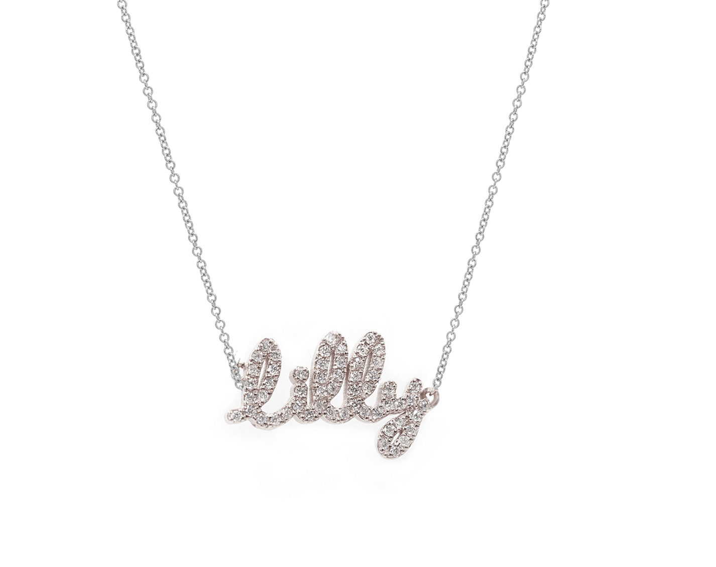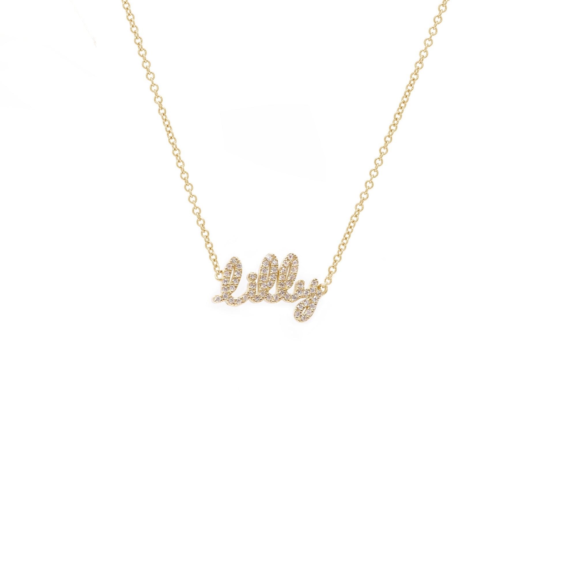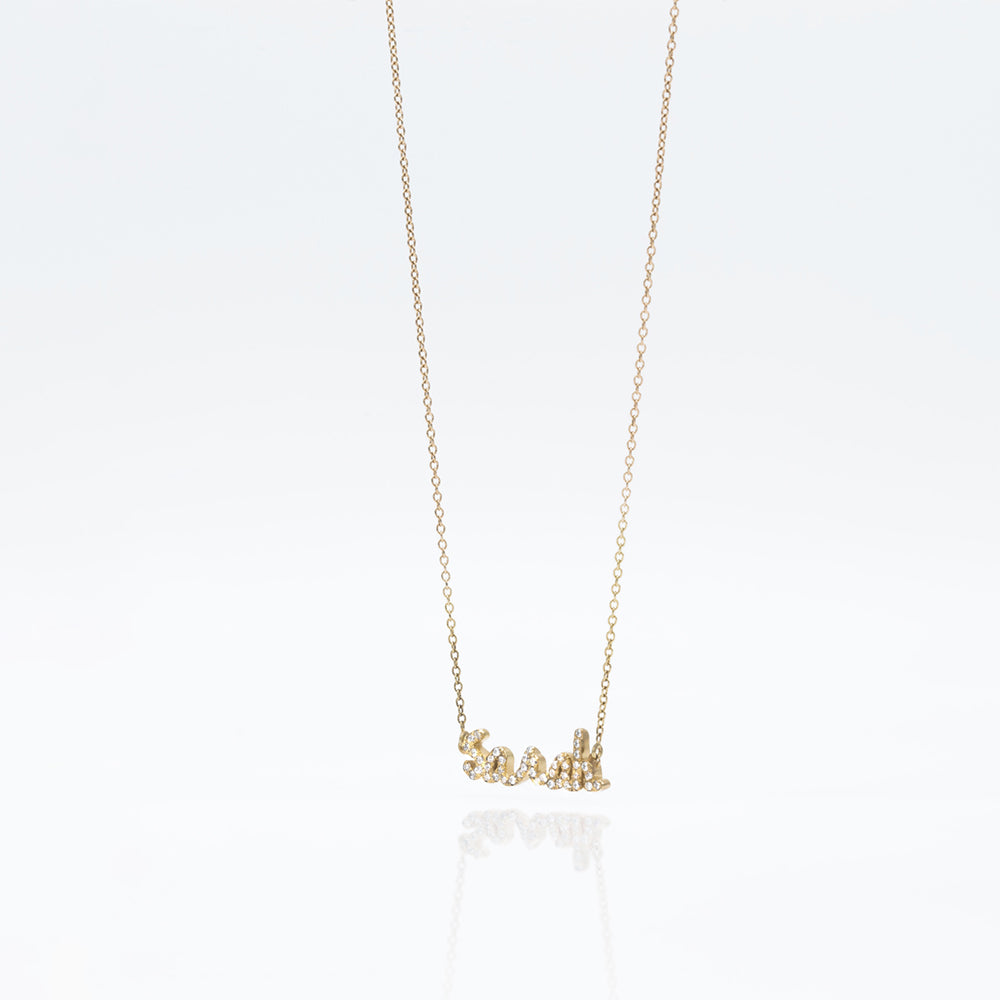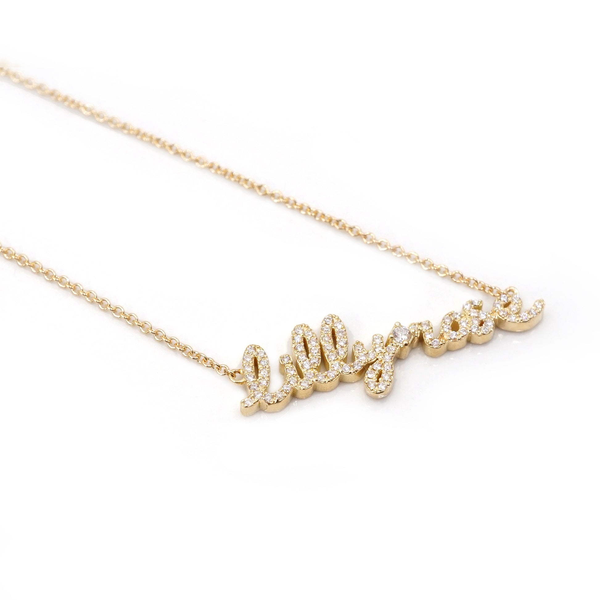 - This stunning necklace features a diamond-encrusted name written in our script special font