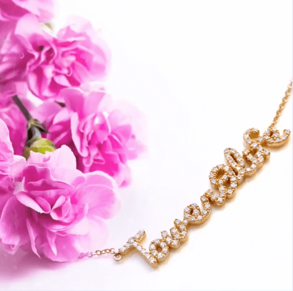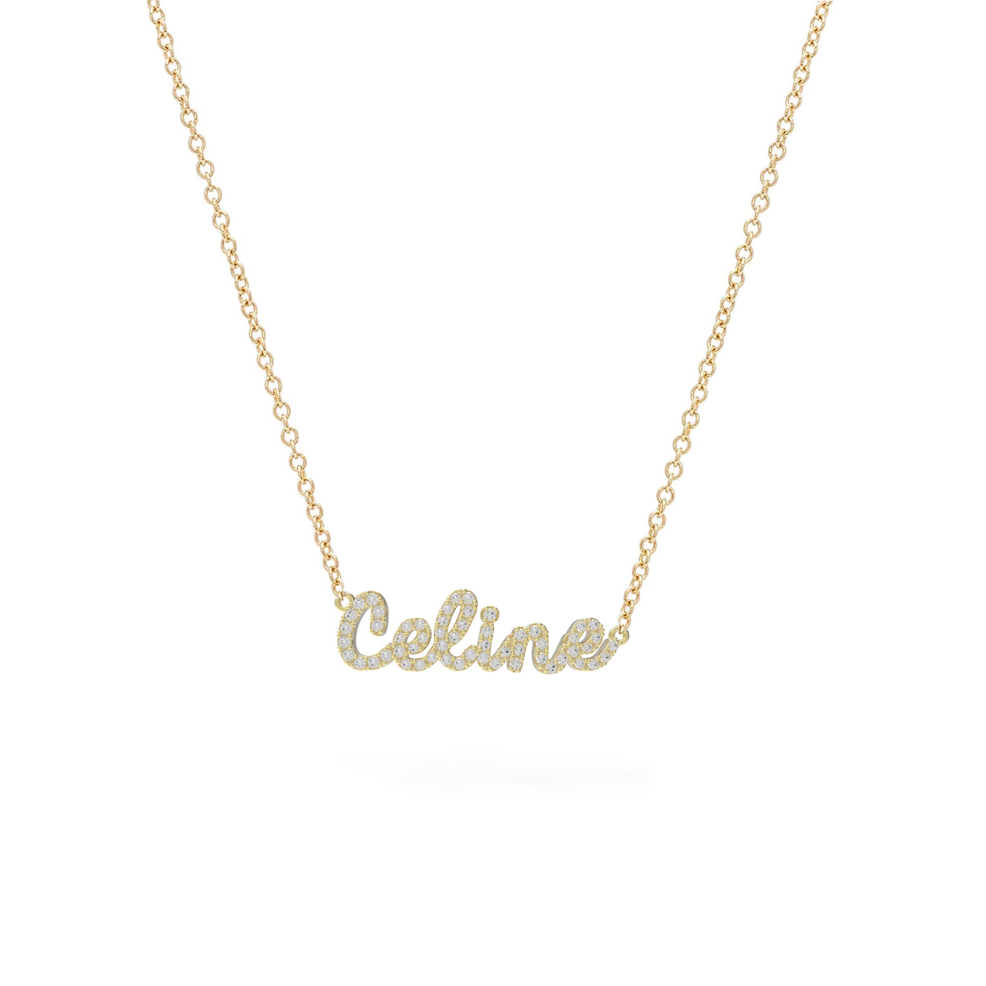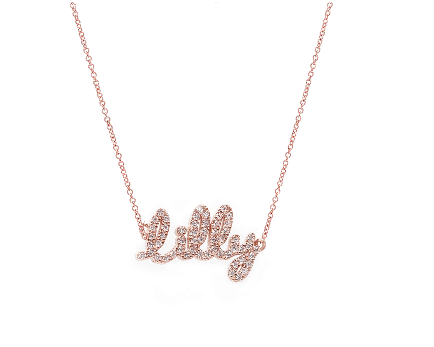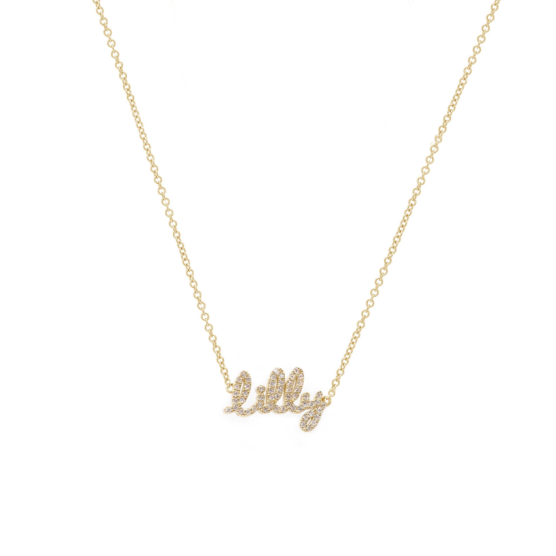 - This stunning necklace features a diamond-encrusted name written in our script special font