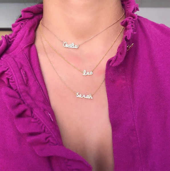 The prettiest most delicate name necklace anywhere on the world wide web, that is our promise. This necklace writes your name or special word in our special handwritten font using 18k gold and white diamonds. The necklace comes in 16 inches long with two shortening rings which allow you to wear the necklace at different lengths. Wear them individually or layer them up for an added pinch of glam. When we receive your order, we will send you a computer-generated image of your necklace before starting production. For double name necklaces choose the appropriate number of letters, write your name and let us know you would like a chain in between two letters. For any further customization or more than 9 letters, please contact us.