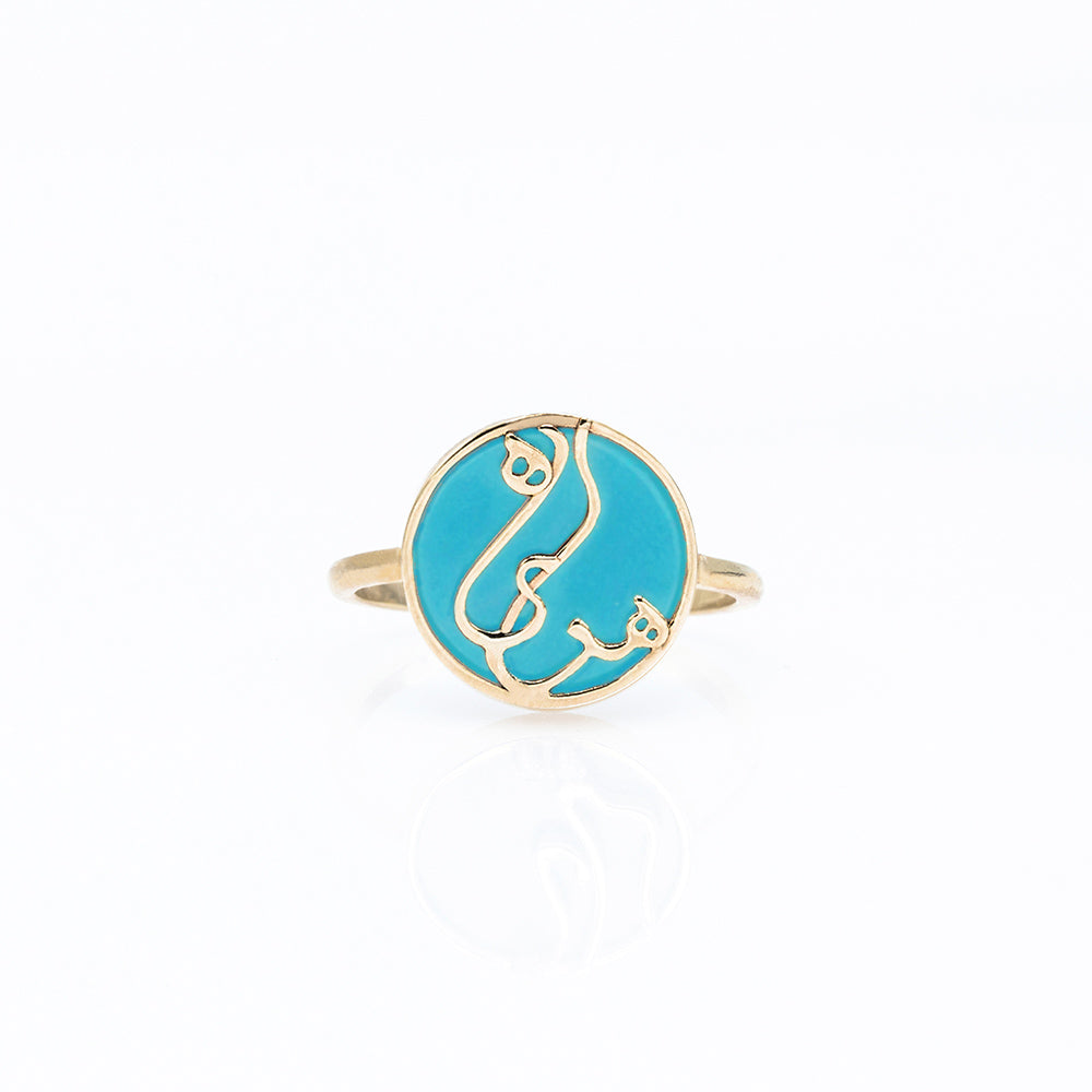 - This beautiful Ring features a Turquoise/Lapis/Onyx/Mother of Pearl with Persian/Arabic name in Calligraphy at the center
