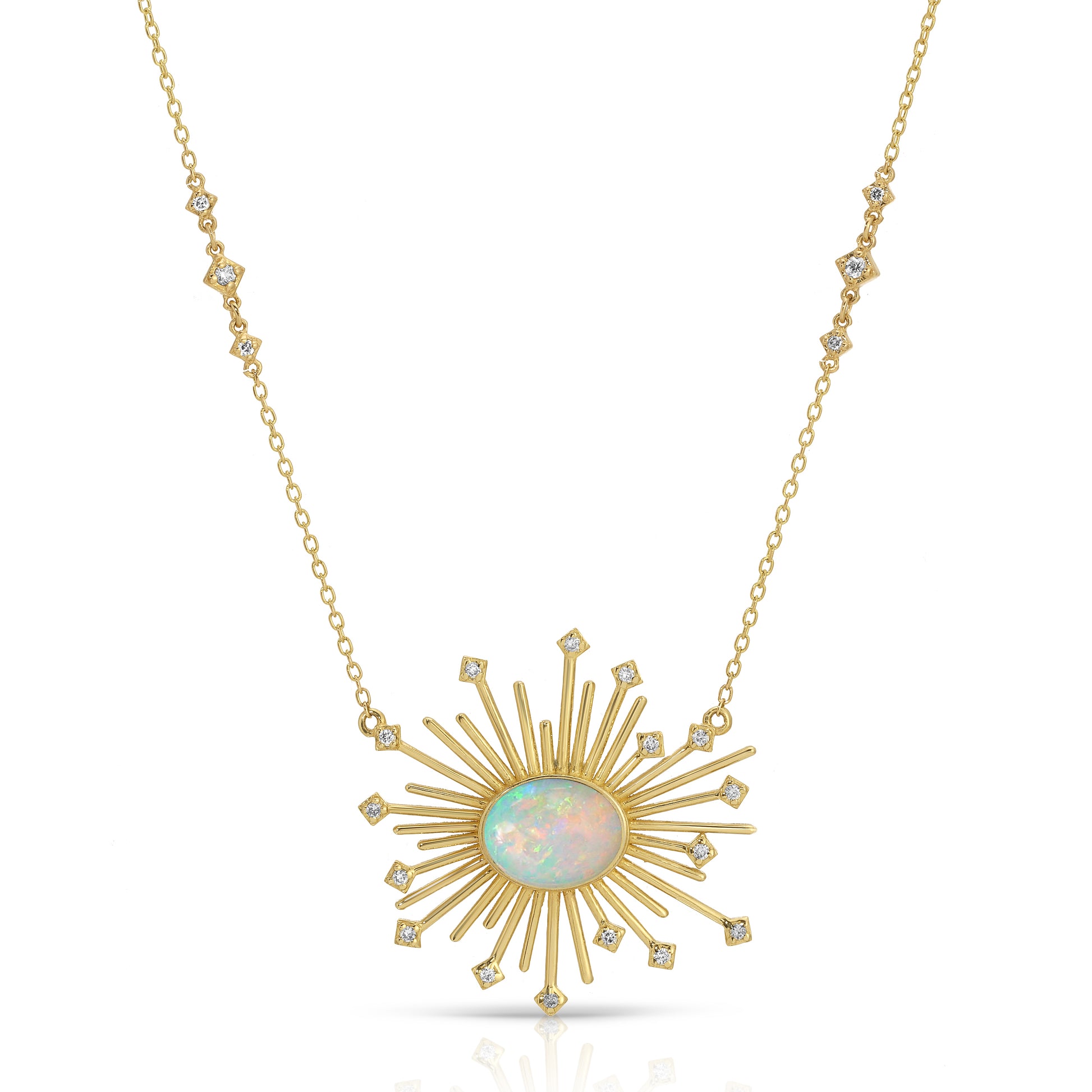 The opals in particular glow with an ethereal play of color, reminiscent of sunlight dancing on water. Elegant, versatile, and radiant, this necklace makes an unforgettable statement for both everyday wear and special occasions.