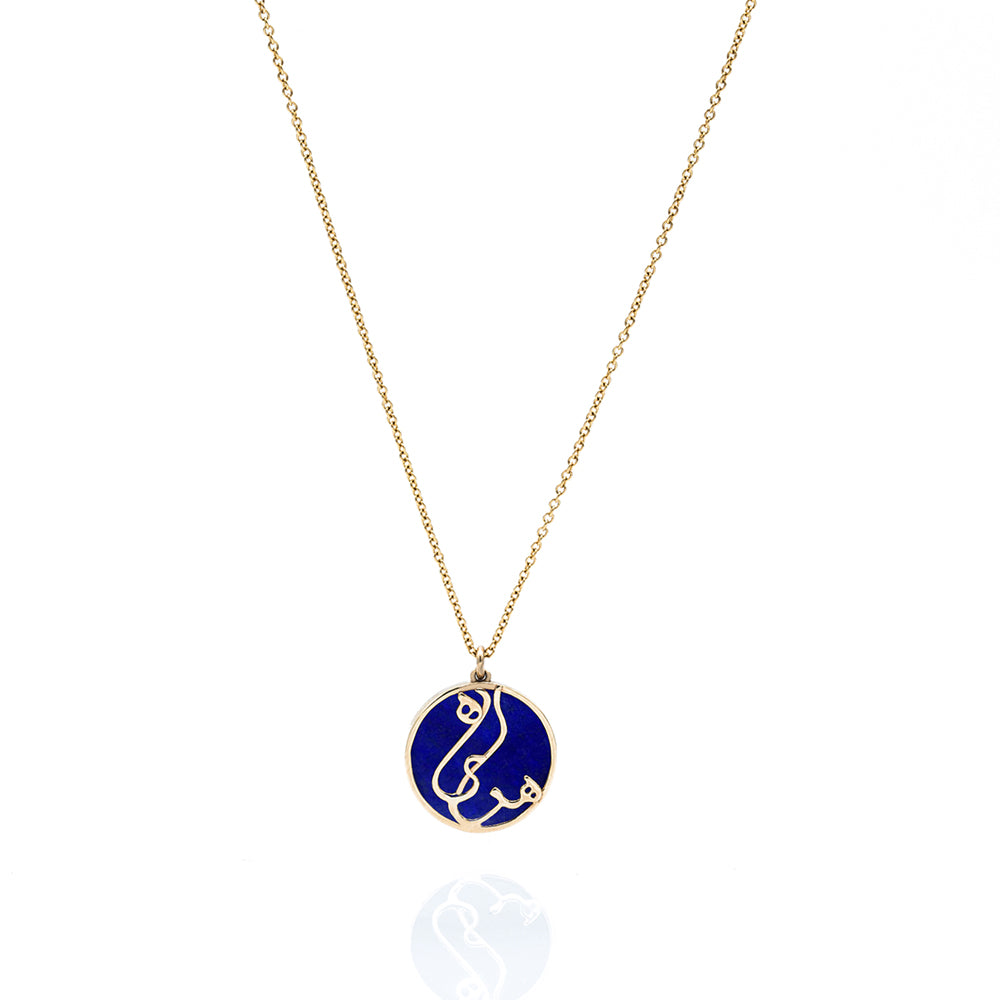 - This beautiful necklace features a Turquoise/Lapis/Onyx/Mother of Pearl pendant with Persian/Arabic name in Calligraphy at the center