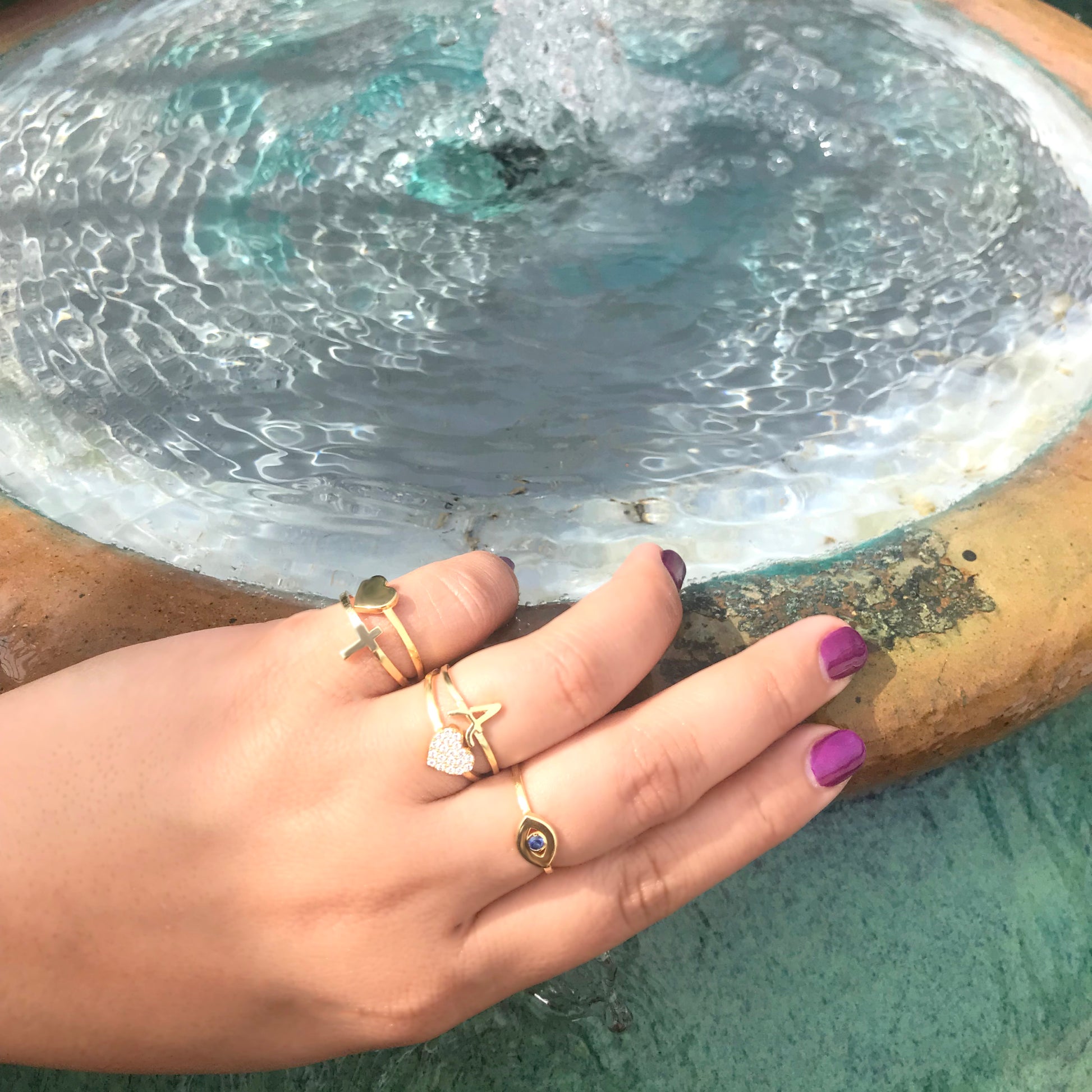 This ring features a beautiful heart symbol in 18 or 14k gold handset with white diamonds. Inspired by the one with a heart of gold, the ring sparkles as you move on top of a delicate and feminine band.