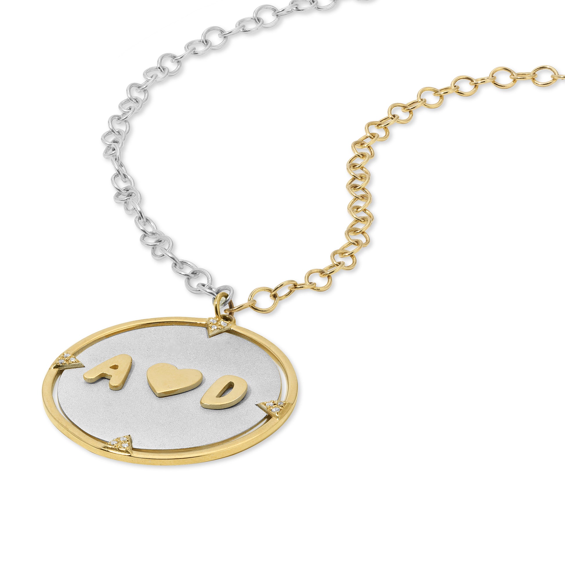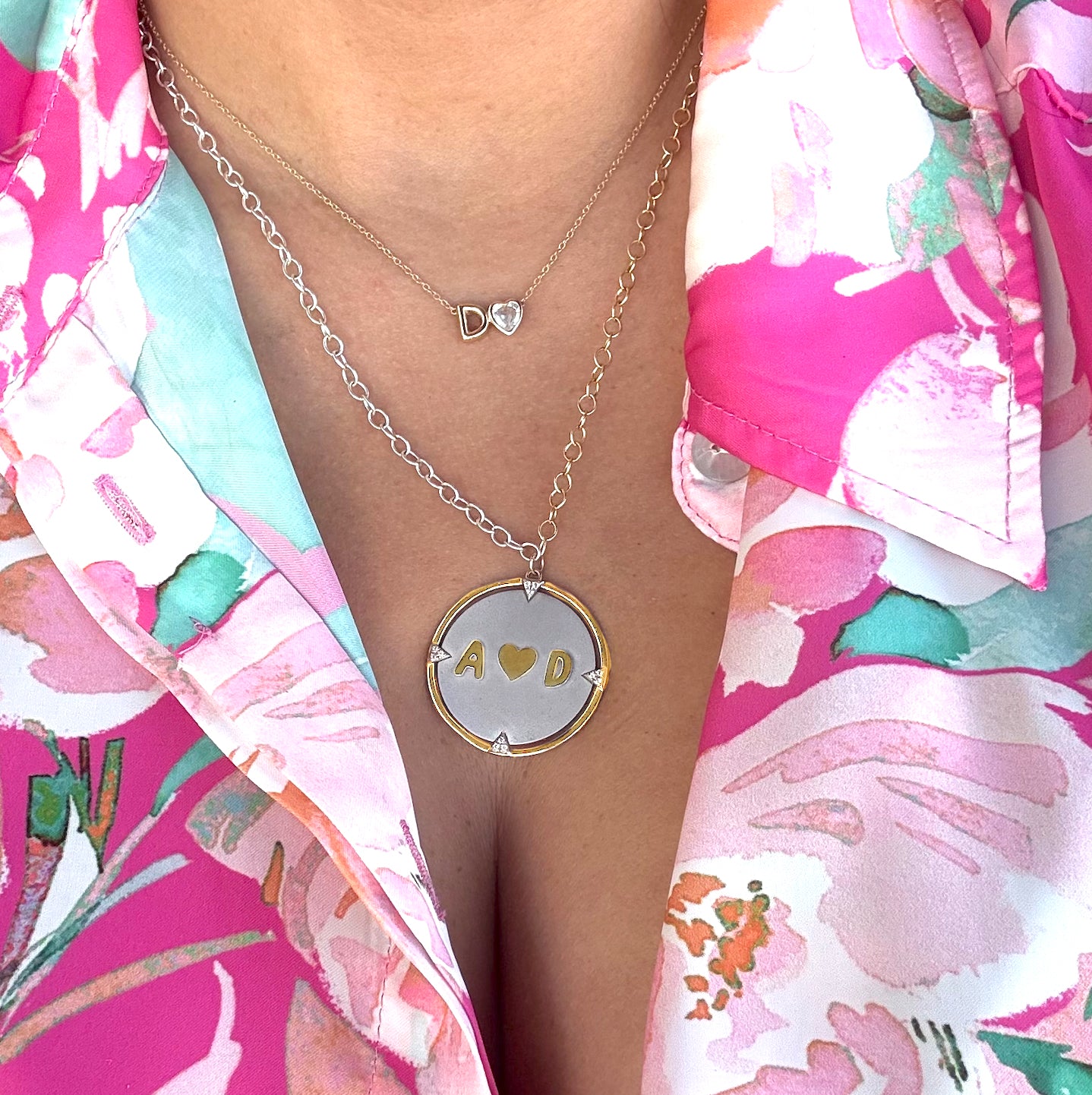 Two-Tone Initial Medallion Necklace – 14k Gold & Silver with Diamonds