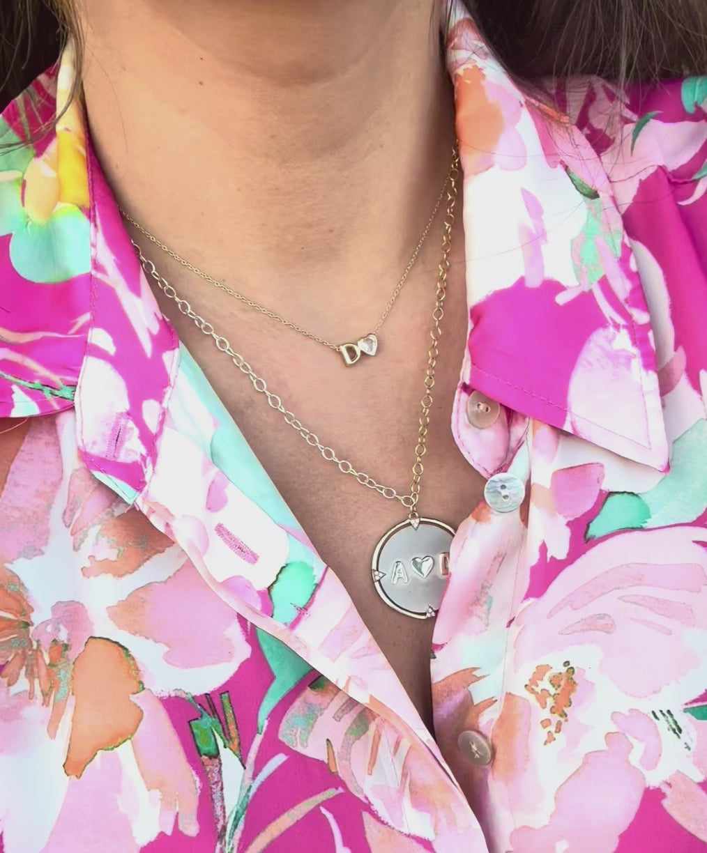 Celebrate love, connection, and individuality with our Two-Tone Initial Medallion Necklace, a modern heirloom designed to be as personal as it is timeless. Handcrafted in a striking mix of 14k yellow gold and sterling silver, this pendant allows you to customize with two or three initials—whether it’s your own, a loved one’s, or a meaningful combination.