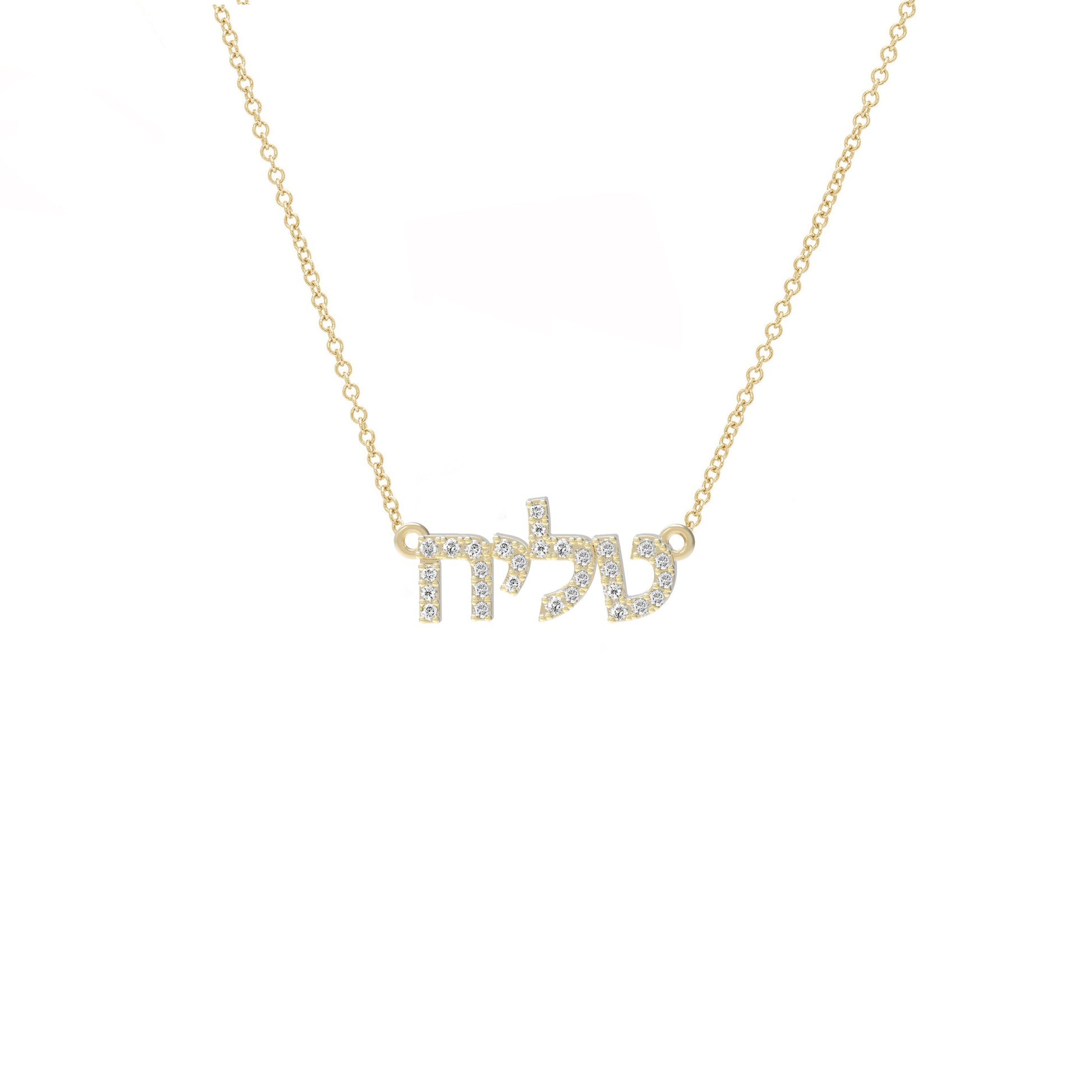 Order your name in 18k or 14k gold and genuine high-quality diamonds, written in a beautiful modern Hebrew block font, specially designed for you. Once we receive your order, we will send you the artwork of the specially designed necklace for your approval before production. To order a double name necklace please contact our customer service. Wouldn’t this make the best personal gift of all times?