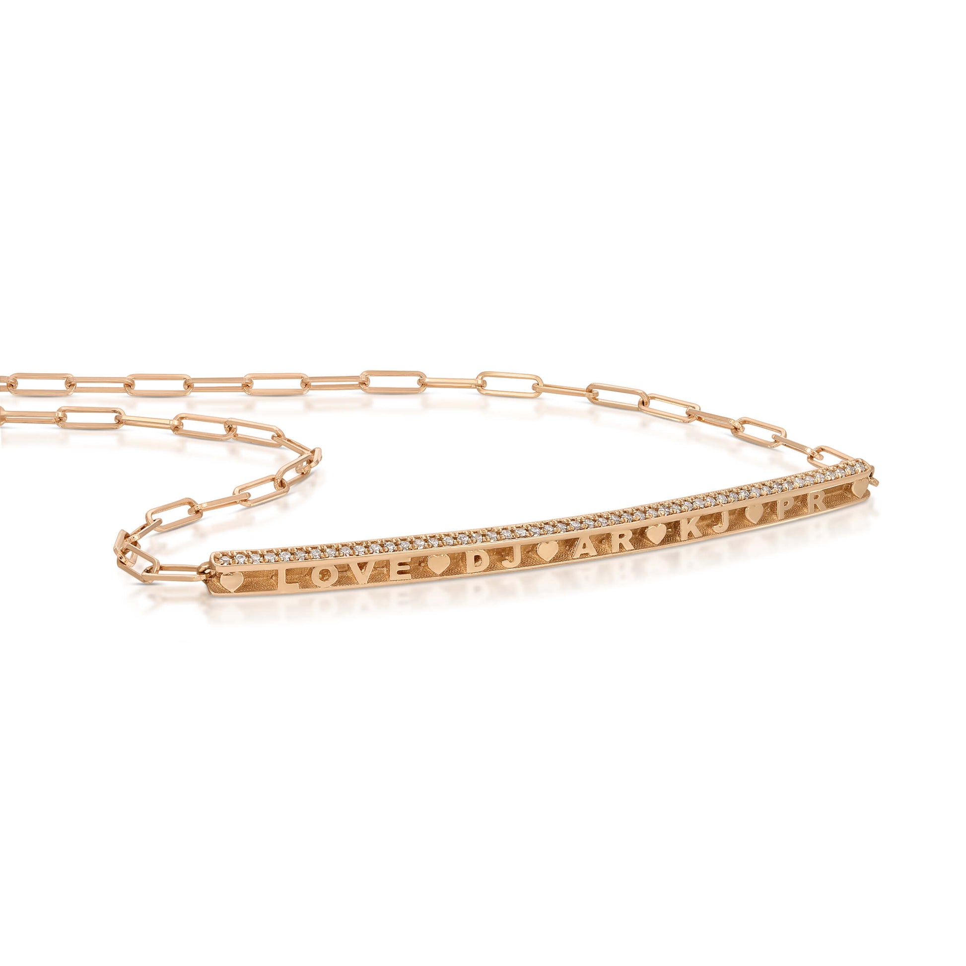 This Noush personalized bar necklace is a modern twist on a classic necklace, it is the perfect way to honor yourself or someone special in your life. Customize with a name, initials, numbers or sentence of your choice!