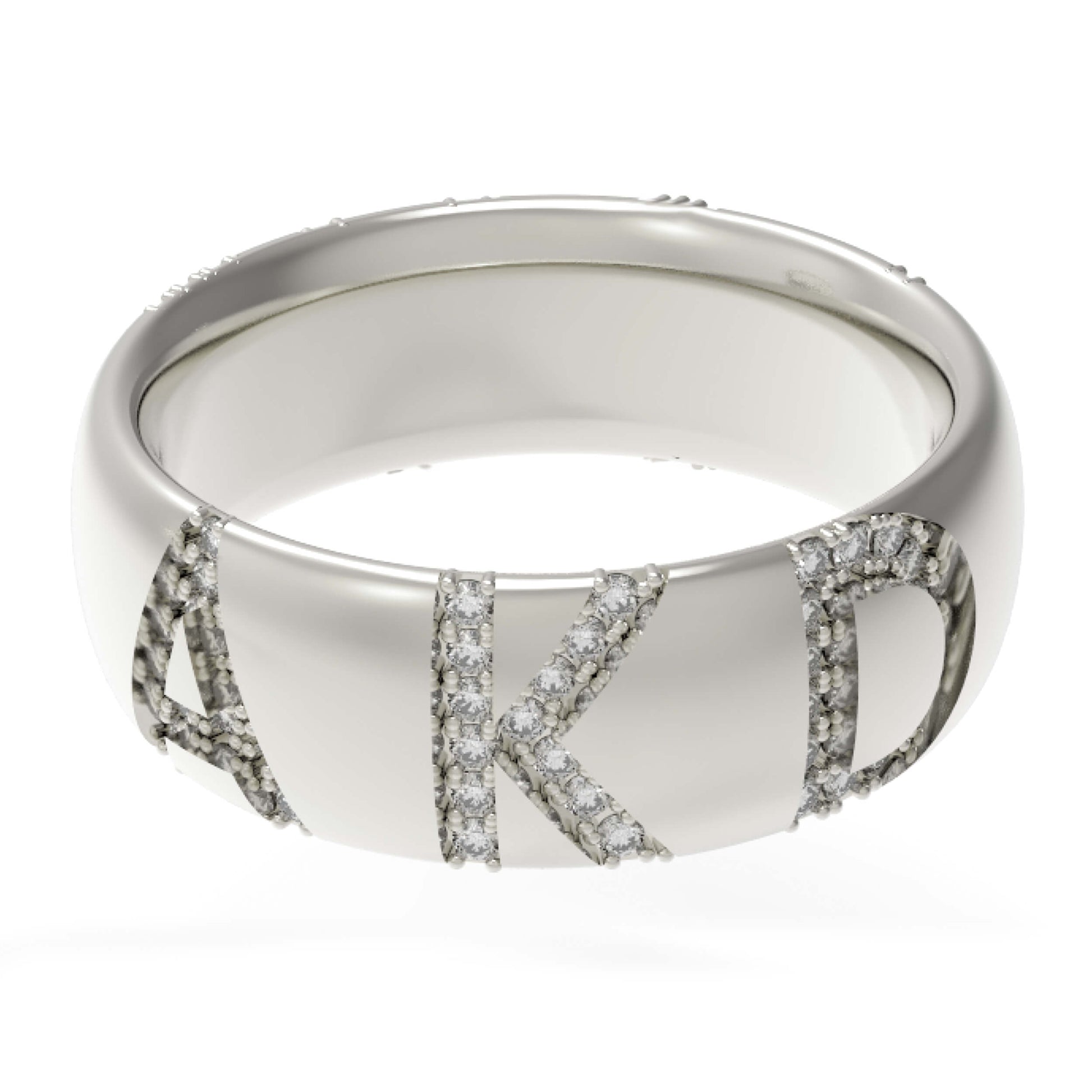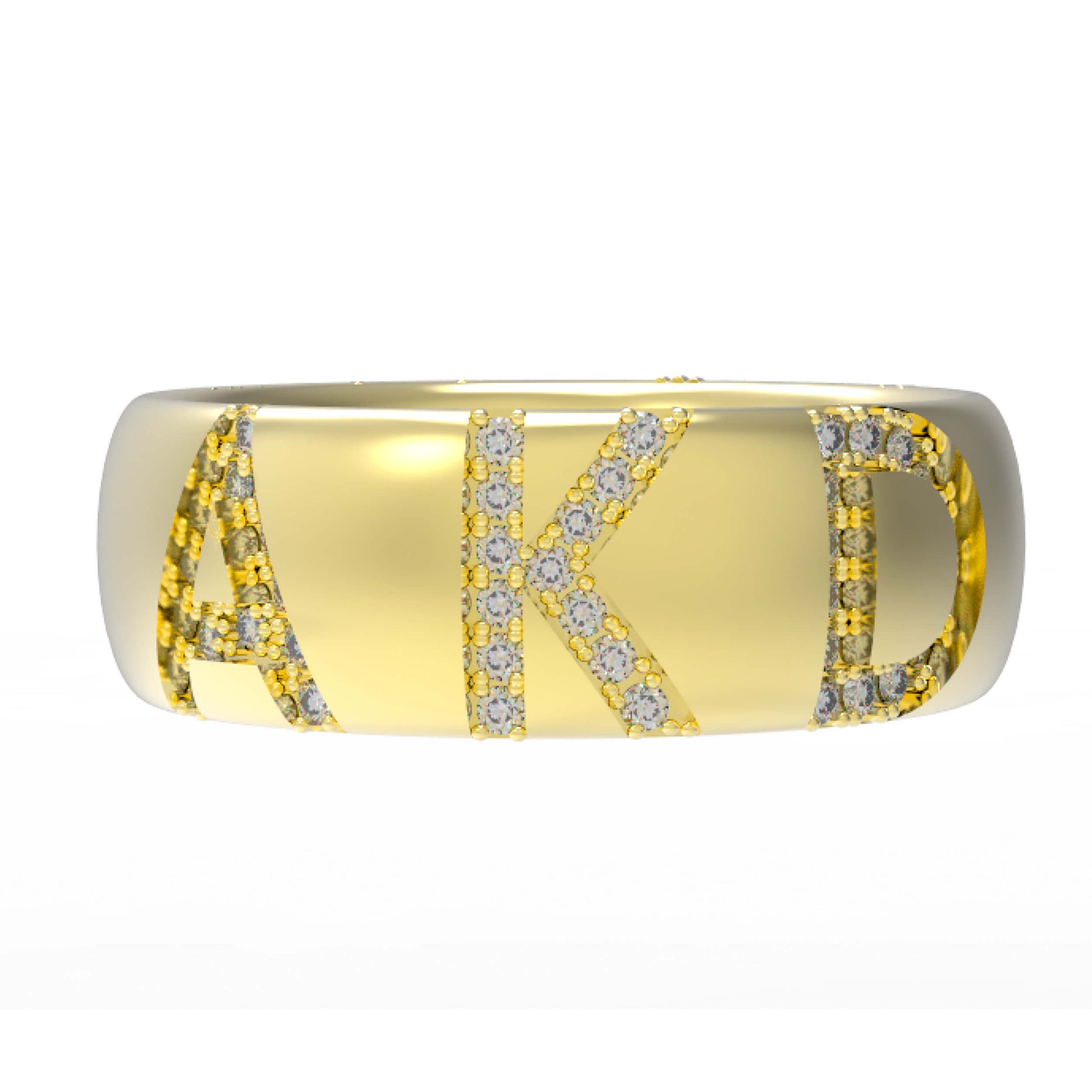 This Noush personalized thick ring is a unique way to keep a loved one close to your heart. Customize with a name, initials, numbers, or sentence of your choice! The letters are inserted inside the bar with pave of diamonds glittering as you move.