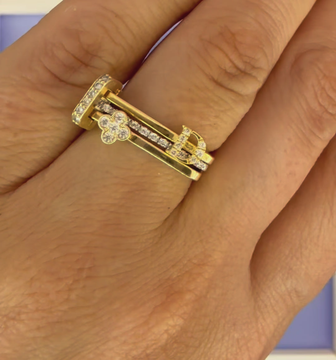 The modular bar mechanism allows each ring to interlock seamlessly, creating a bold, personal statement. Perfect for commemorating names, love, milestones, or meaningful motifs.