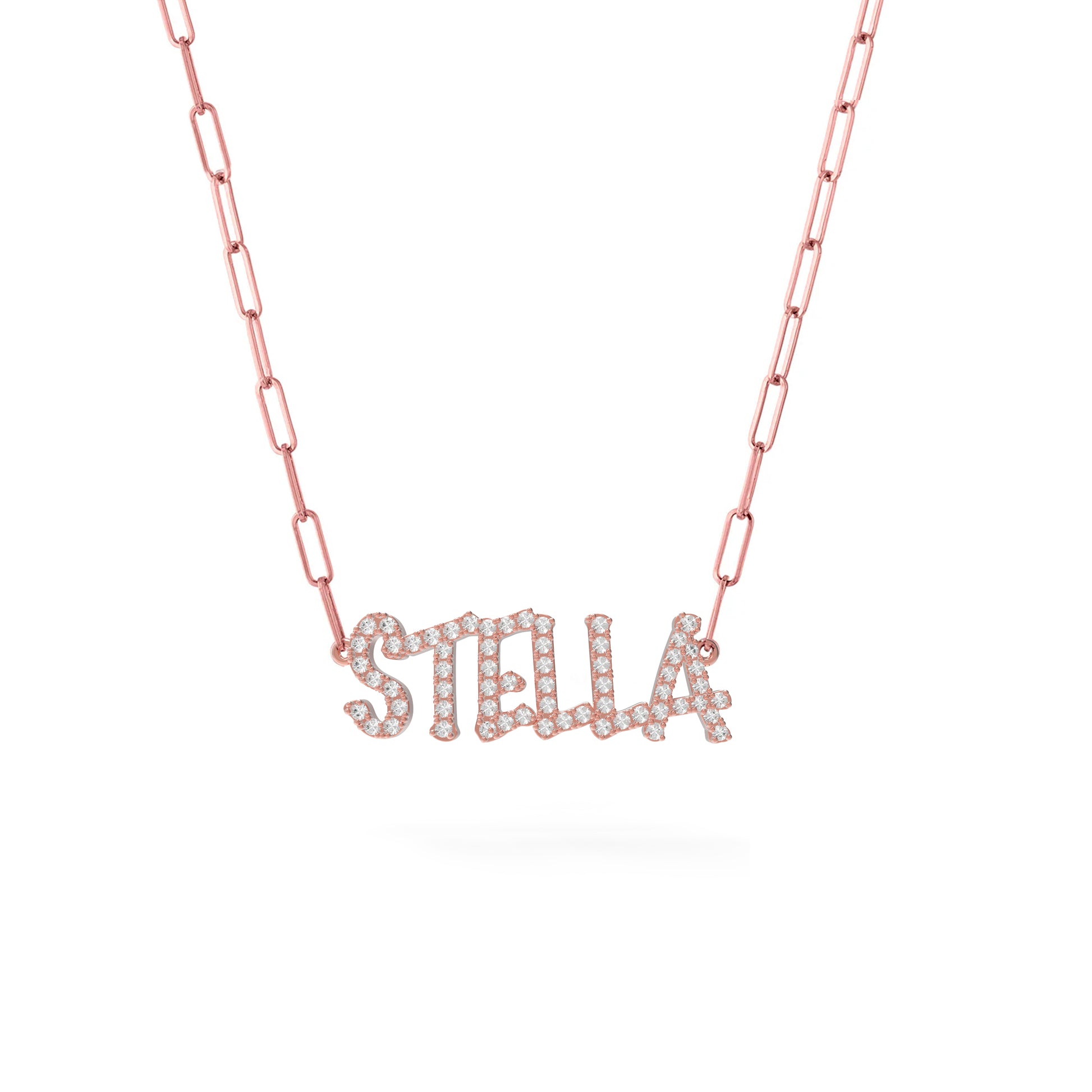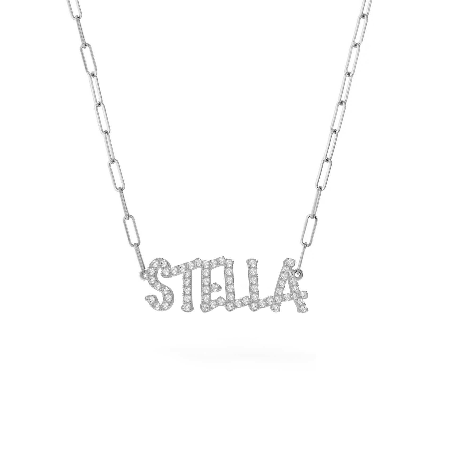 - This stunning necklace features a diamond-encrusted name written in our special font