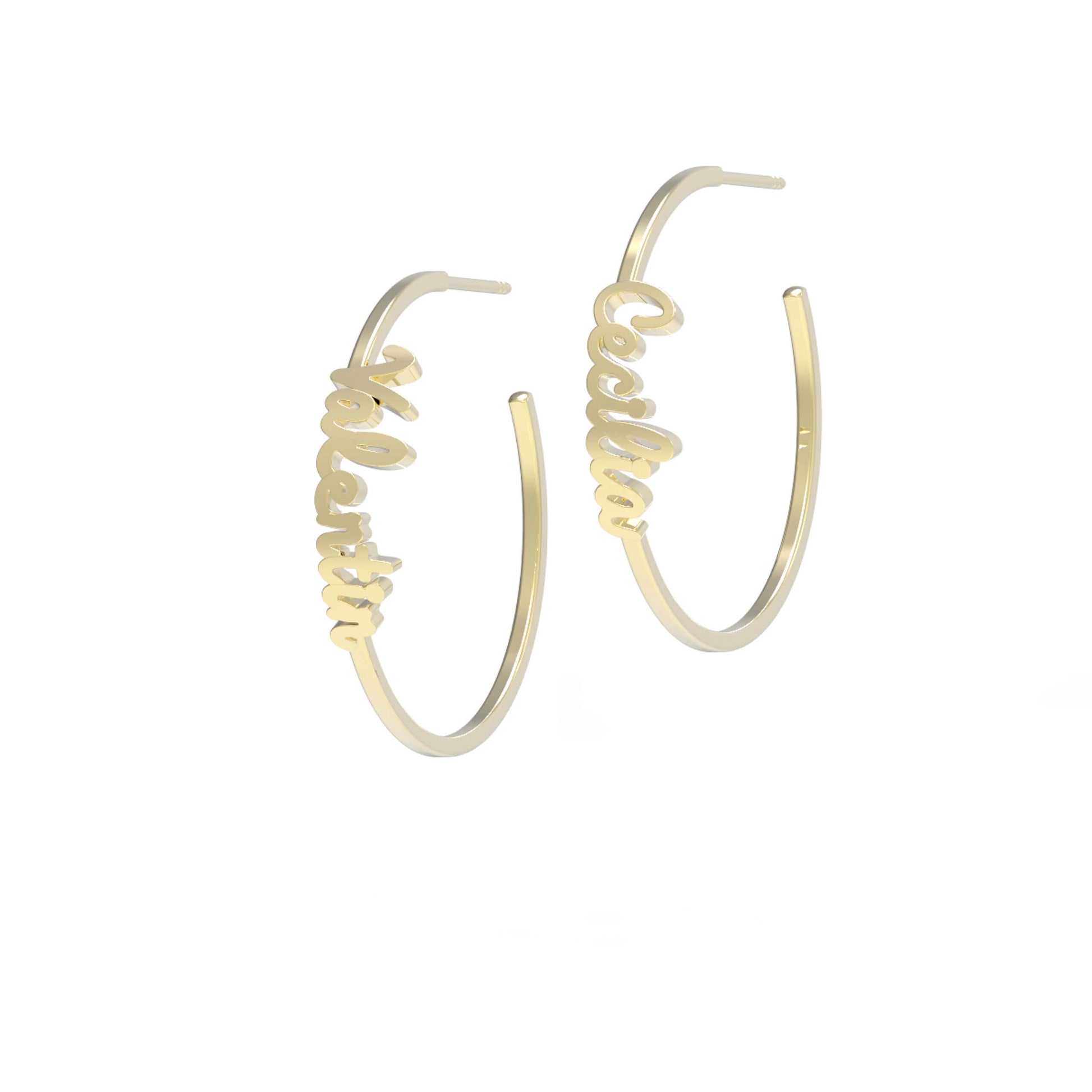 The prettiest most delicate name hoops anywhere on the world wide web, that is our promise. These earrings write your name or special word in our special handwritten font using 18k or 14k gold . The hoops come in 35mm with large backing. The earrings can be mirrored with the same name, or simply have two different names/ When we receive your order, we will send you a computer-generated image of your earrings before starting production. Choose the appropriate number of letters, write your name(s) and let us if you have any special requests. For any further customization or more than 16 letters, please contact us.