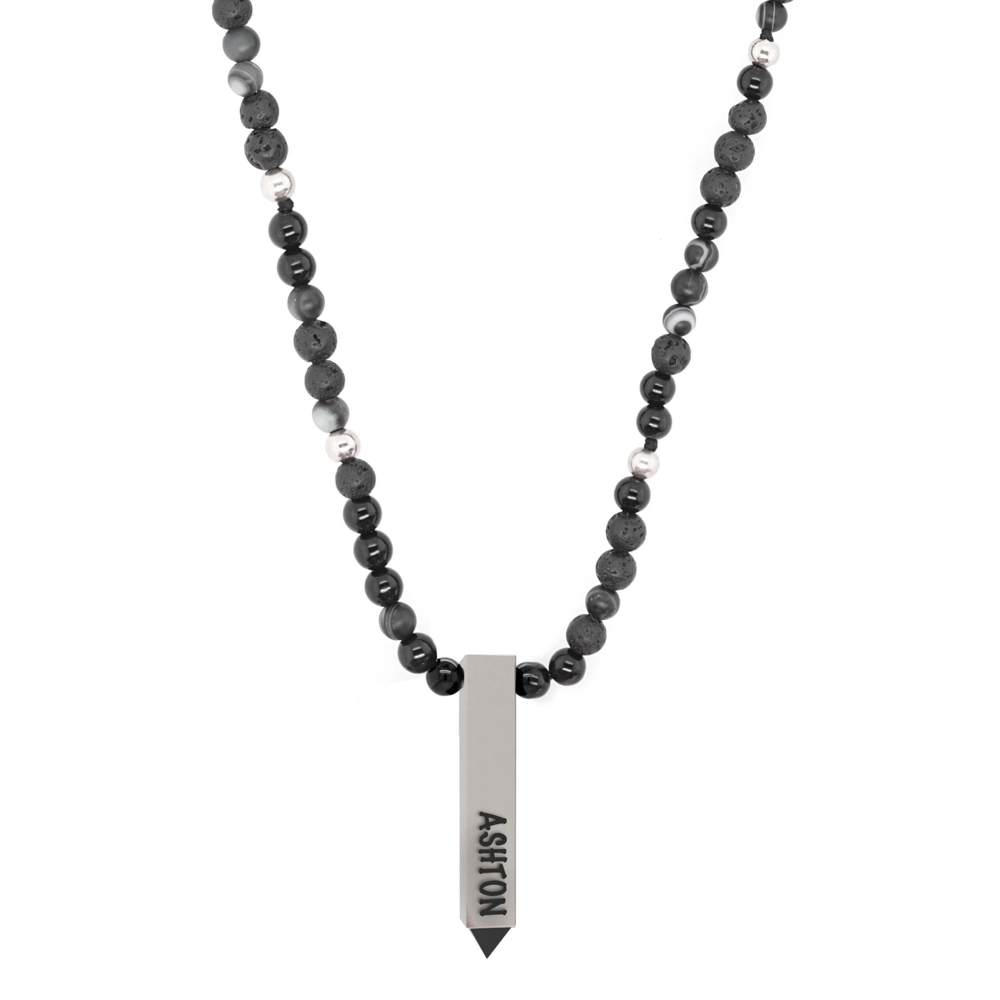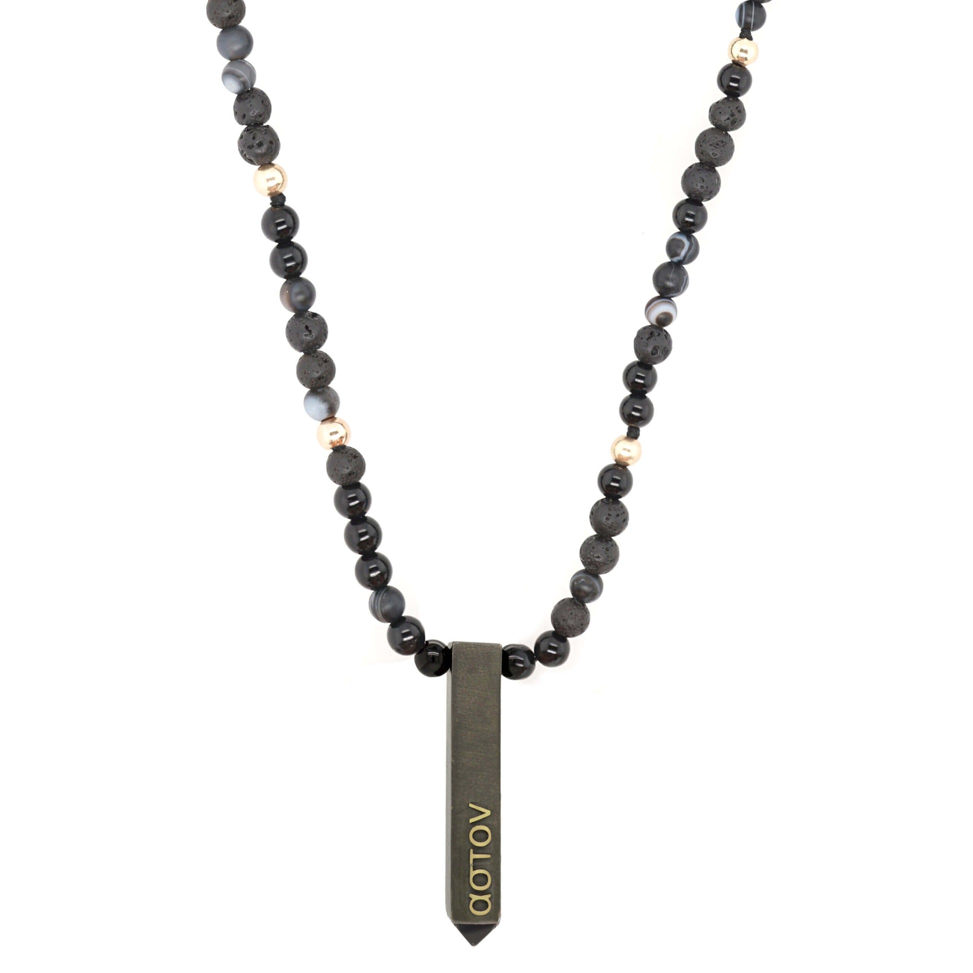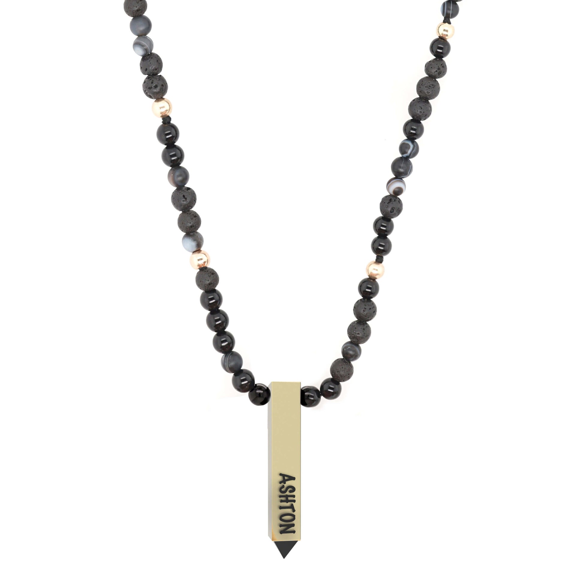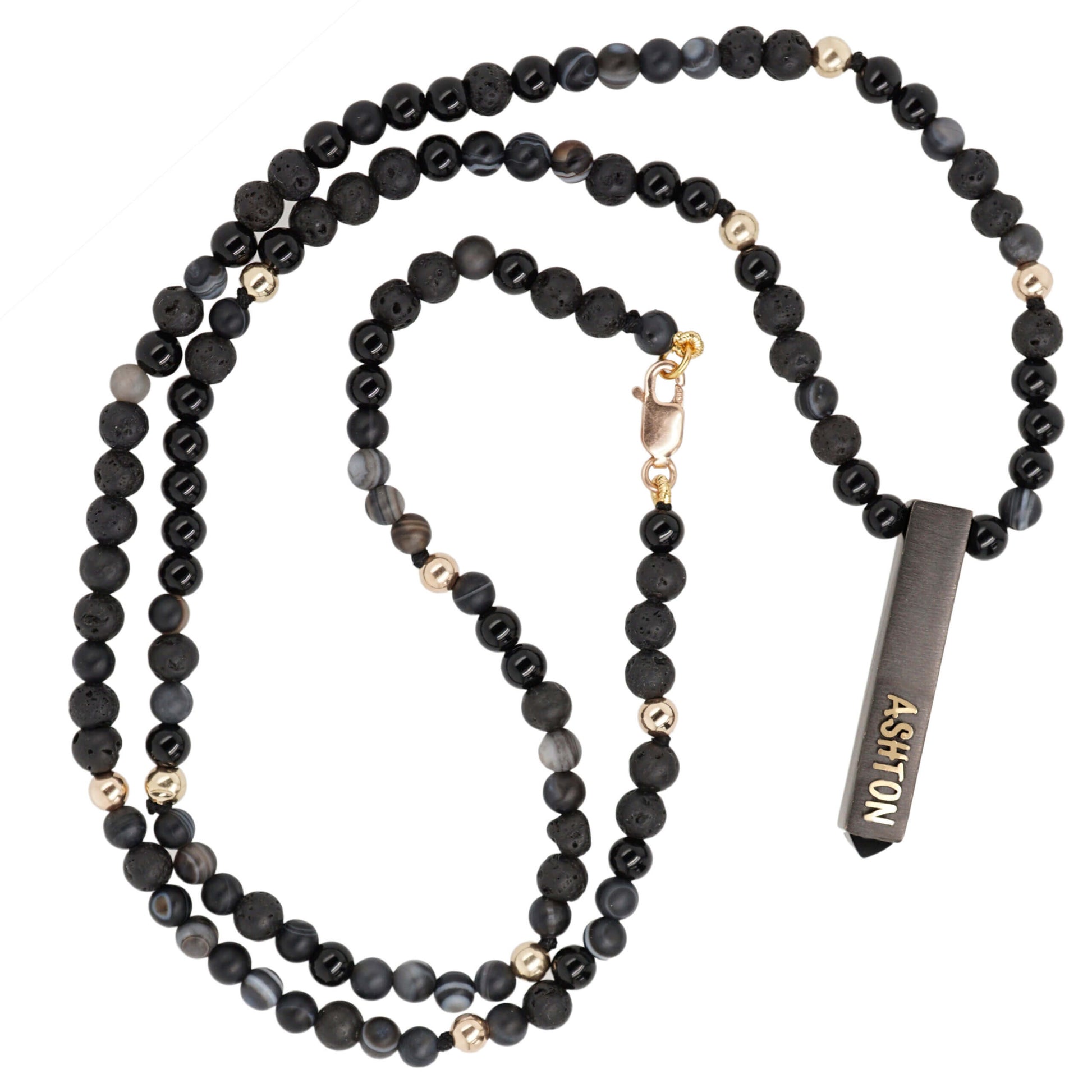 look no further for a men's necklace that is unique and stylish yet understated. Available in any language and style, this 14k gold necklace with genuine onyx stone is full of simple details.