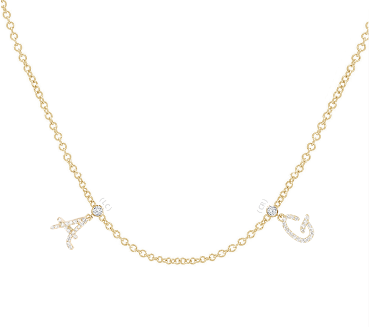 Let us know in the personalization section what letters and what gemstones you would like to have. We will do a rendering and send you the design prior to production. We will not start production until you are happy with the design