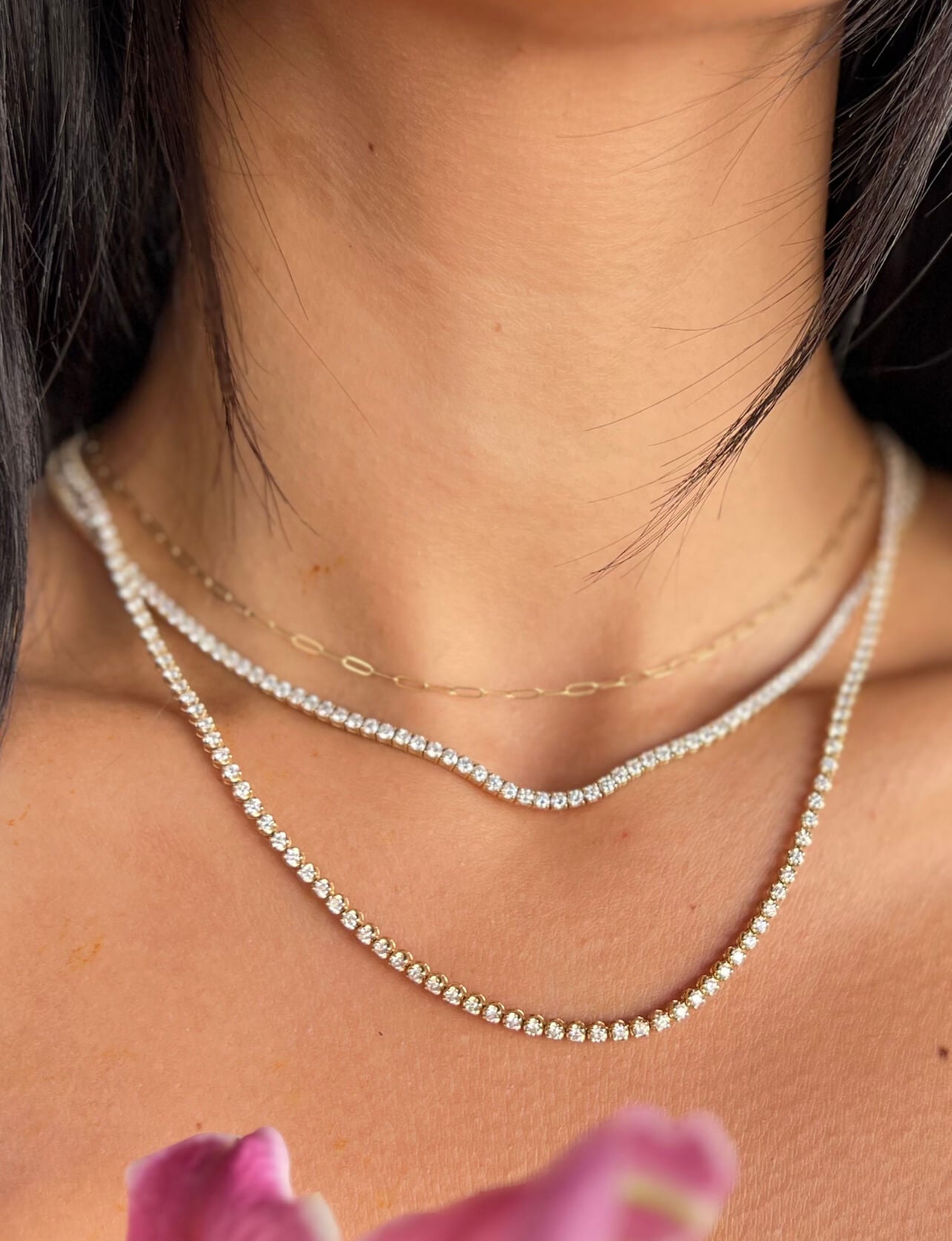 - Available Metal Options: You can choose the tennis necklace in 14K White Gold, Yellow Gold, or Rose Gold.