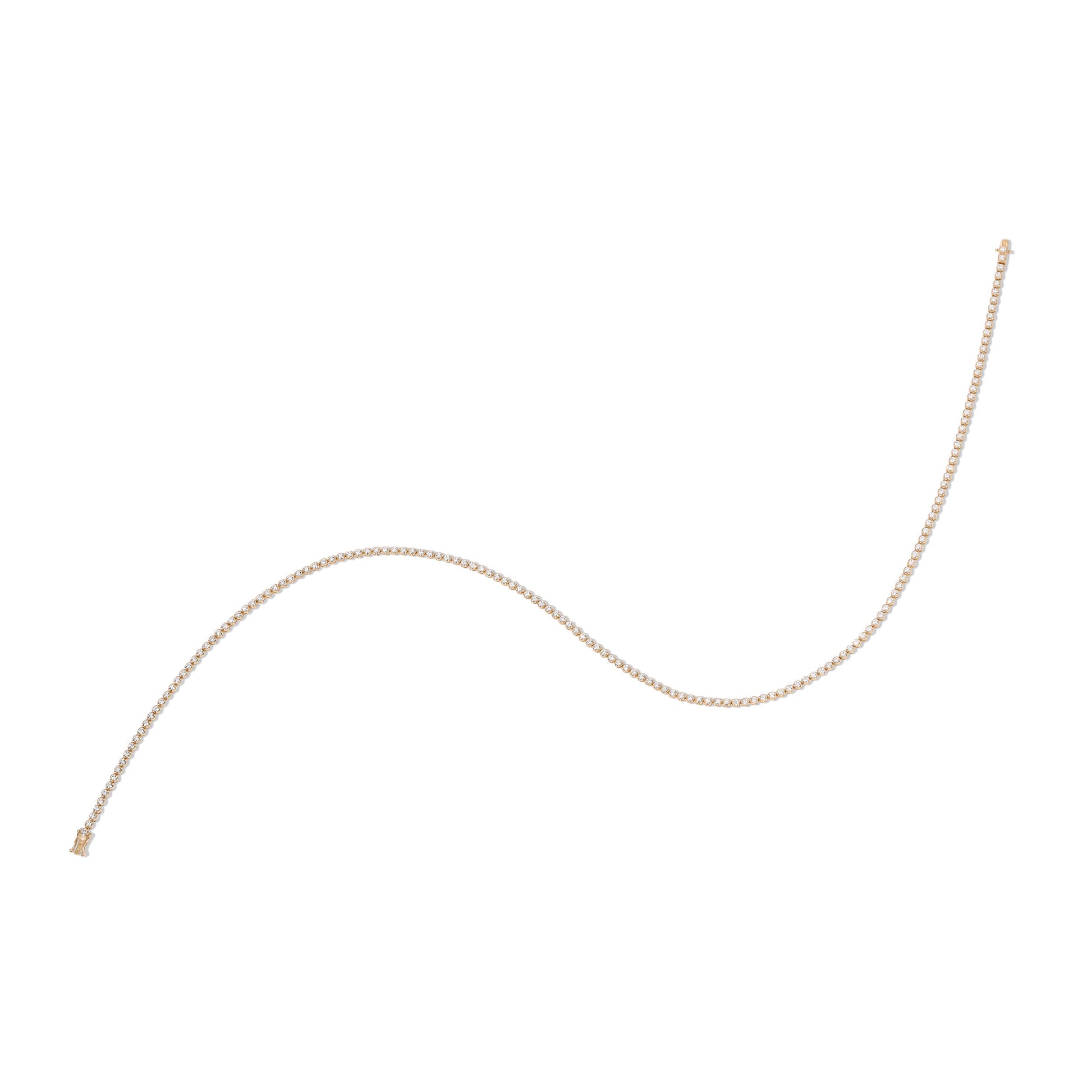 A tennis necklace is a classic and elegant piece of jewelry that features a continuous line of diamonds set in a single row. Here are the details you provided: