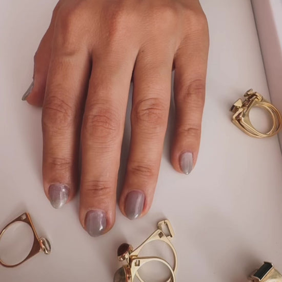 The LNQD 3-Stack Ring is a one-of-a-kind statement piece, handcrafted in the USA from solid 14k yellow gold. This bold design features three stacked rings, each set with a unique natural gemstone that radiates warmth, light, and energy.