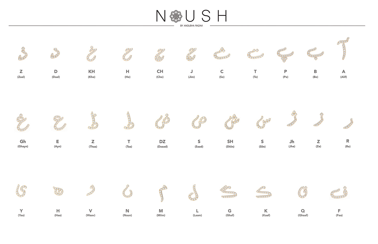 - These delicate stud earrings feature Persian/Arabic initials encrusted with diamonds