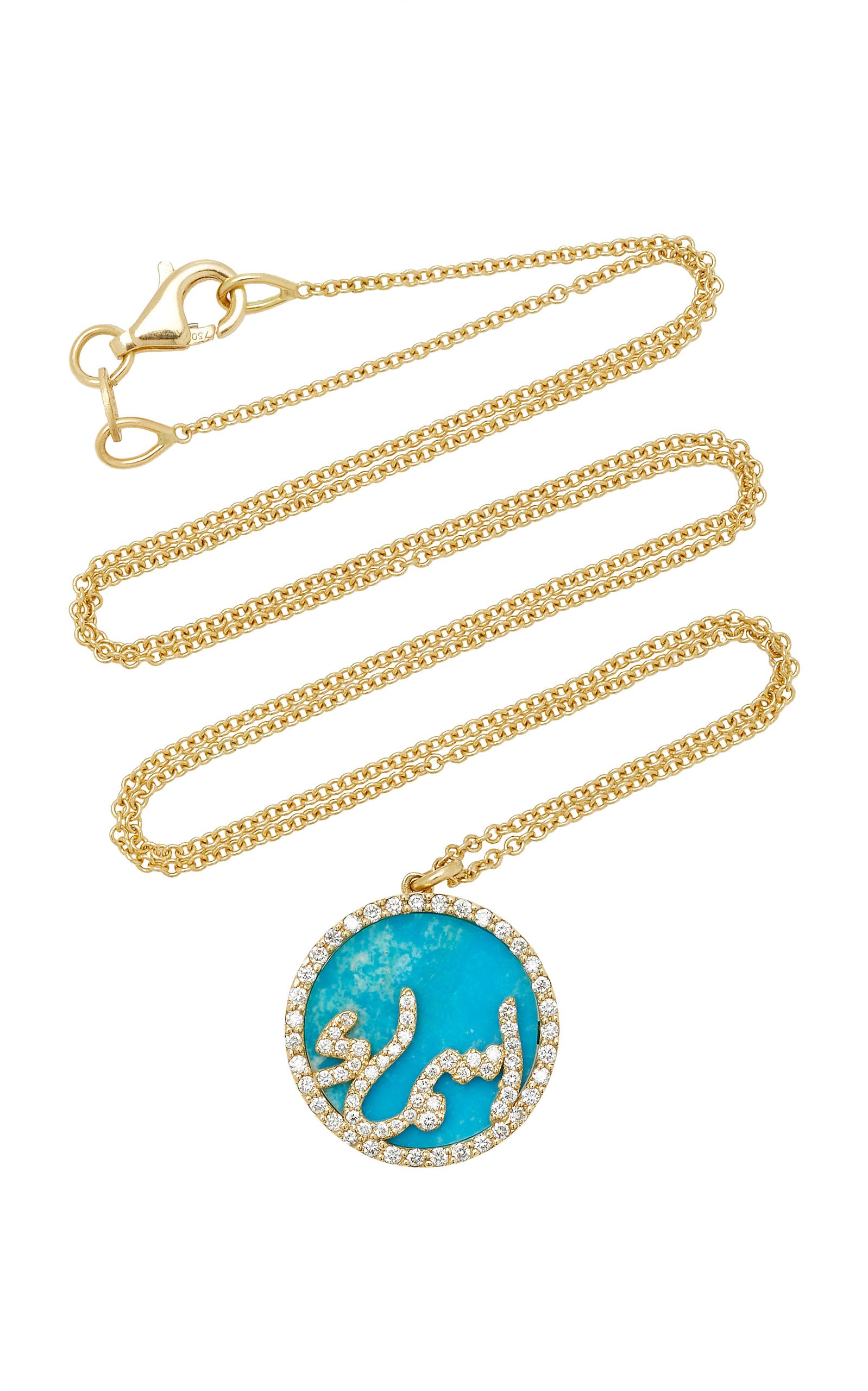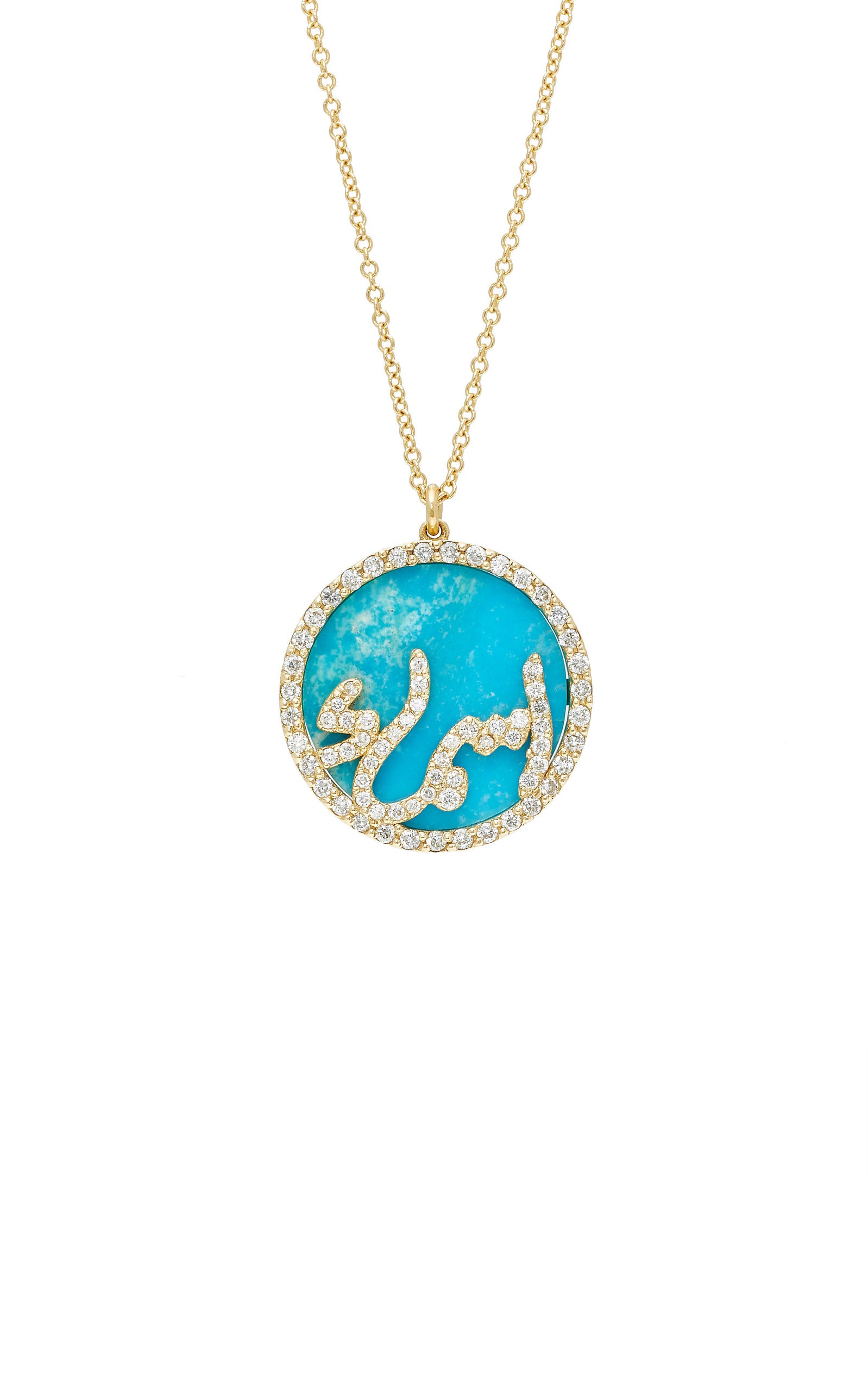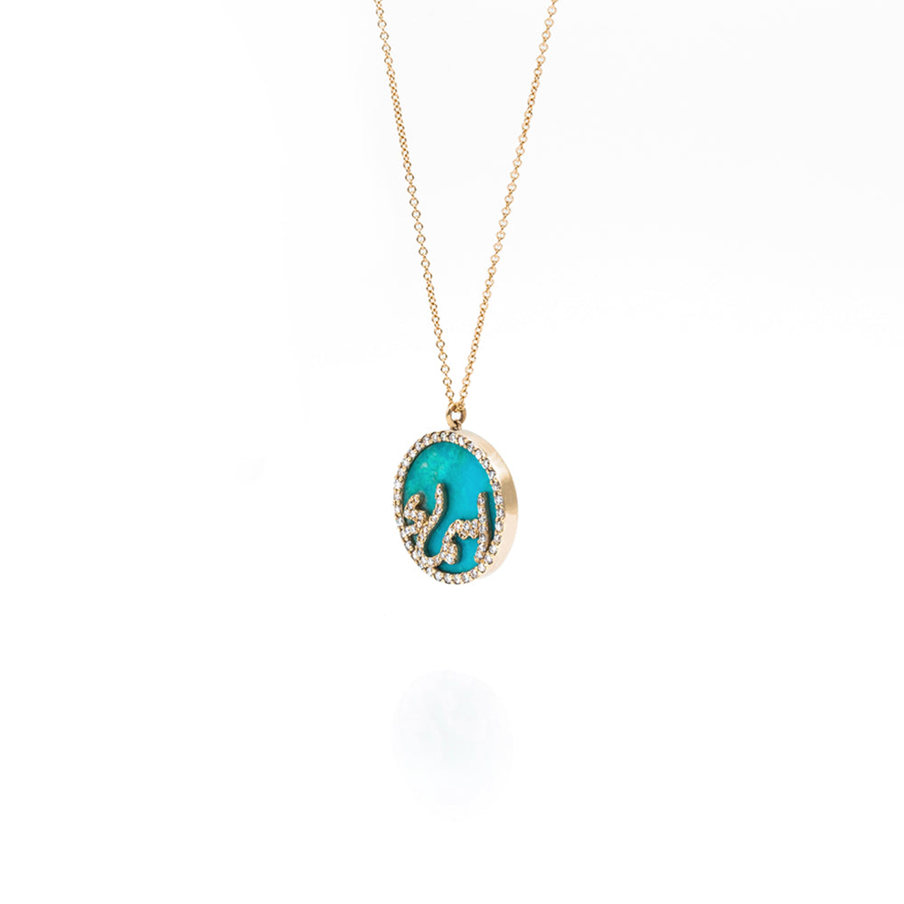 - This beautiful necklace features an gemstone pendant with a diamond Persian or Arabic initial at the center