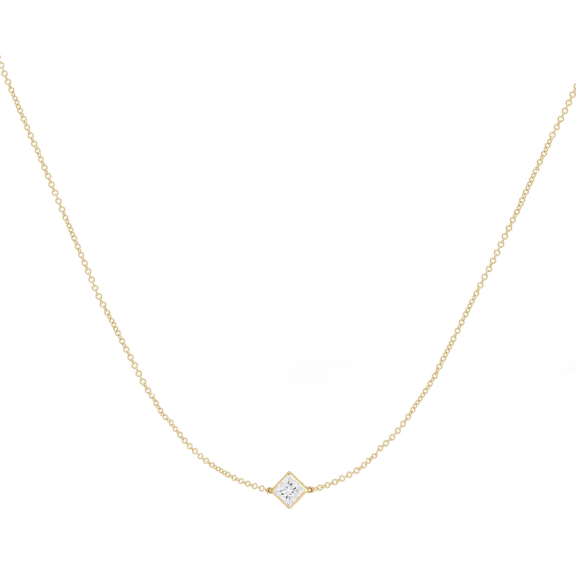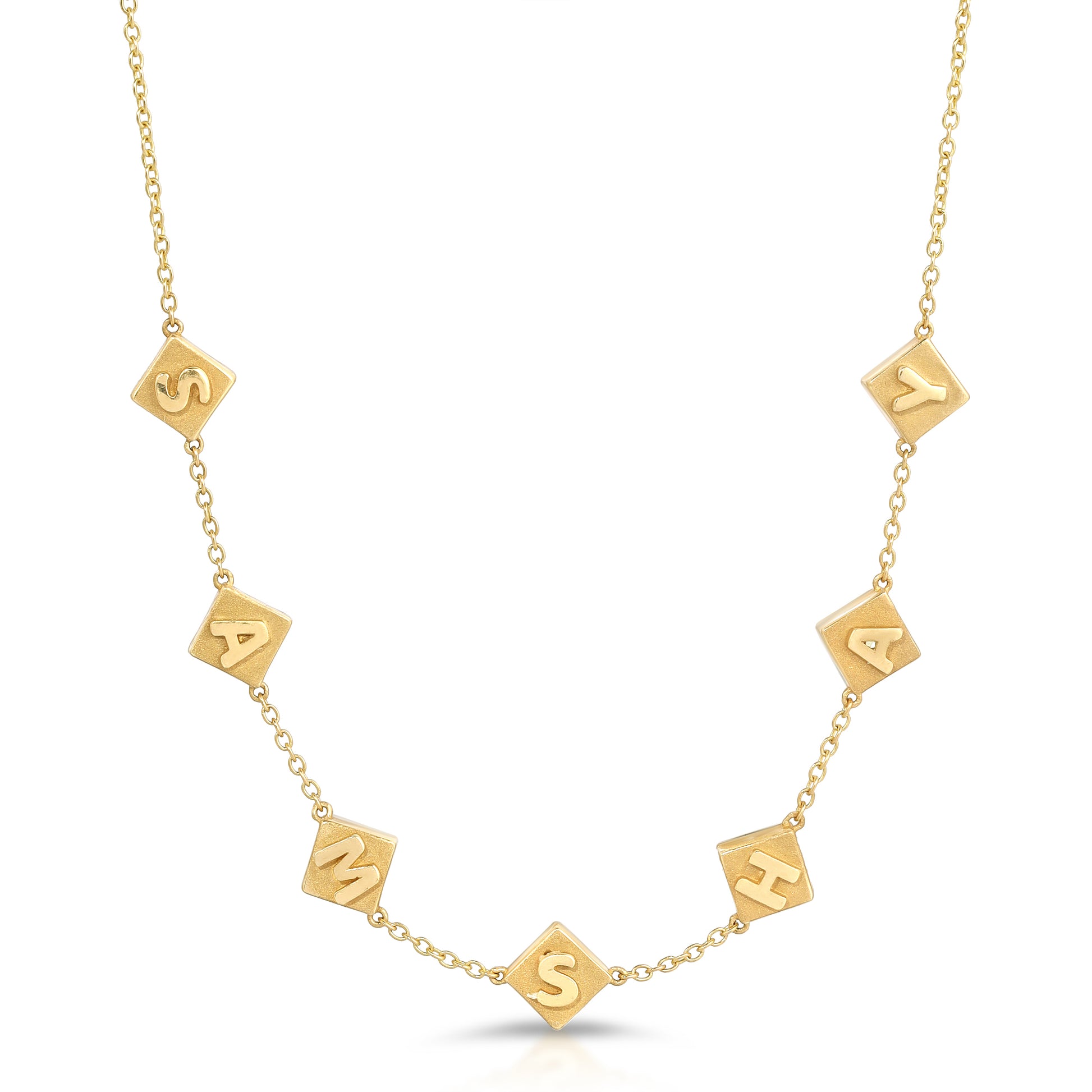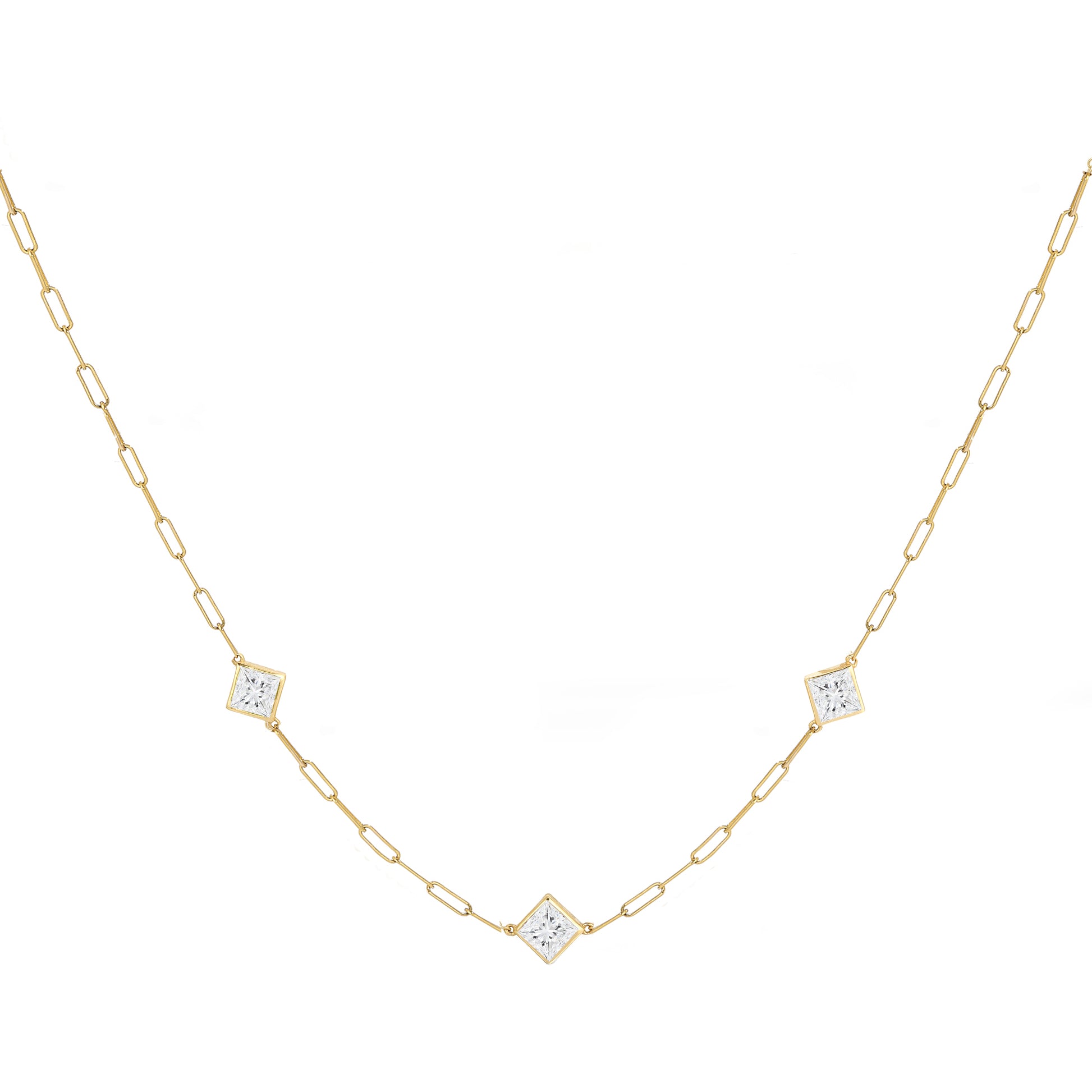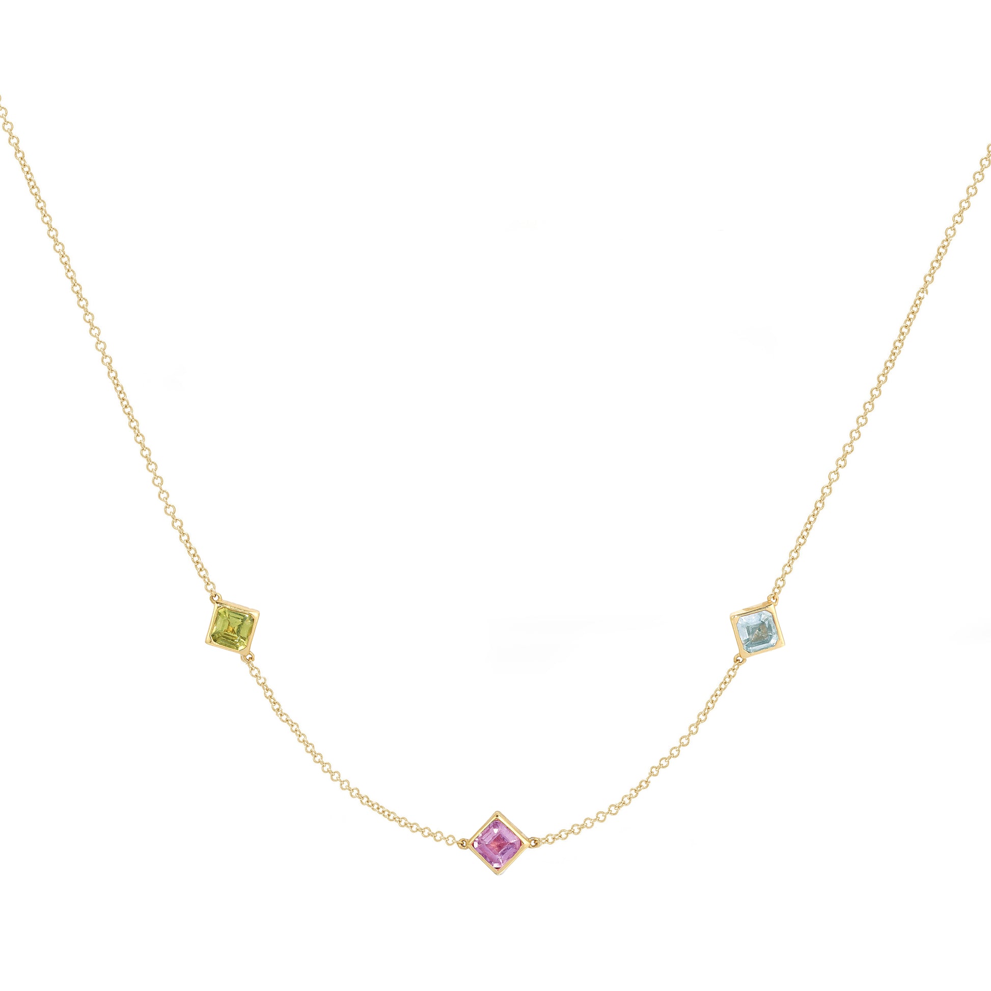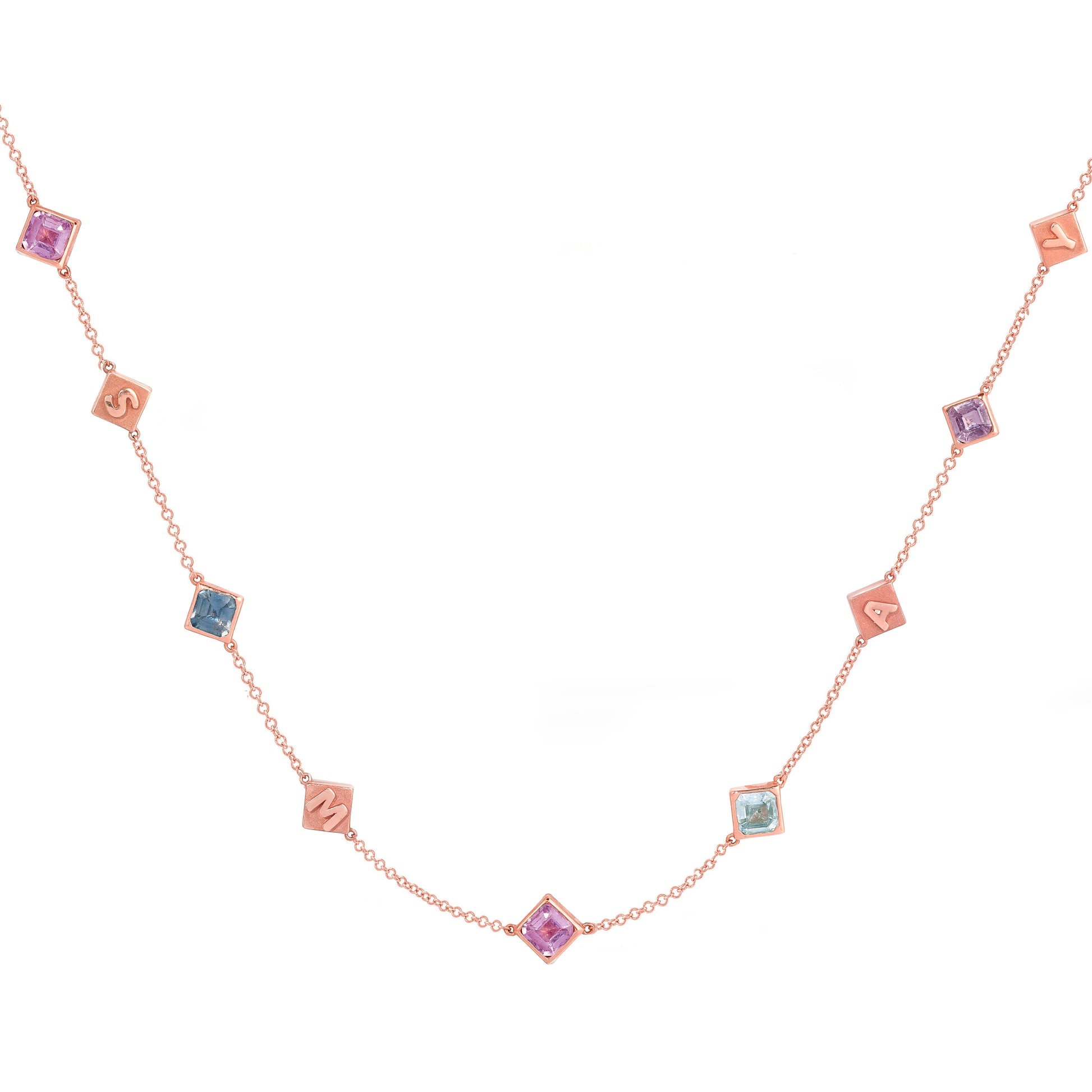 Introducing our stunning Peekabo necklace, a perfect blend of elegance and personalization. This exquisite piece features bezel-set princess cut gemstones that rotate to reveal a hidden initial or character on the back, offering a unique and intimate touch. You can choose your gemstone from a selection of brilliant diamonds or vibrant sapphires in various colors, allowing you to create a piece that truly reflects your style. Personalize your necklace further by selecting the number of gemstones, spelling a name or initials of loved ones, and choosing the color of gold—whether it's classic yellow, romantic rose, or timeless white. This necklace is more than just jewelry; it's a personal statement of elegance and sentimentality.