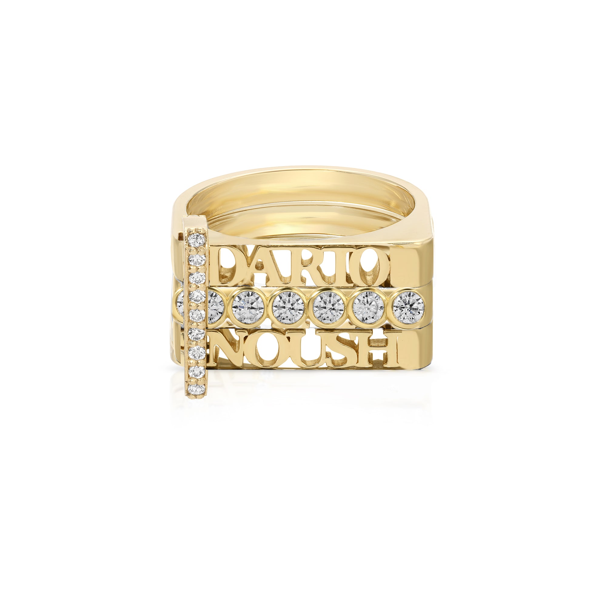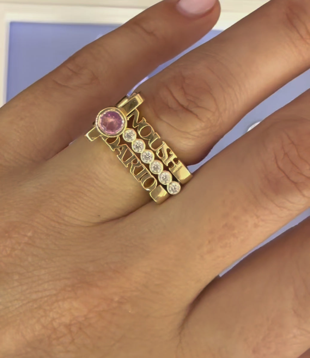 - Personalized rings are customized for names, initials, or meaningful words. Crafted in your choice of 14k yellow, white gold, or mix and match for a playful, modern stack. All gemstones are ethically sourced, and sapphires are natural and genuine.