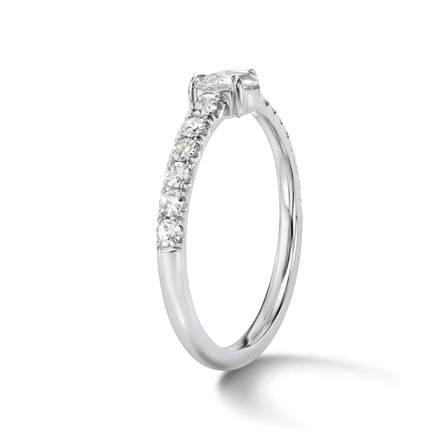 Crafted in luminous 14k white gold, the band of the ring serves as the perfect canvas to accentuate the beauty of the center stone. The versatility of this design allows you to choose whether the pear-shaped diamond is set horizontally, creating a bold and modern look, or vertically, for a classic and elegant appeal.