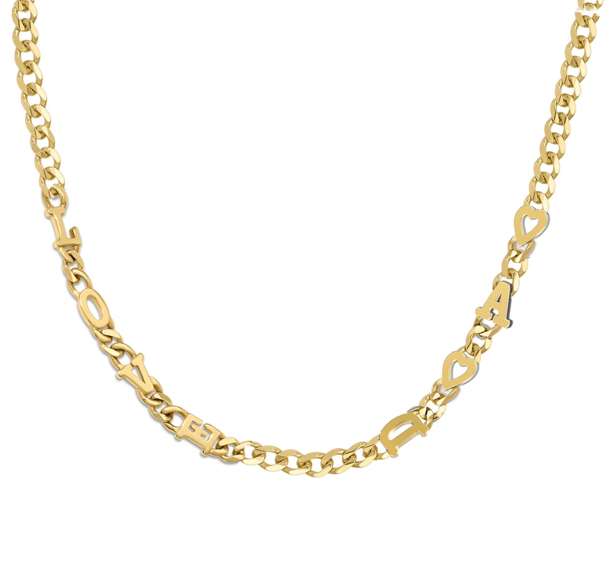 Elevate your style with this luxurious 14K solid gold necklace, featuring a 3.4 mm classic curb chain that exudes timeless elegance. Customize it with letters and symbols. creating a one-of-a-kind piece that reflects your unique personality. Whether you choose initials, meaningful symbols, or a splash of color with precious stones, this necklace is designed to be as unique as you are.