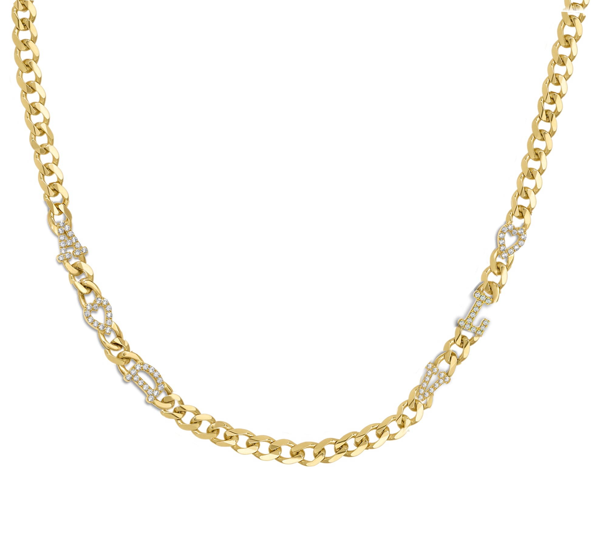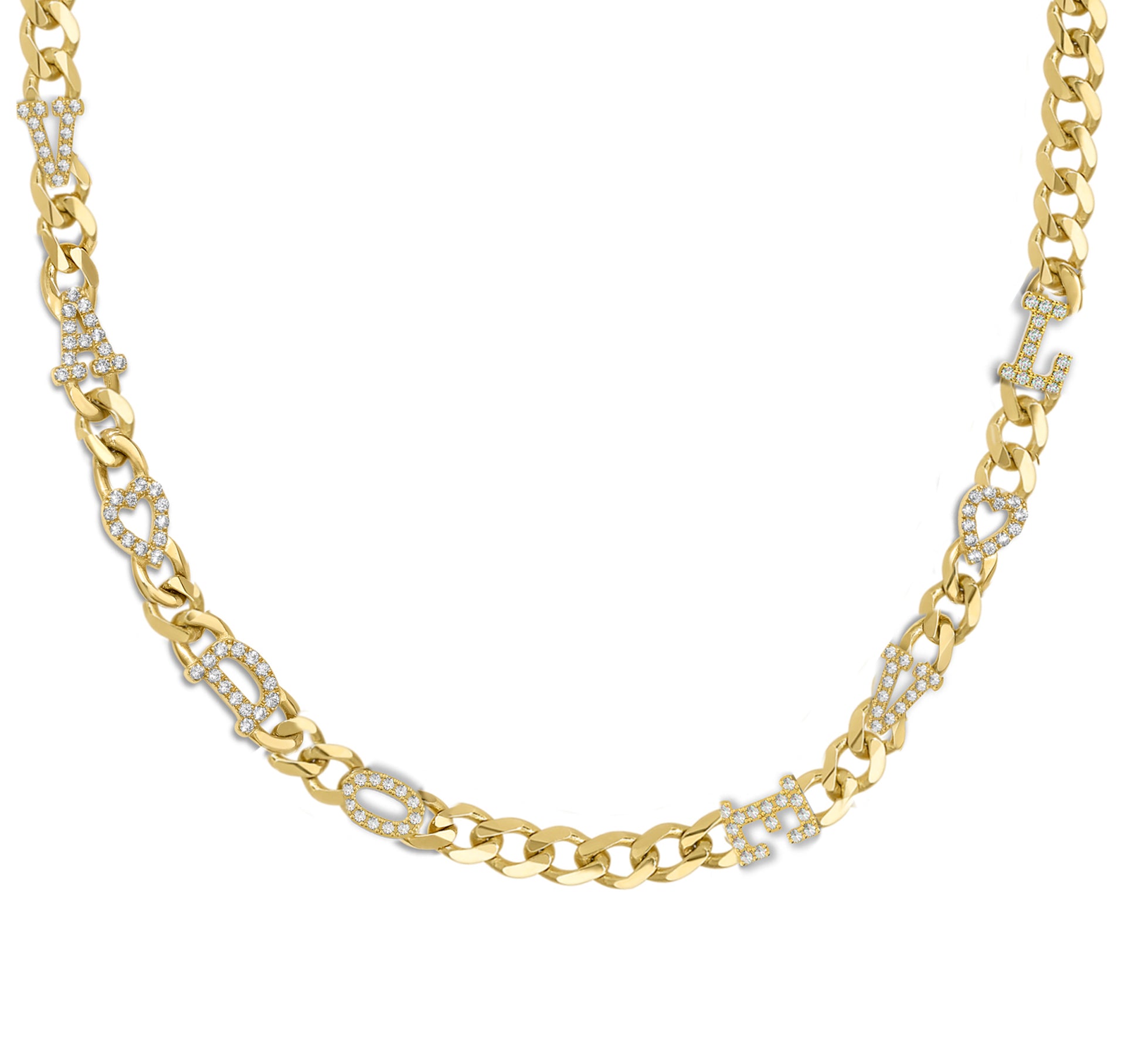 Large curb chain necklace with pave letterrs