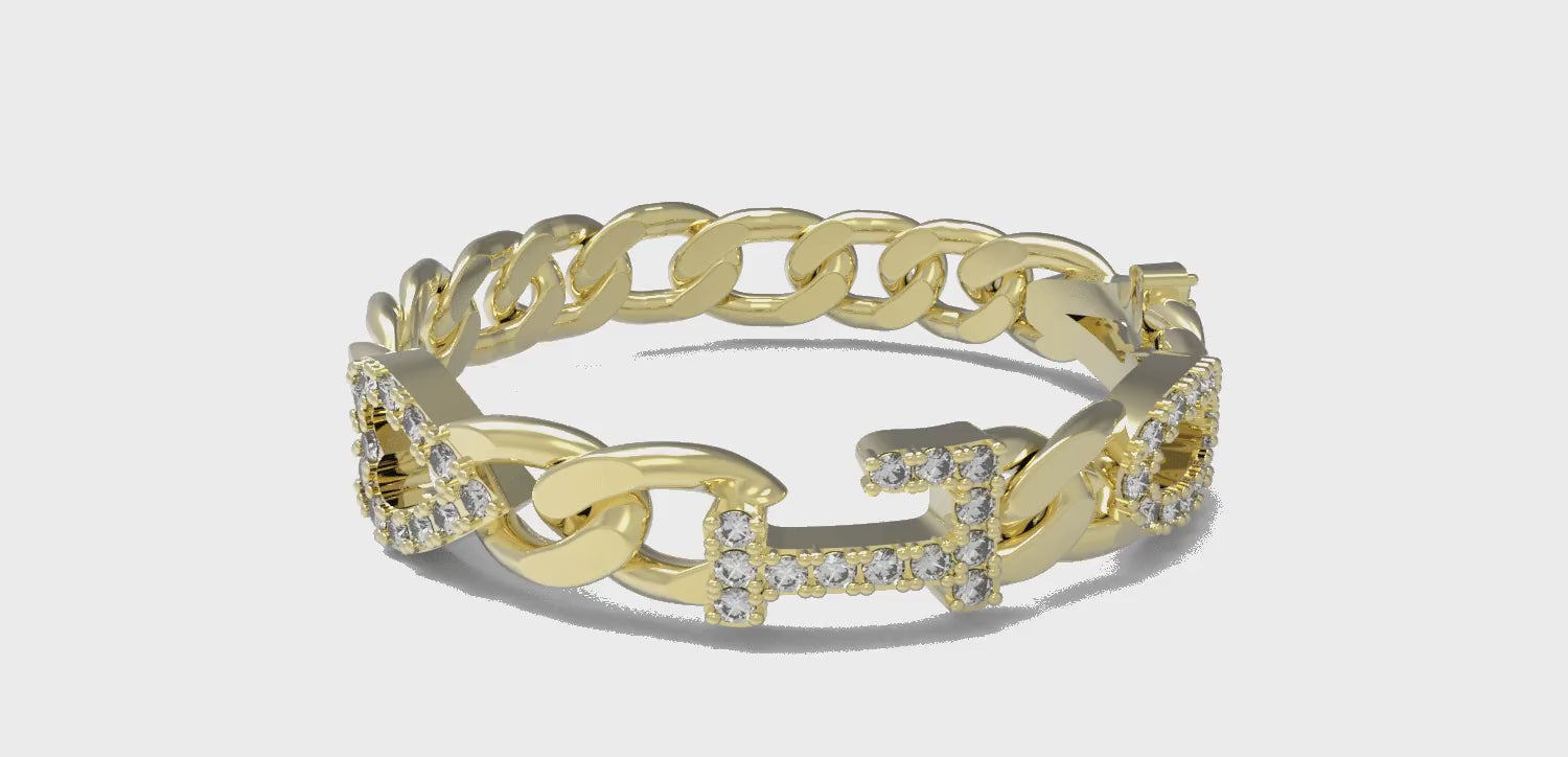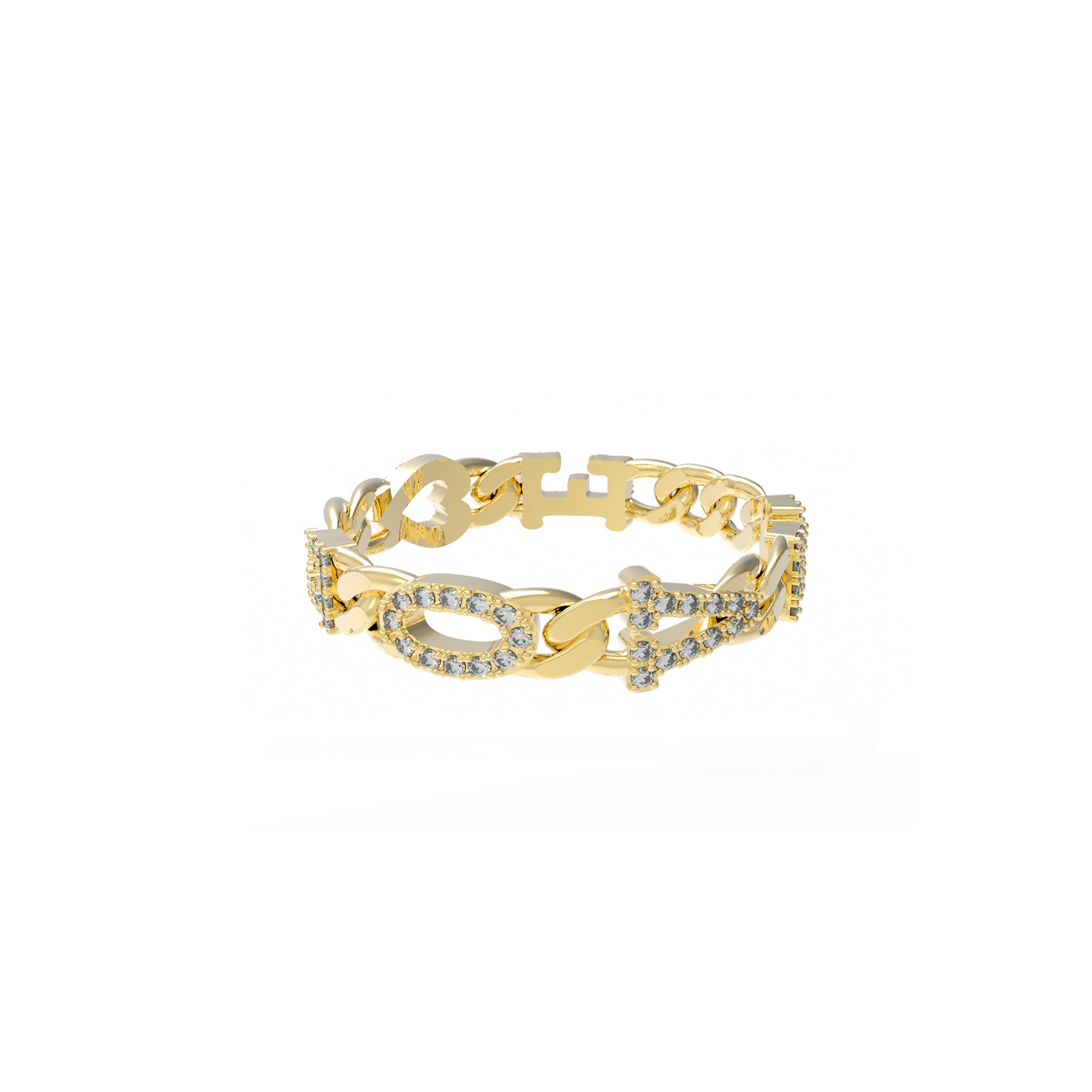 Small Curb Chain Ring with Diamond Letters – 14K Gold Custom Ring by Noush Jewelry
