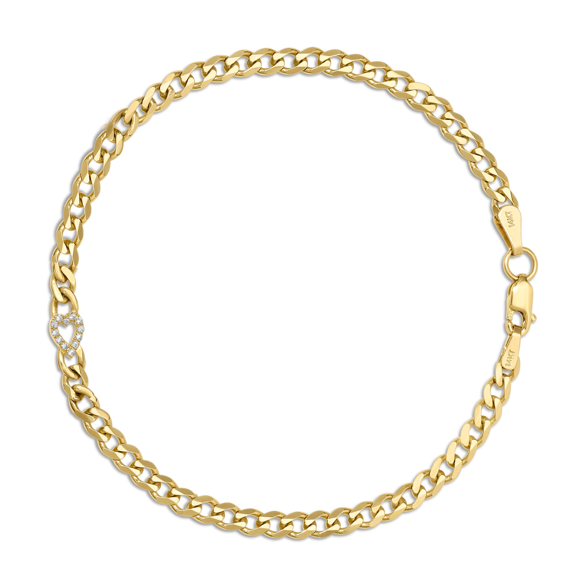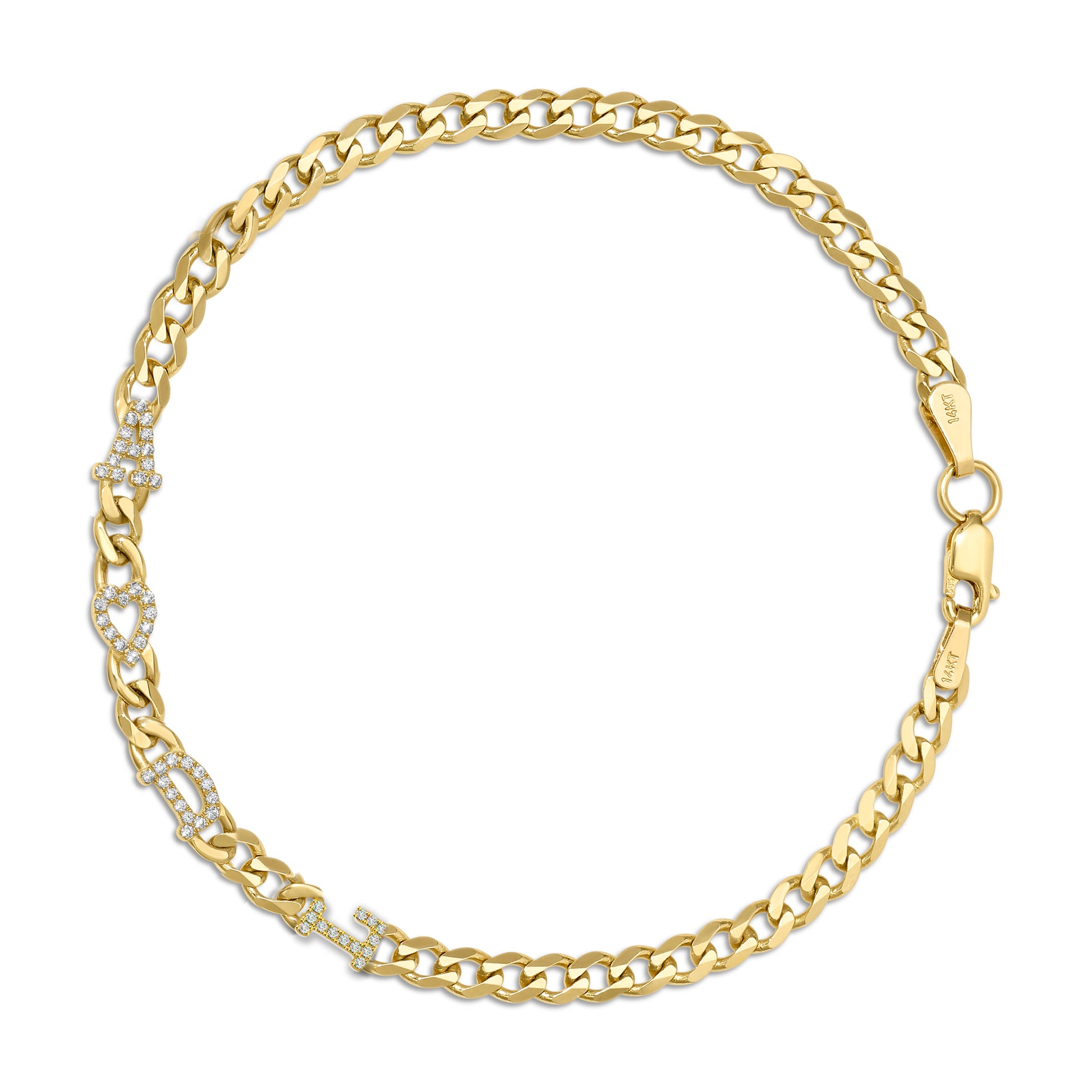 Elevate your style with this luxurious 14K solid gold bracelet, featuring a 3.4 mm classic curb chain that exudes timeless elegance. Customize it with letters and symbols. creating a one-of-a-kind piece that reflects your unique personality. Whether you choose initials, meaningful symbols, or a splash of color with precious stones, this bracelet is designed to be as unique as you are.