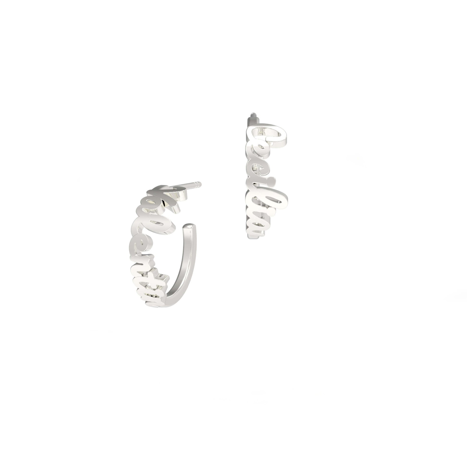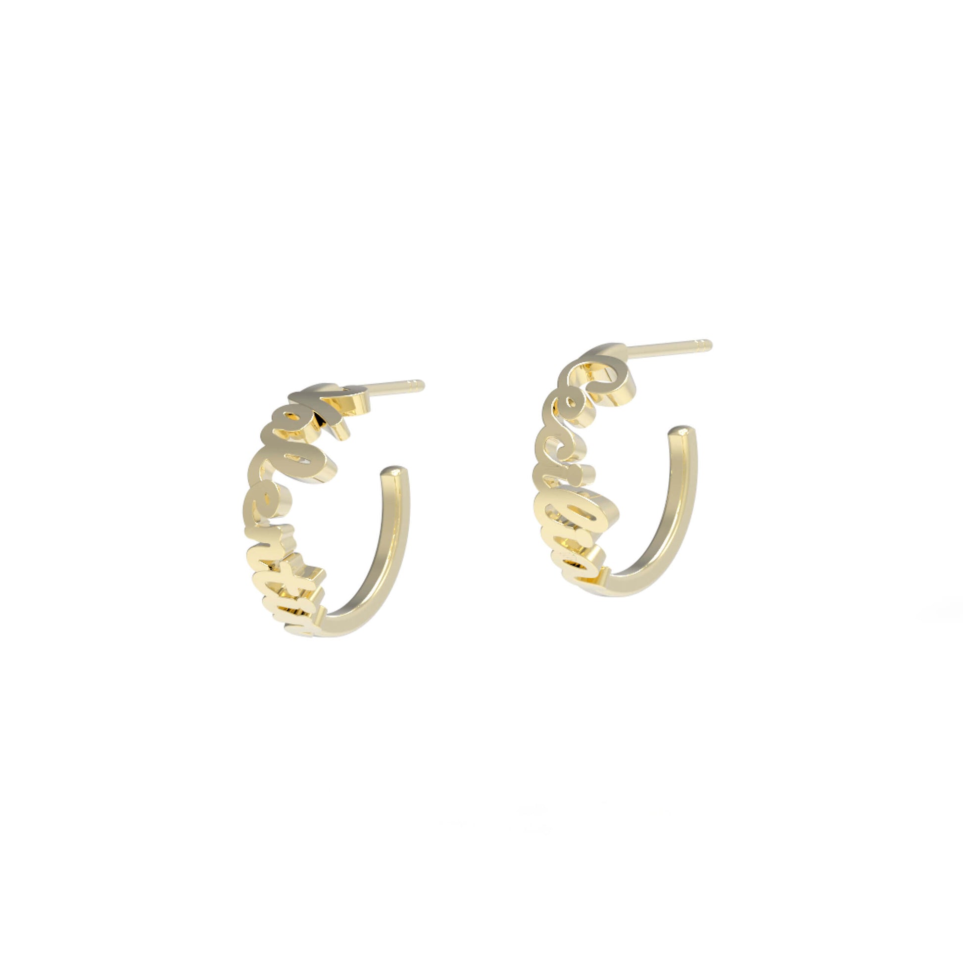 The prettiest most delicate name hoops anywhere on the world wide web, that is our promise. These earrings write your name or special word in our special handwritten font using 18k or 14k gold . The hoops come in 20mm with large backing. The earrings can be mirrored with the same name, or simply have two different names/ When we receive your order, we will send you a computer-generated image of your earrings before starting production. Choose the appropriate number of letters, write your name(s) and let us if you have any special requests. For any further customization or more than 16 letters, please contact us.