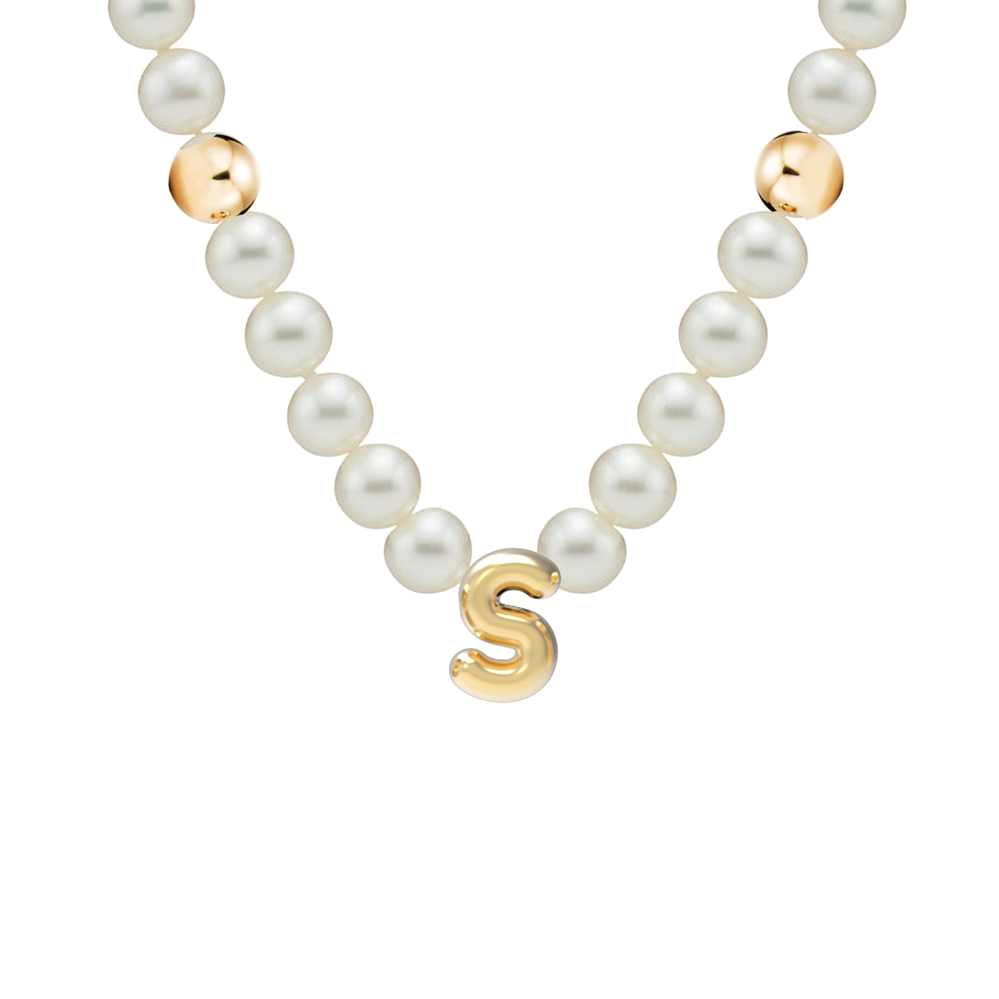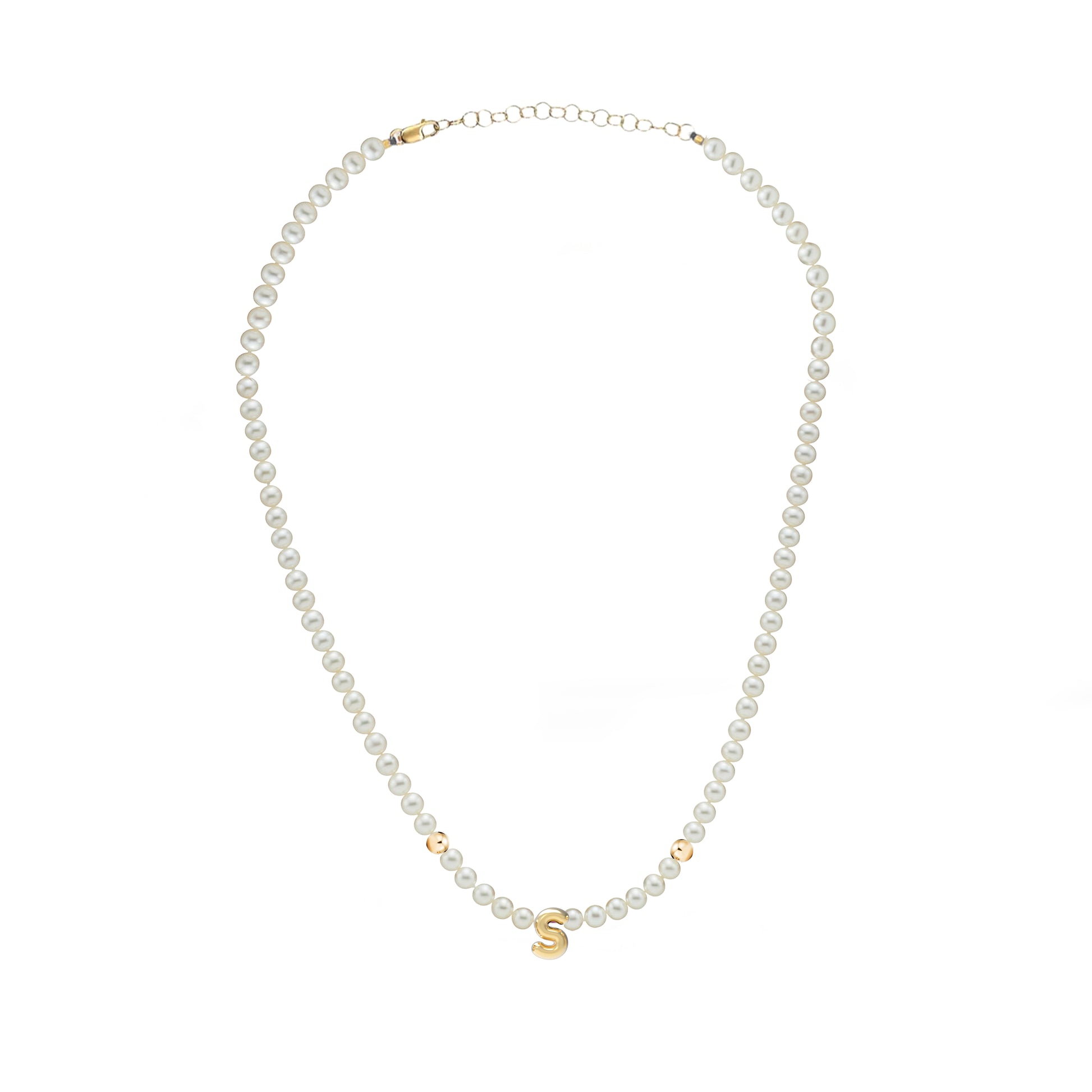 Solid Gold Bubble Letter Gemstone Pearl neckalce