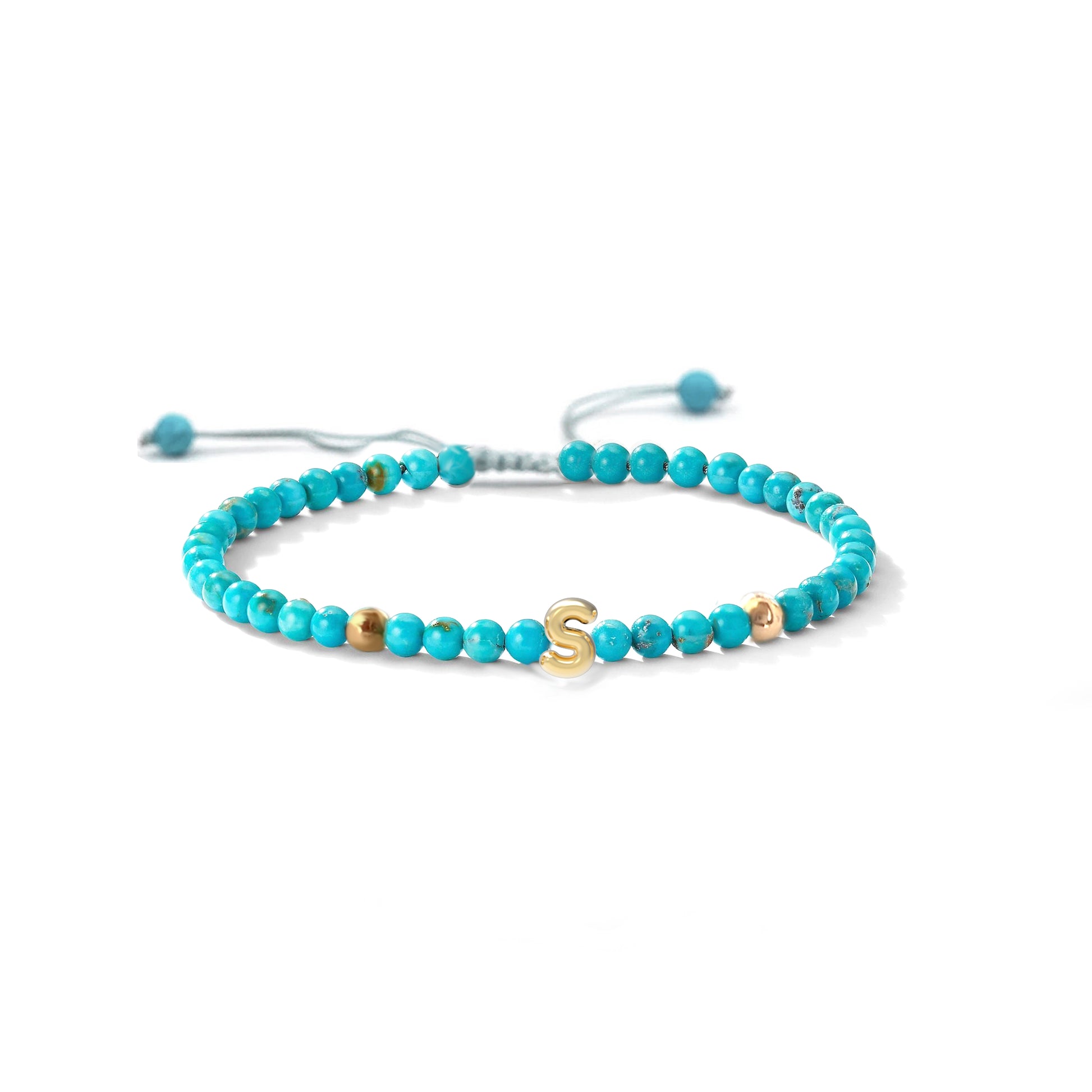 Solid Gold Bubble Letter Gemstone Beaded Bracelet